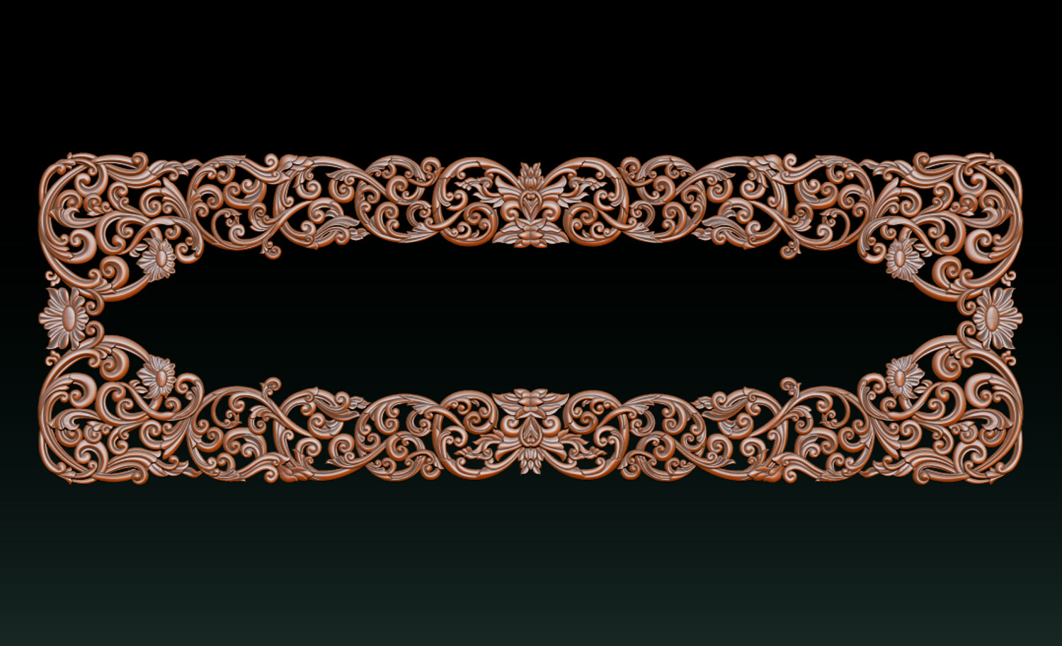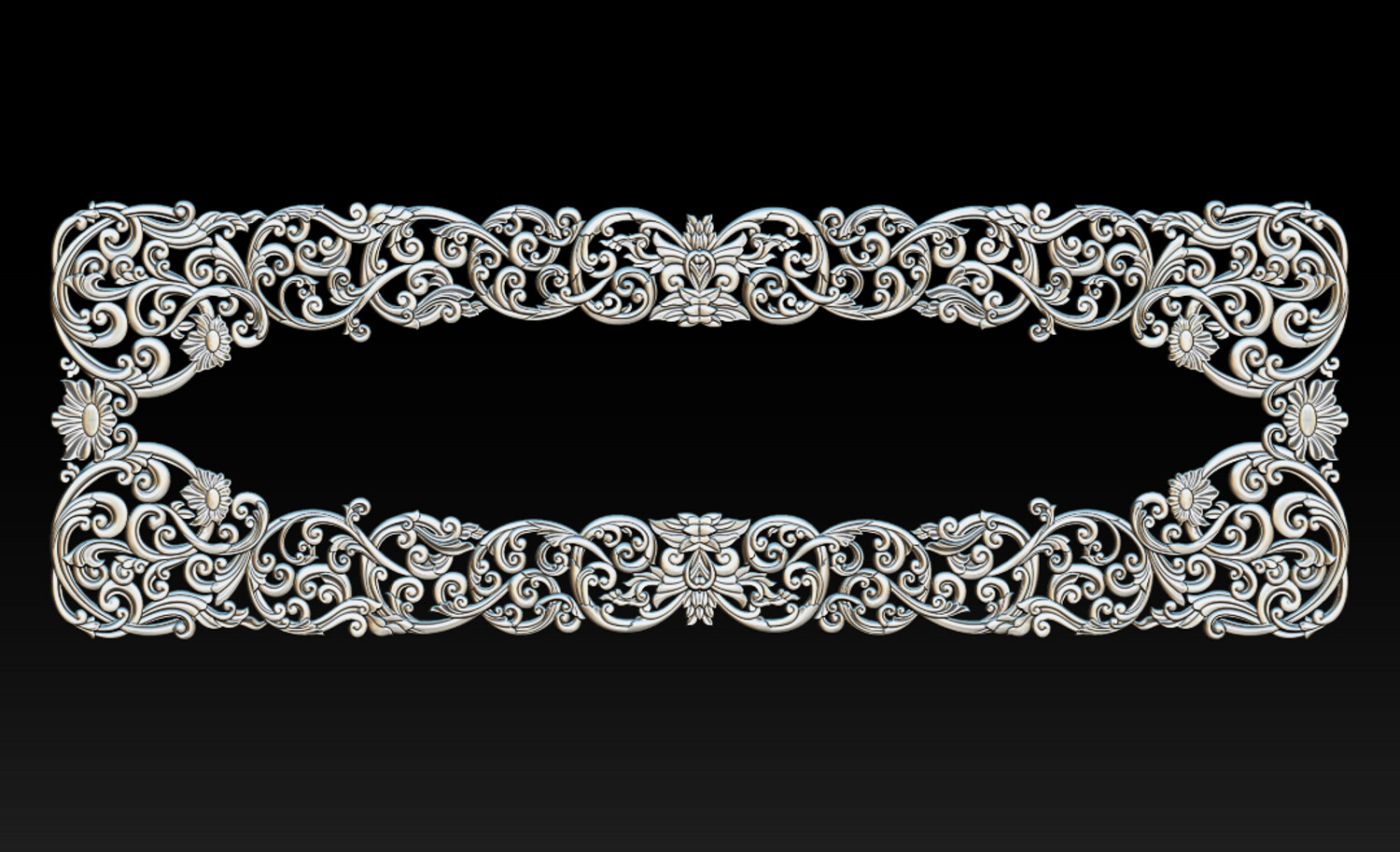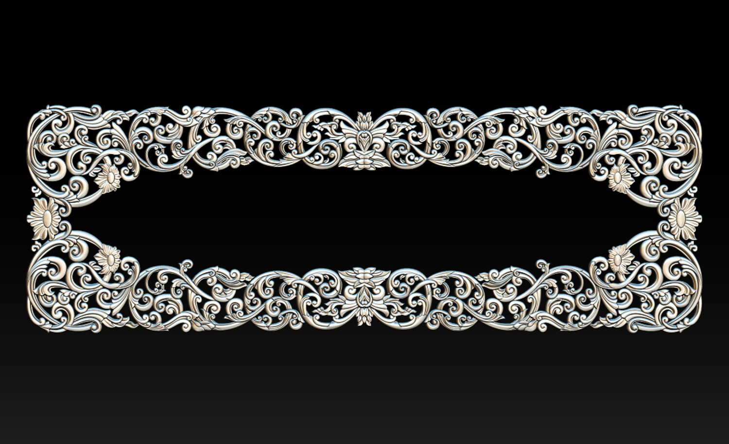 Ornamental Floral Frame CNC Relief 3D Model | STL OBJ ZTL This Ornamental Floral Frame CNC Relief Model is a highly detailed decorative border designed for professional CNC wood carving, wall panels, furniture decoration, and luxury interior projects.