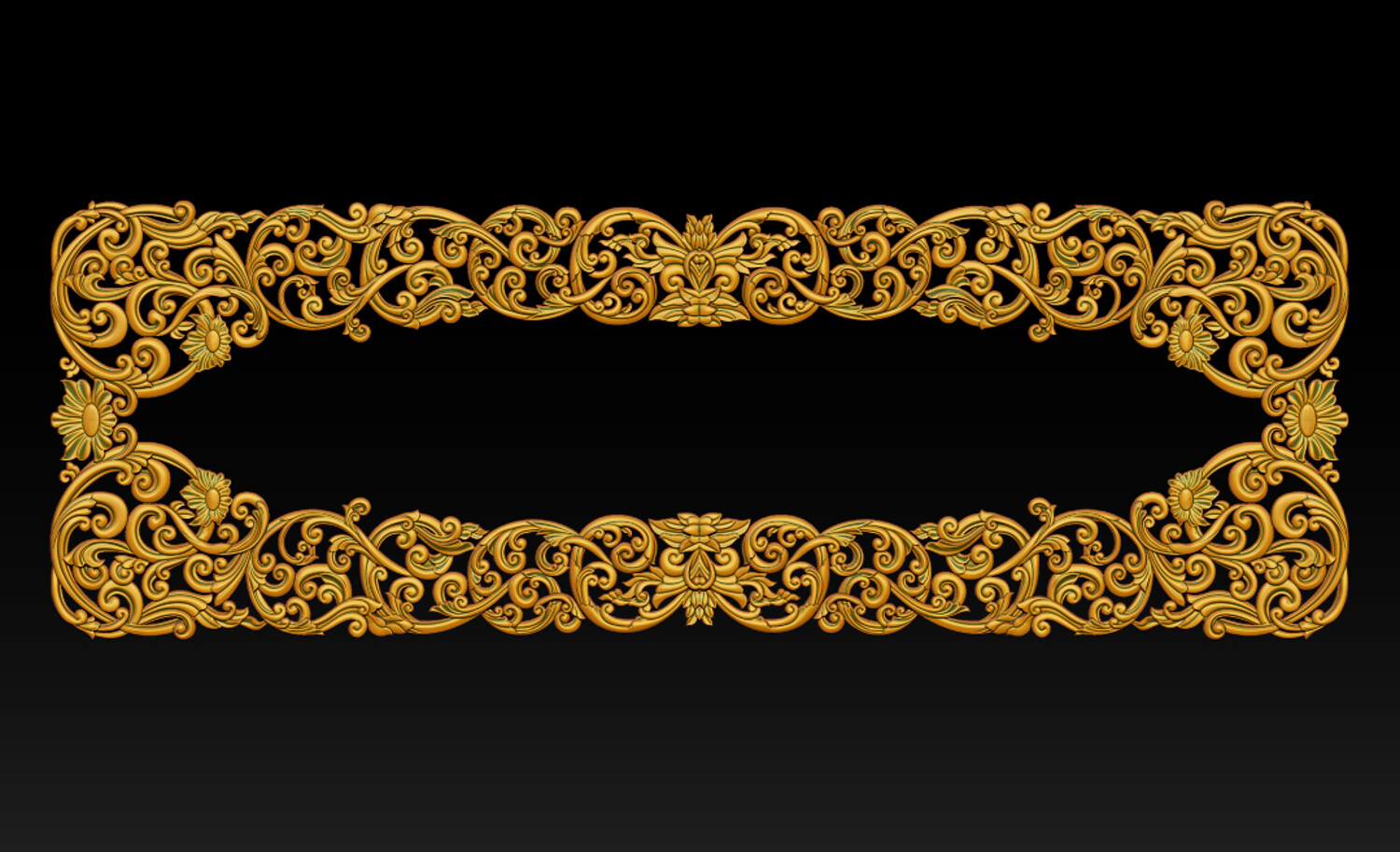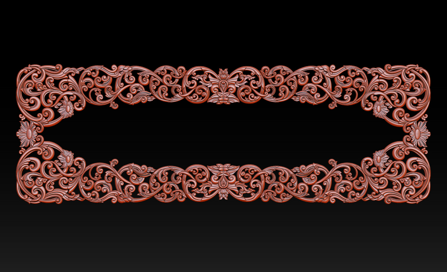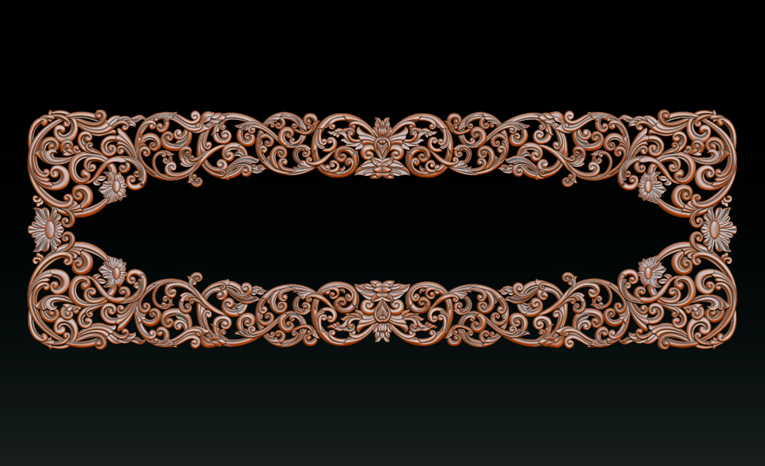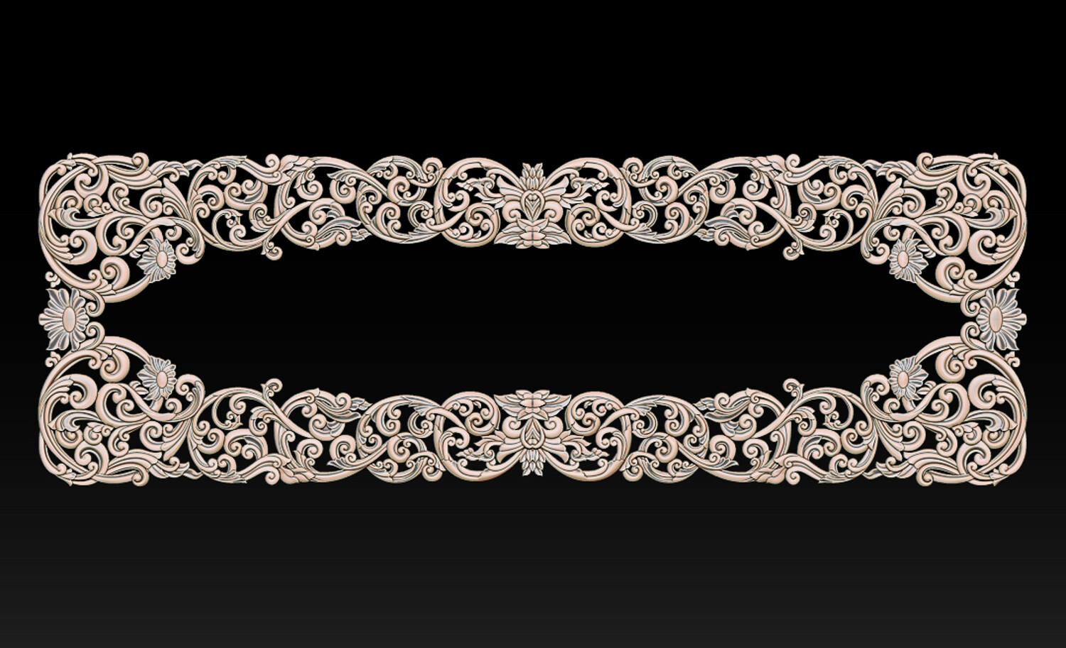Ornamental Floral Frame CNC Relief 3D Model | STL OBJ ZTL This Ornamental Floral Frame CNC Relief Model is a highly detailed decorative border designed for professional CNC wood carving, wall panels, furniture decoration, and luxury interior projects.