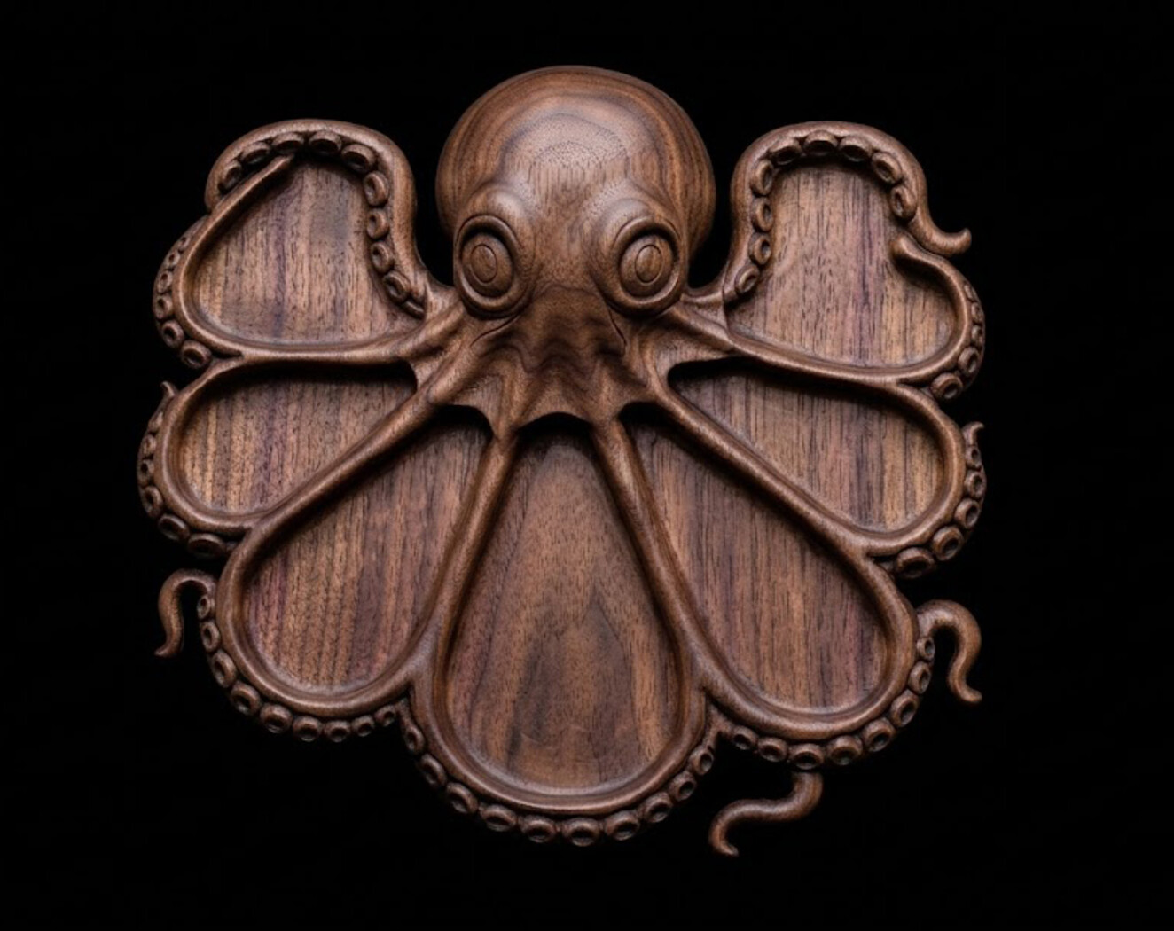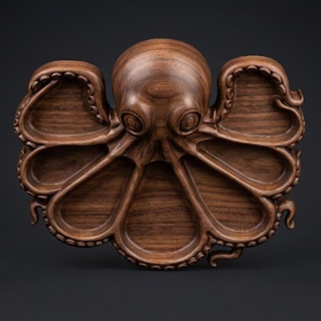 Perfect For Candy tray / snack tray Serving tray for nuts, fruits, cookies Ocean theme home décor Restaurant / bar / resort decoration Unique gift products CNC wood carving projects 3D resin printing or FDM printing Mold making and casting Model Highlights Powerful octopus design with artistic style Detailed suction cups and tentacle anatomy Multiple compartments formed naturally by tentacles High-quality sculpting with smooth clean geometry CNC friendly – easy toolpath generation Can be scaled up or down without losing detail Great for commercial products and luxury décor