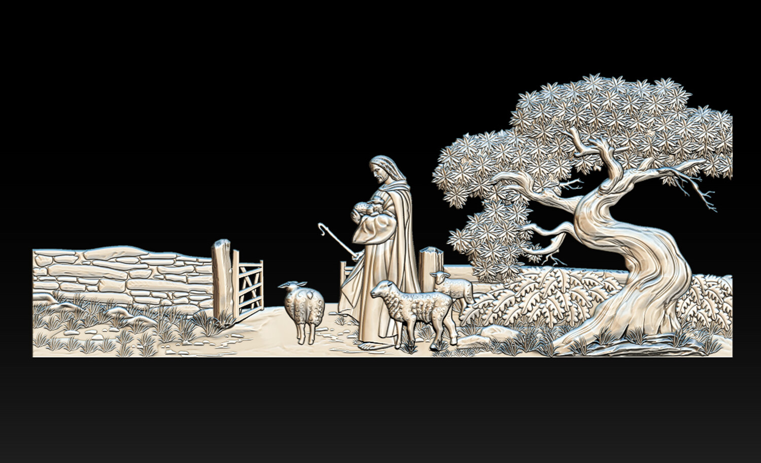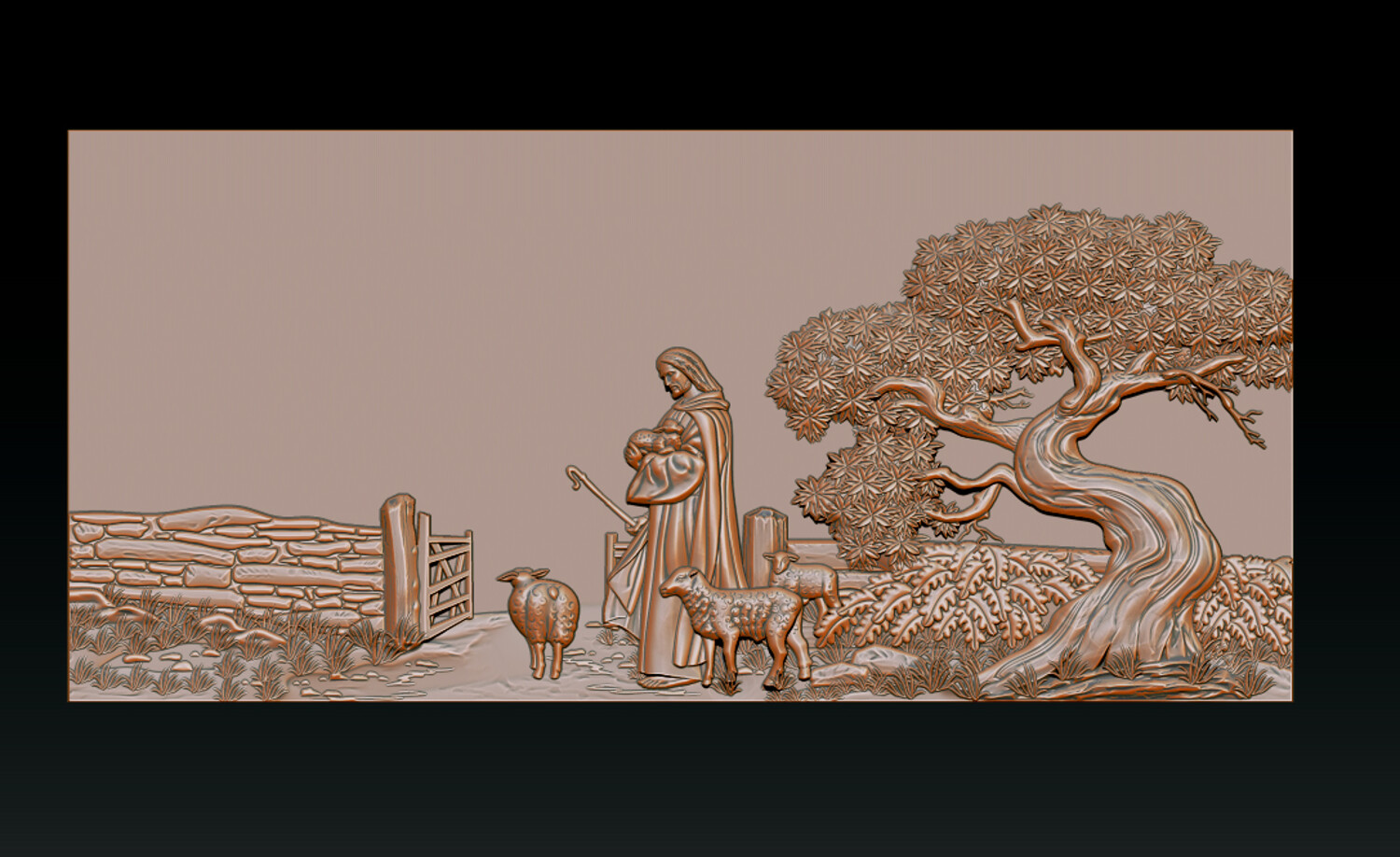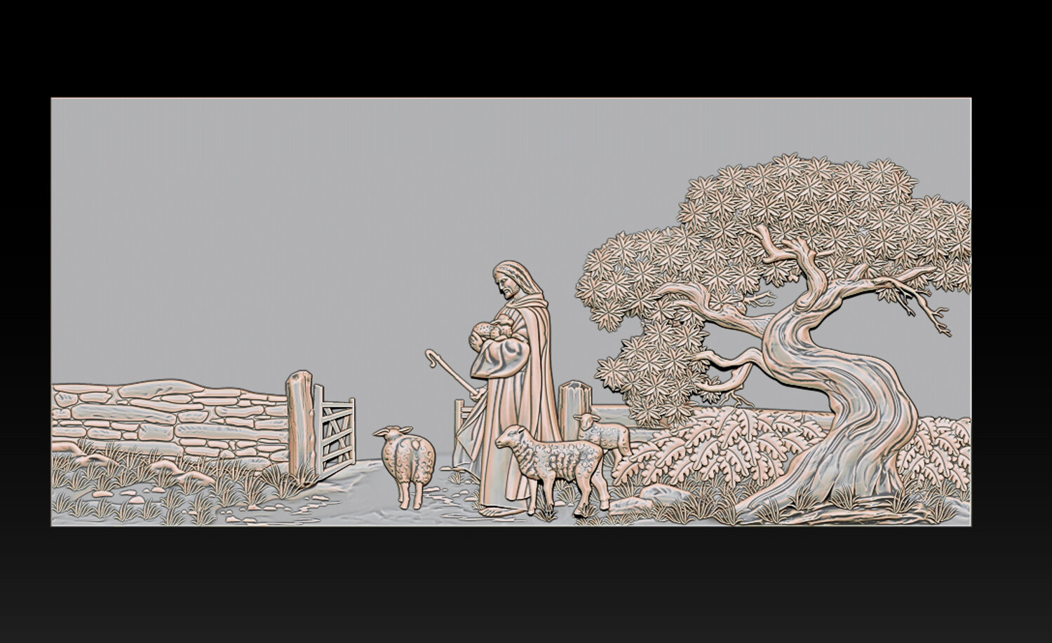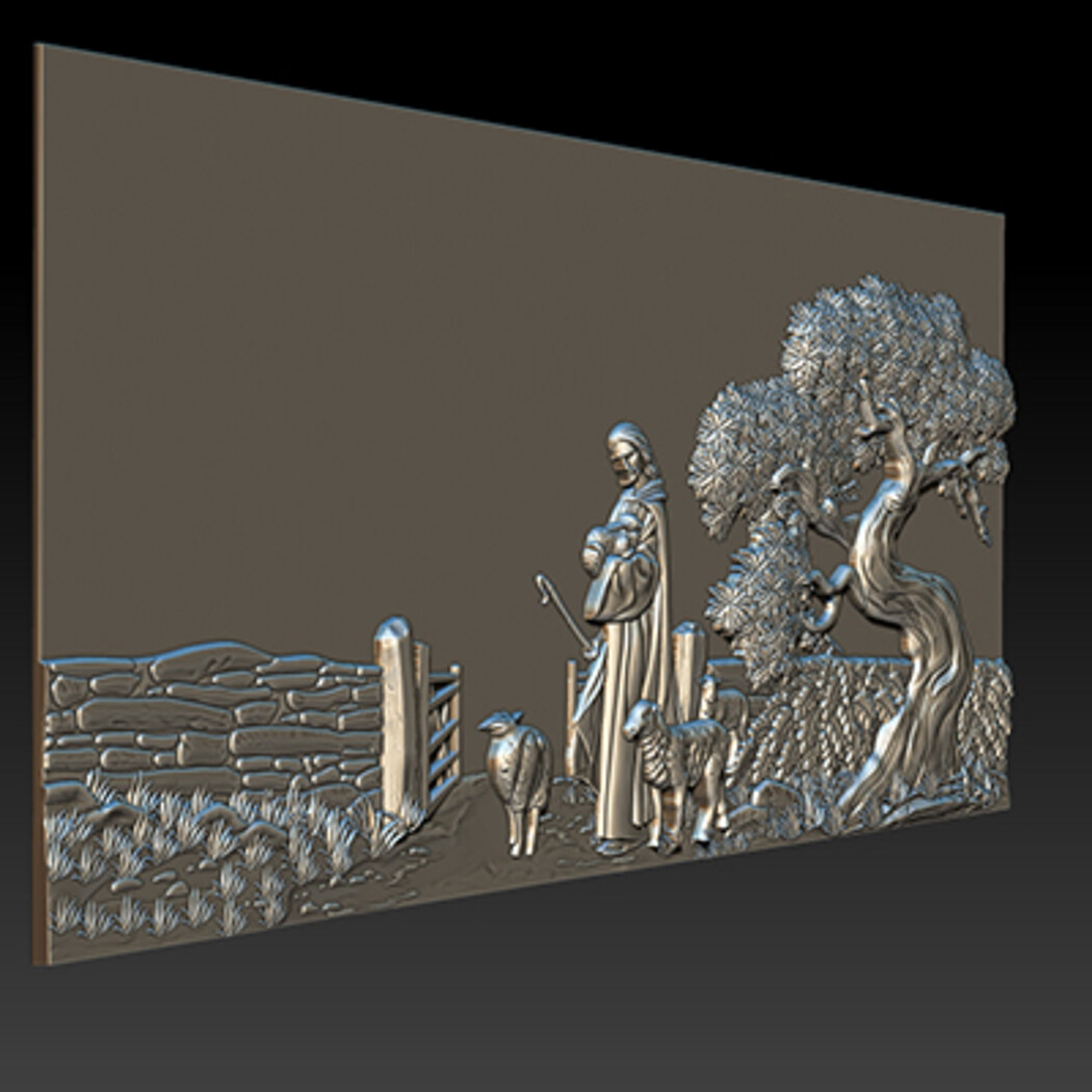 The Good Shepherd 3D Relief - Biblical Pastoral Scene - STL, OBJ, ZTL for CNC & 3D Printing