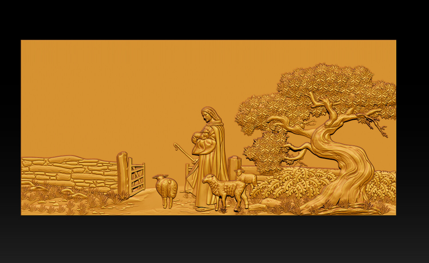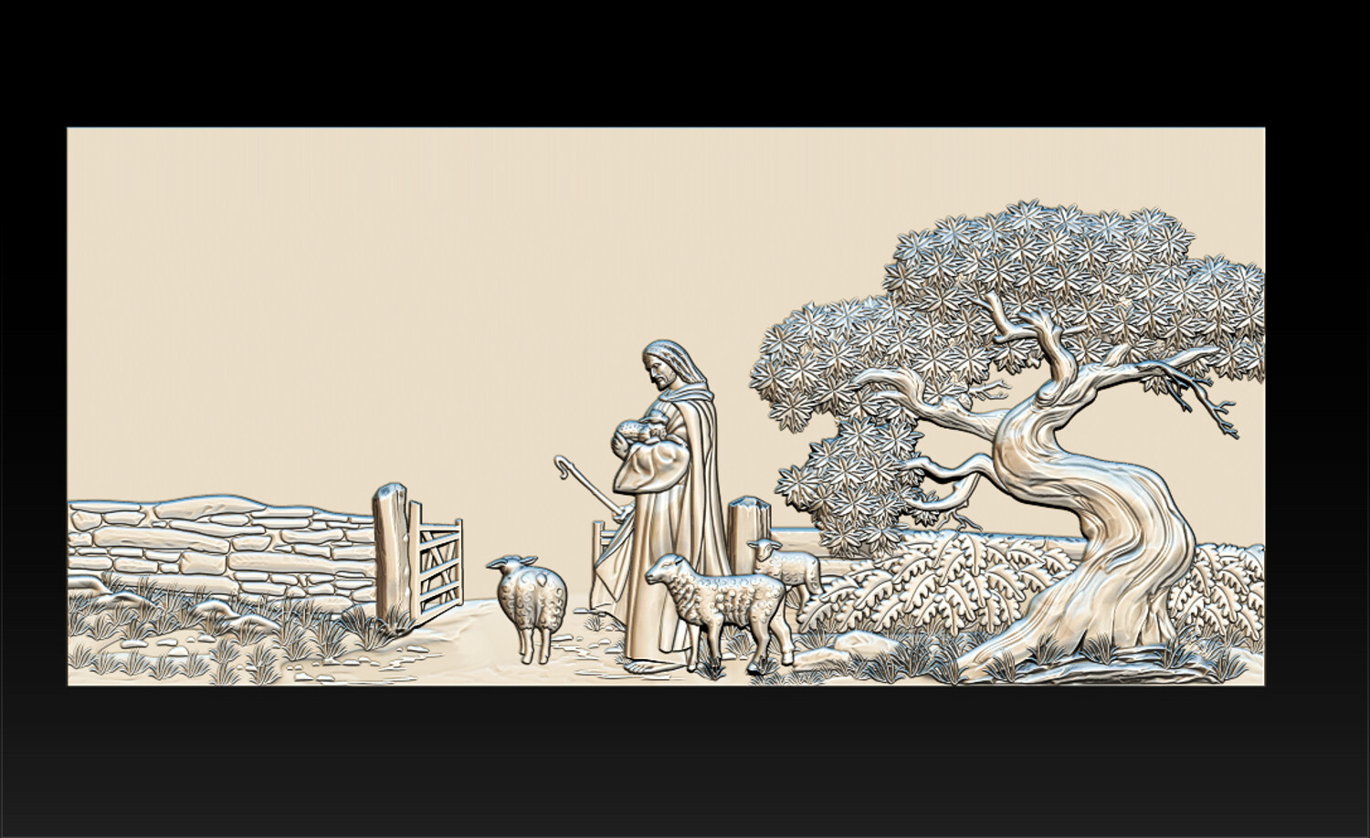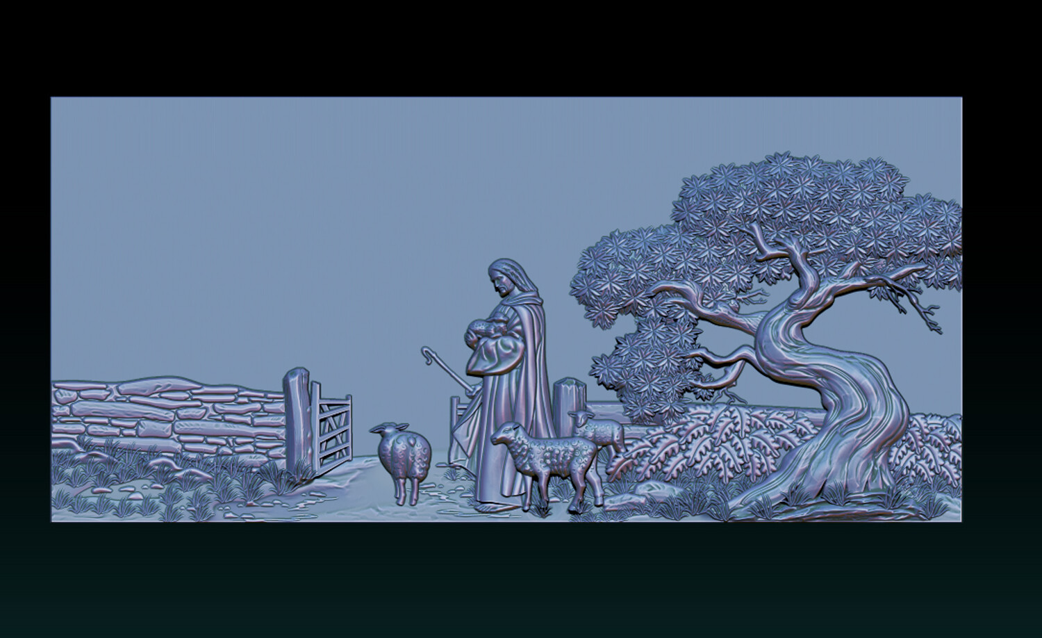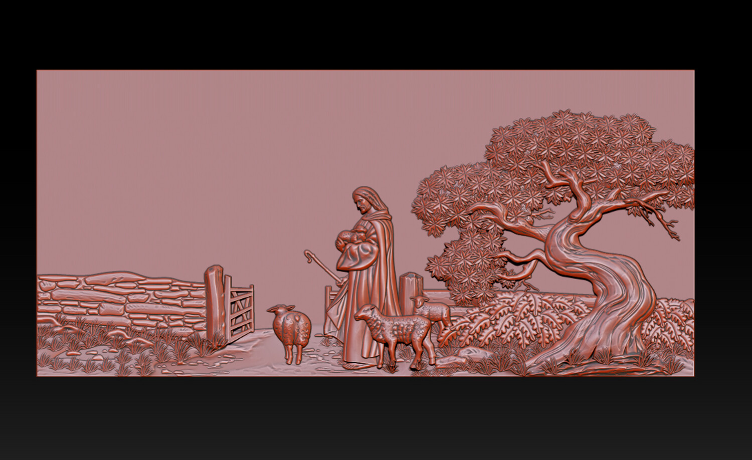 The Good Shepherd 3D Relief - Biblical Pastoral Scene - STL, OBJ, ZTL for CNC & 3D Printing