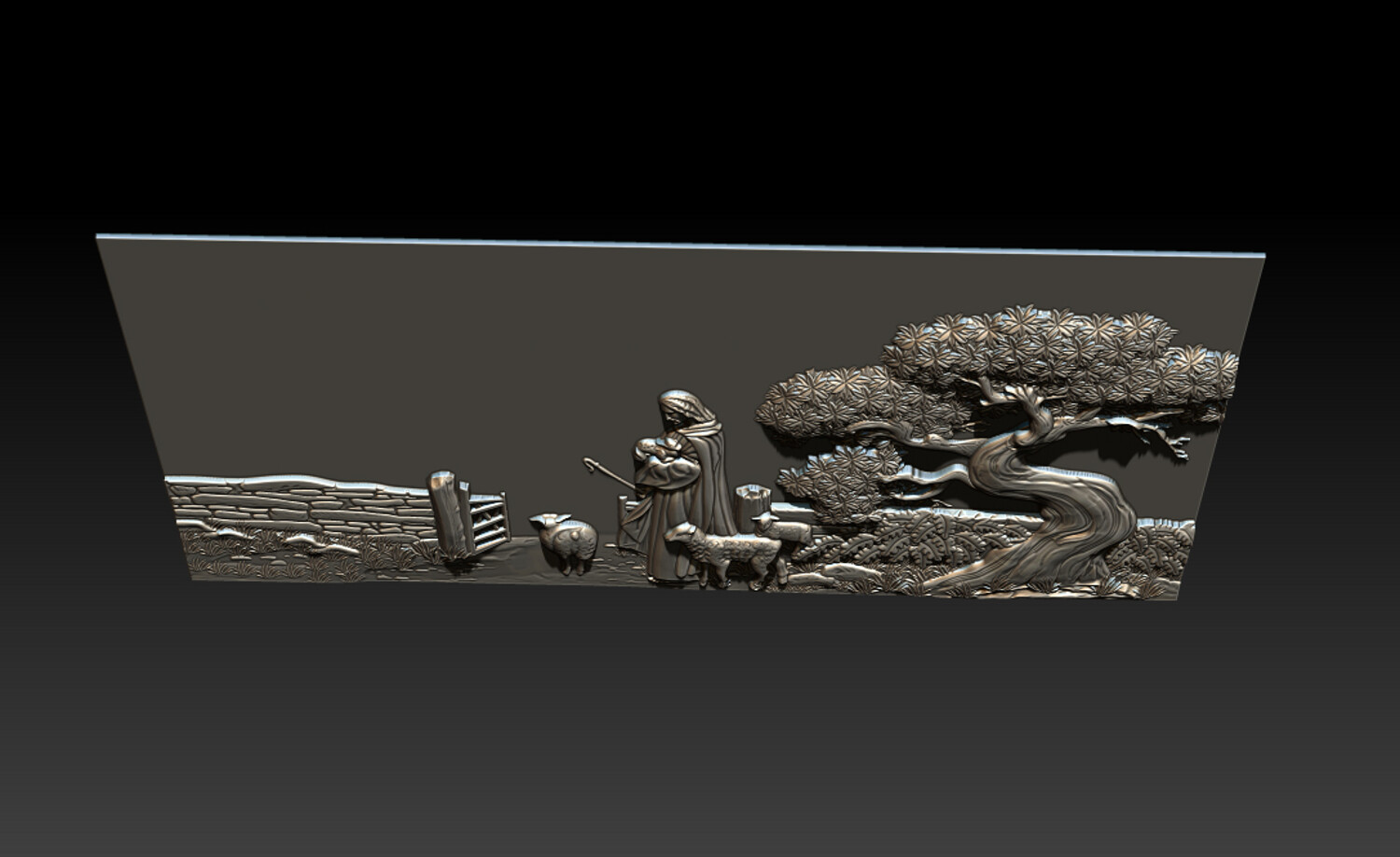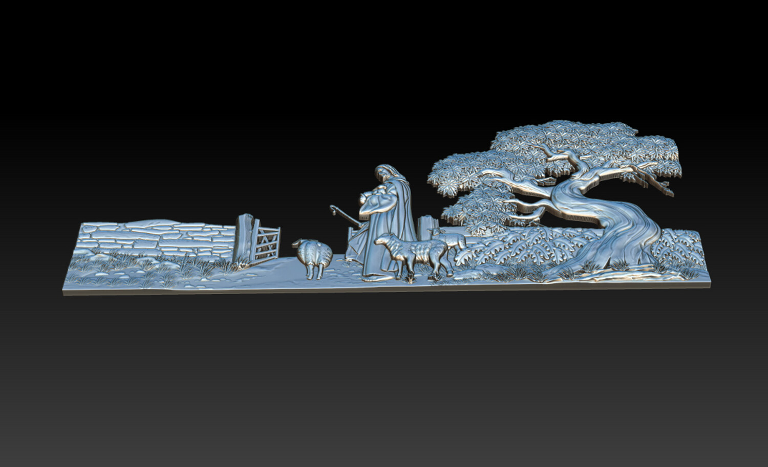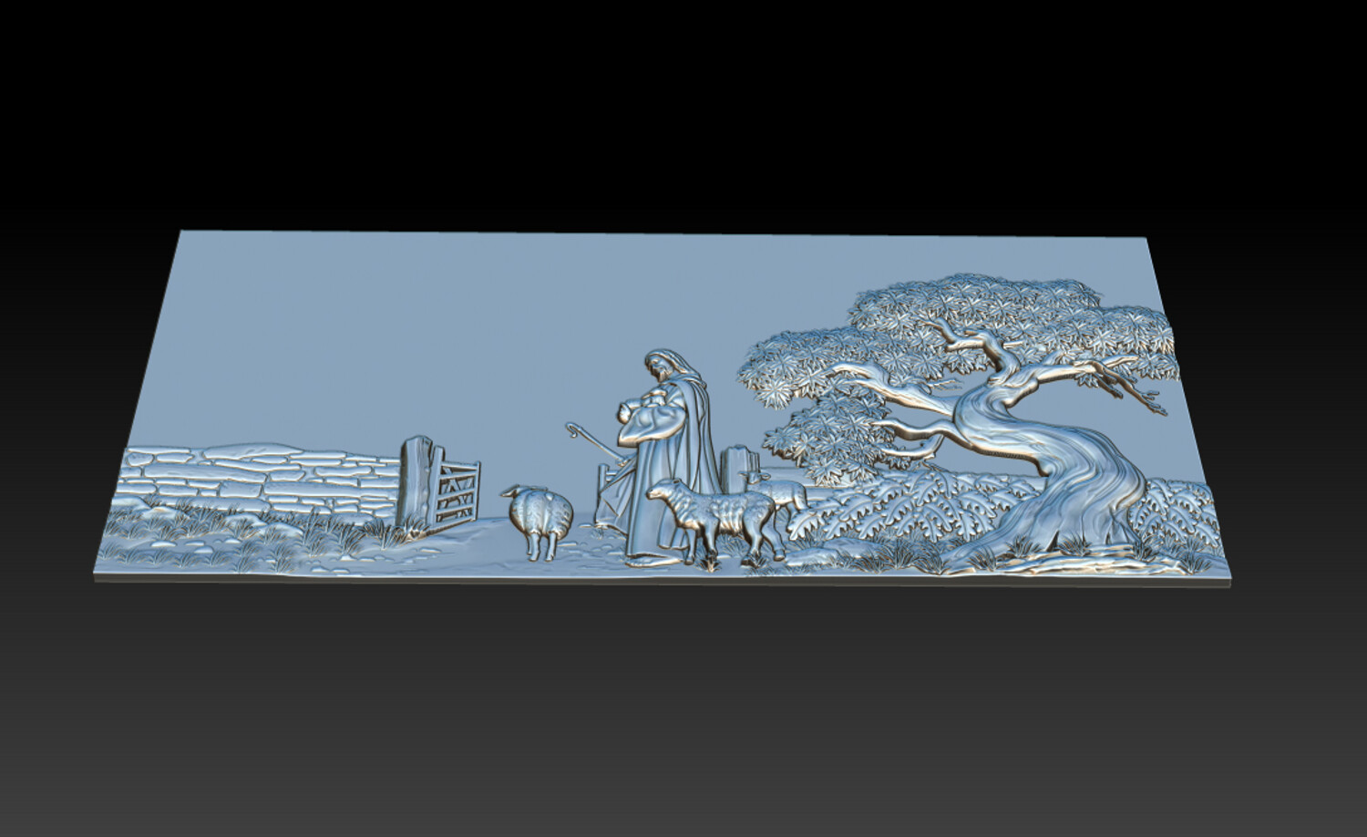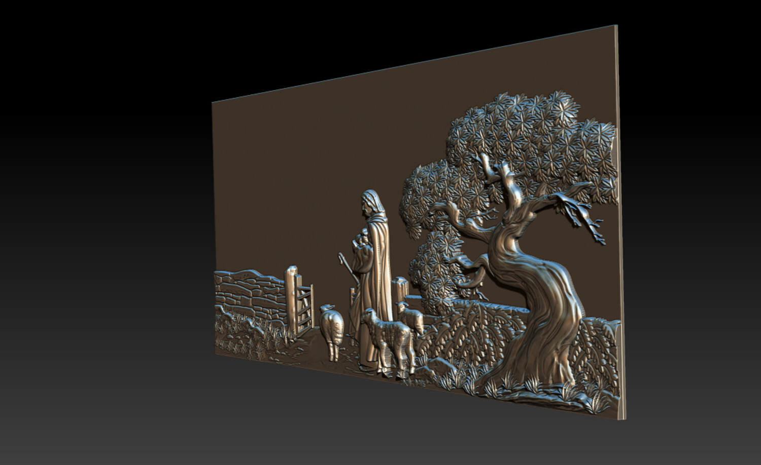 The Good Shepherd 3D Relief - Biblical Pastoral Scene - STL, OBJ, ZTL for CNC & 3D Printing