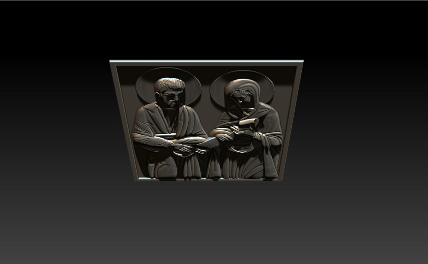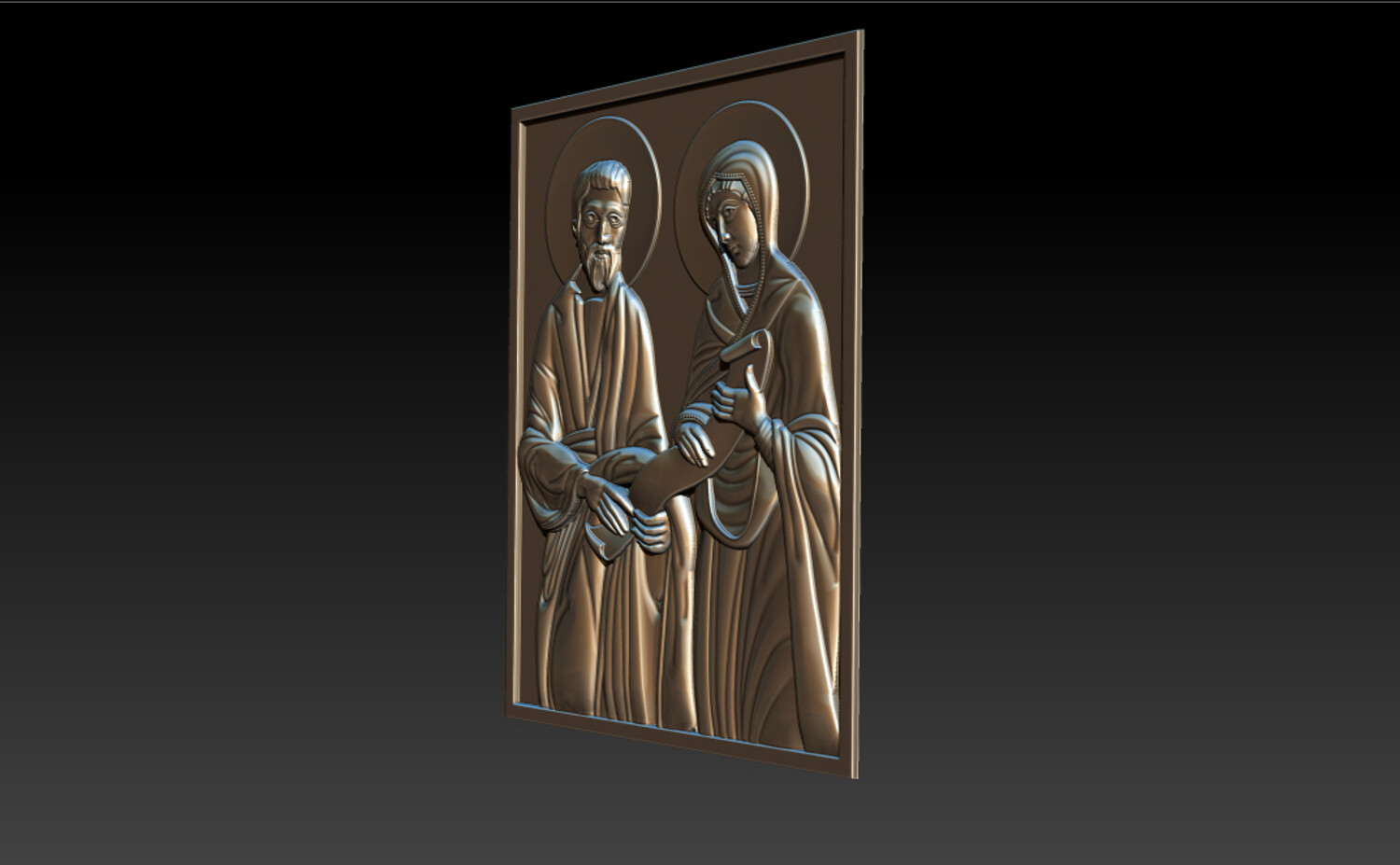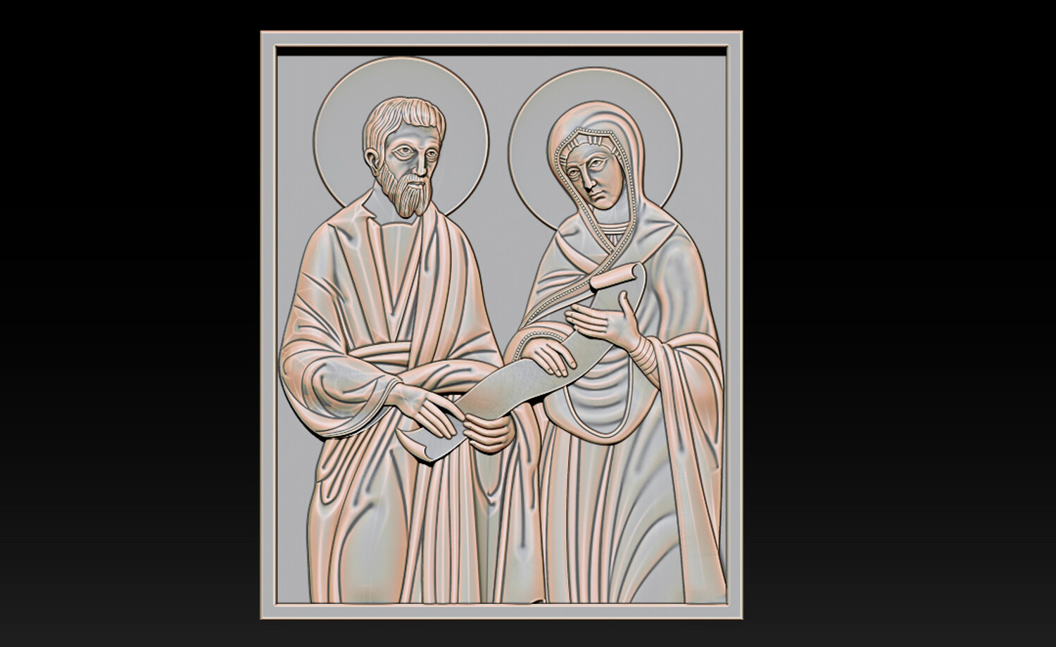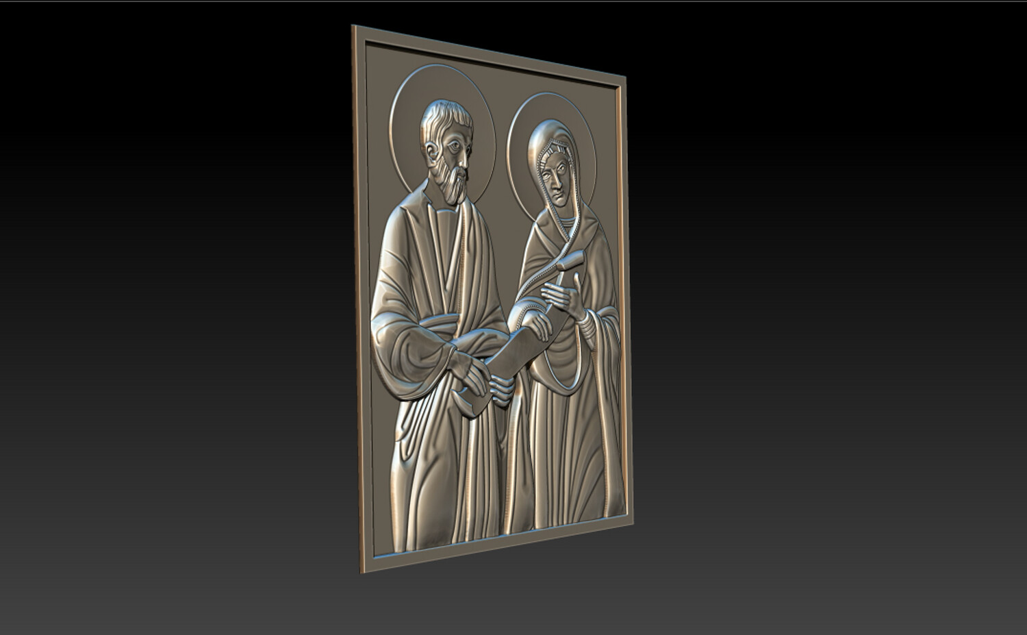 Joachim and Ana Changings – Sacred Christian Relief 2.5D Model (CNC & 3D Print Ready) This refined “Joachim and Ana Changings” relief model presents a sacred Christian scene inspired by traditional iconography, symbolizing faith, devotion, and divine guidance. The composition features: Two haloed holy figures in classical biblical attire A sacred scroll representing wisdom and spiritual teaching Harmonious square panel layout Soft, flowing drapery sculpted with balanced depth Clean background for precise CNC carving and printing The relief is carefully designed with smooth transitions and crisp detailing, ensuring excellent results in wood carving, resin printing, or decorative production.