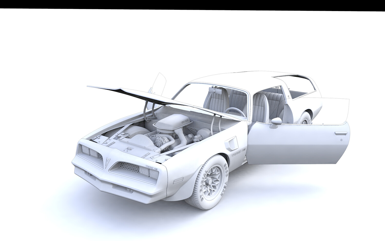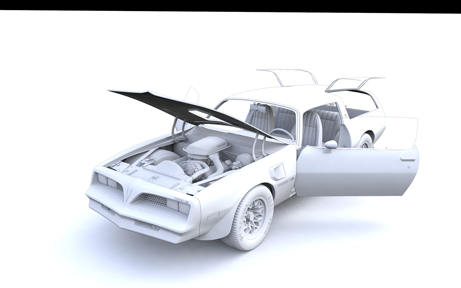 High detailed 3D model Pontiac Firebird Trans Am Type K 1977 Concept , from inside and outside.