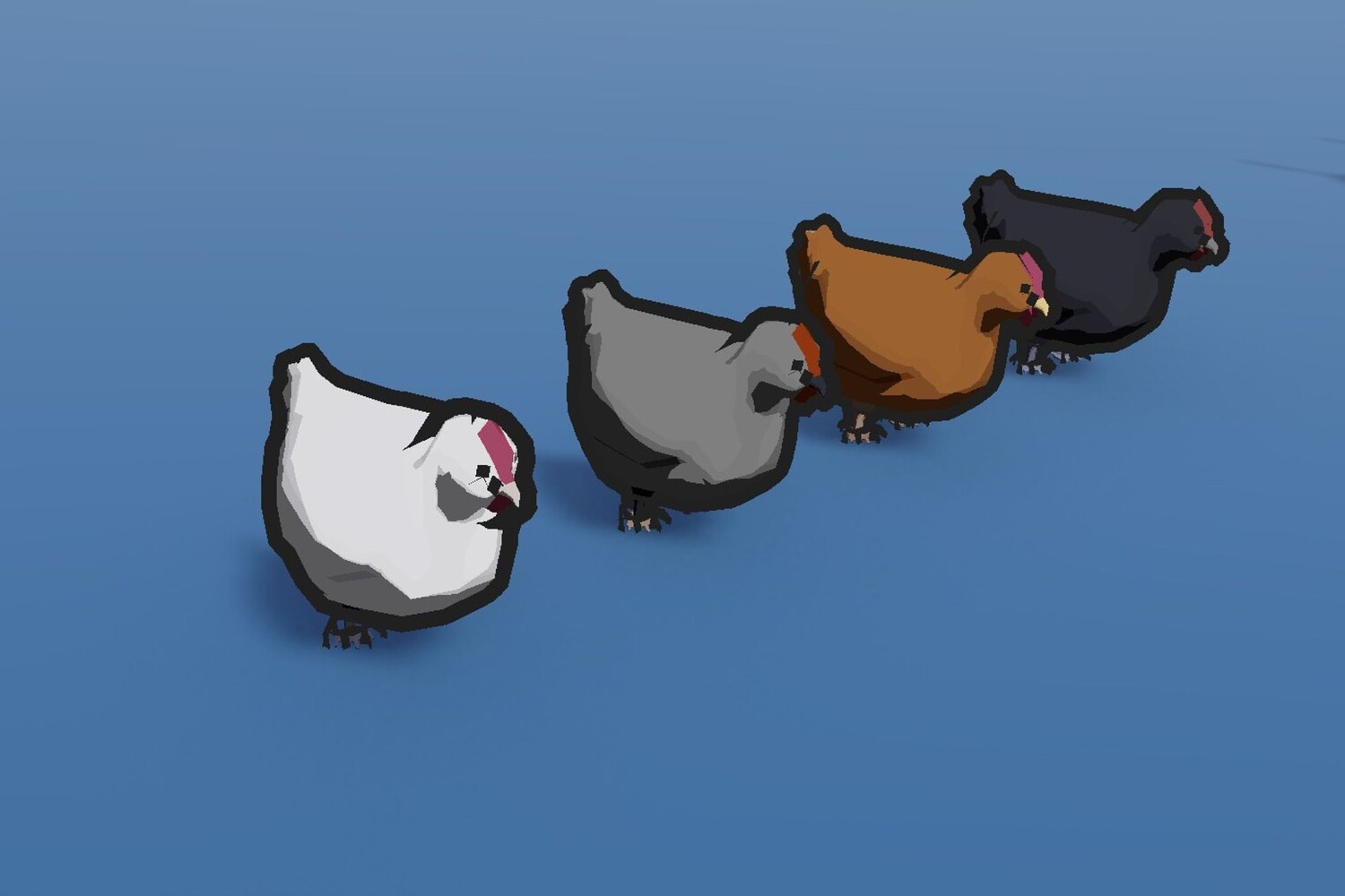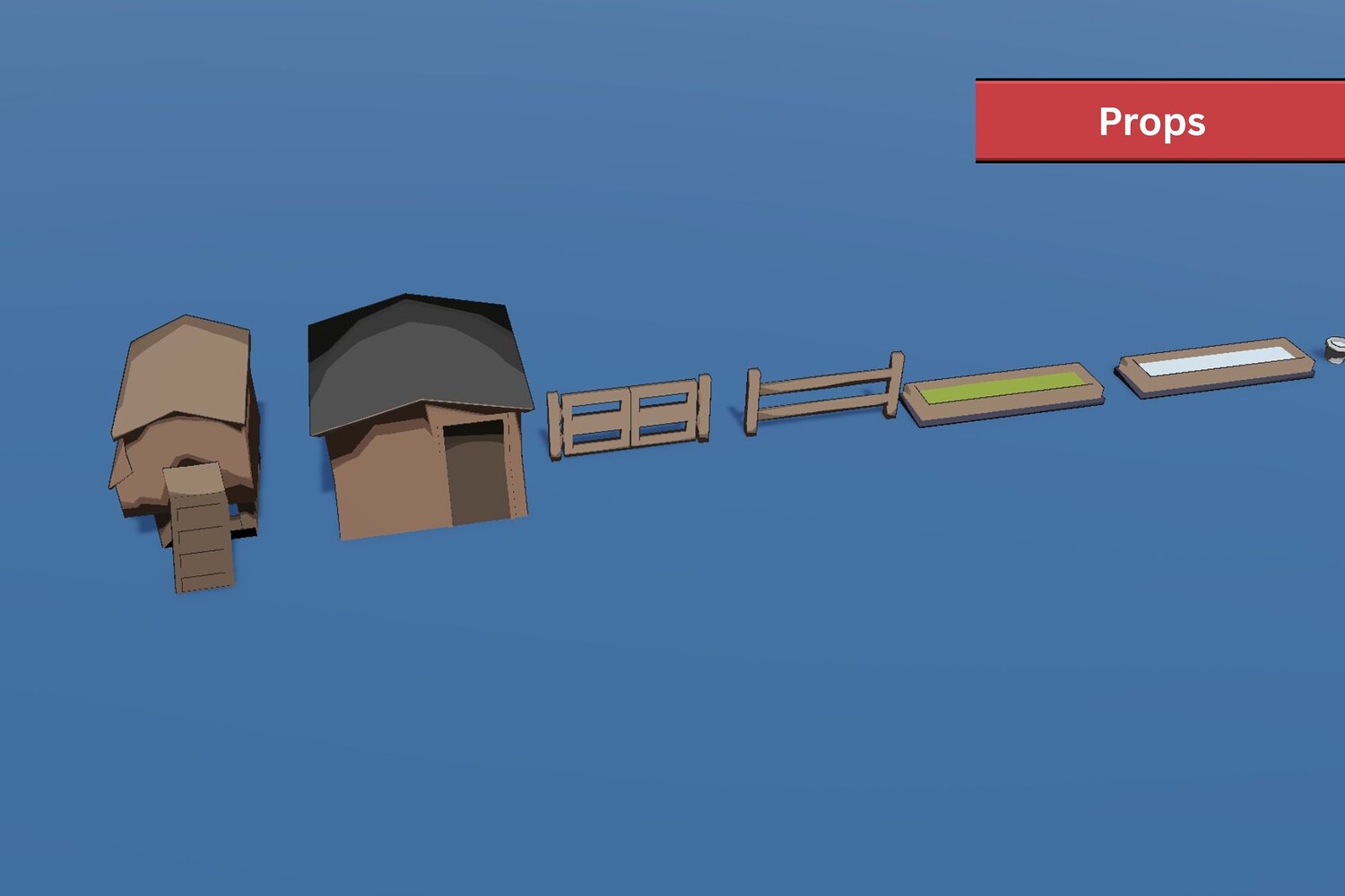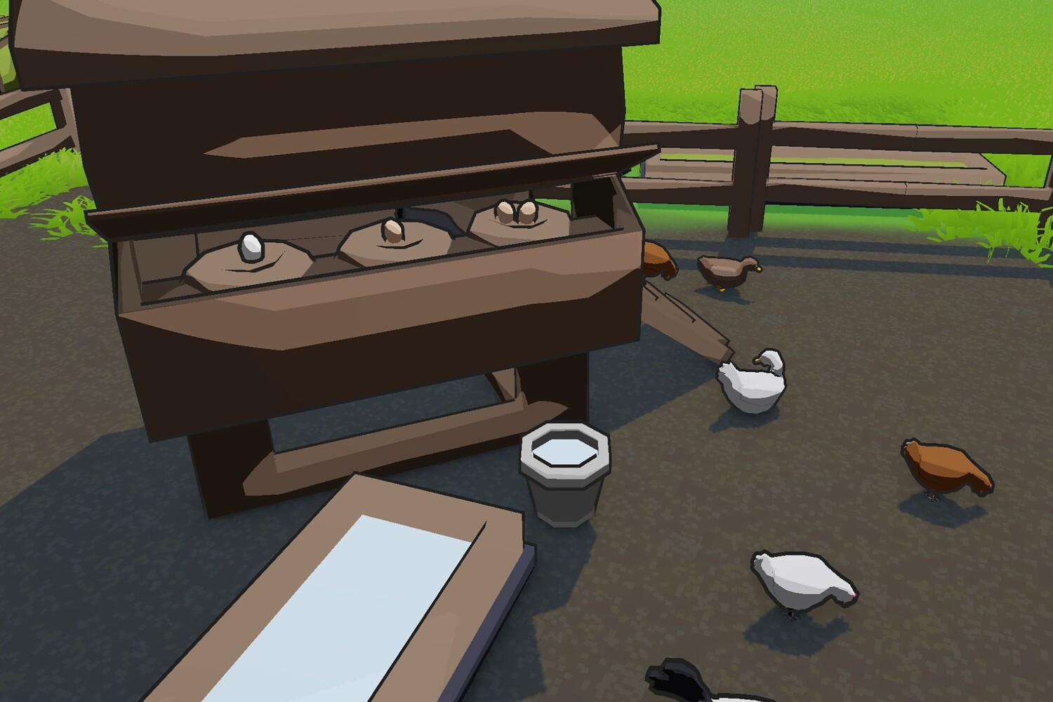 Poultry: Chicken x4 Duck x3 Goose x2 Rooster x2 Turkey x2 Props: Chicken coop with door and hatch Shed Grass/Hay bales Food/Water trough Brown/White egg Feed sack Fence Gate Water/Milk bucket Barrel Box Crate Nest Simple tree and grass vegetation