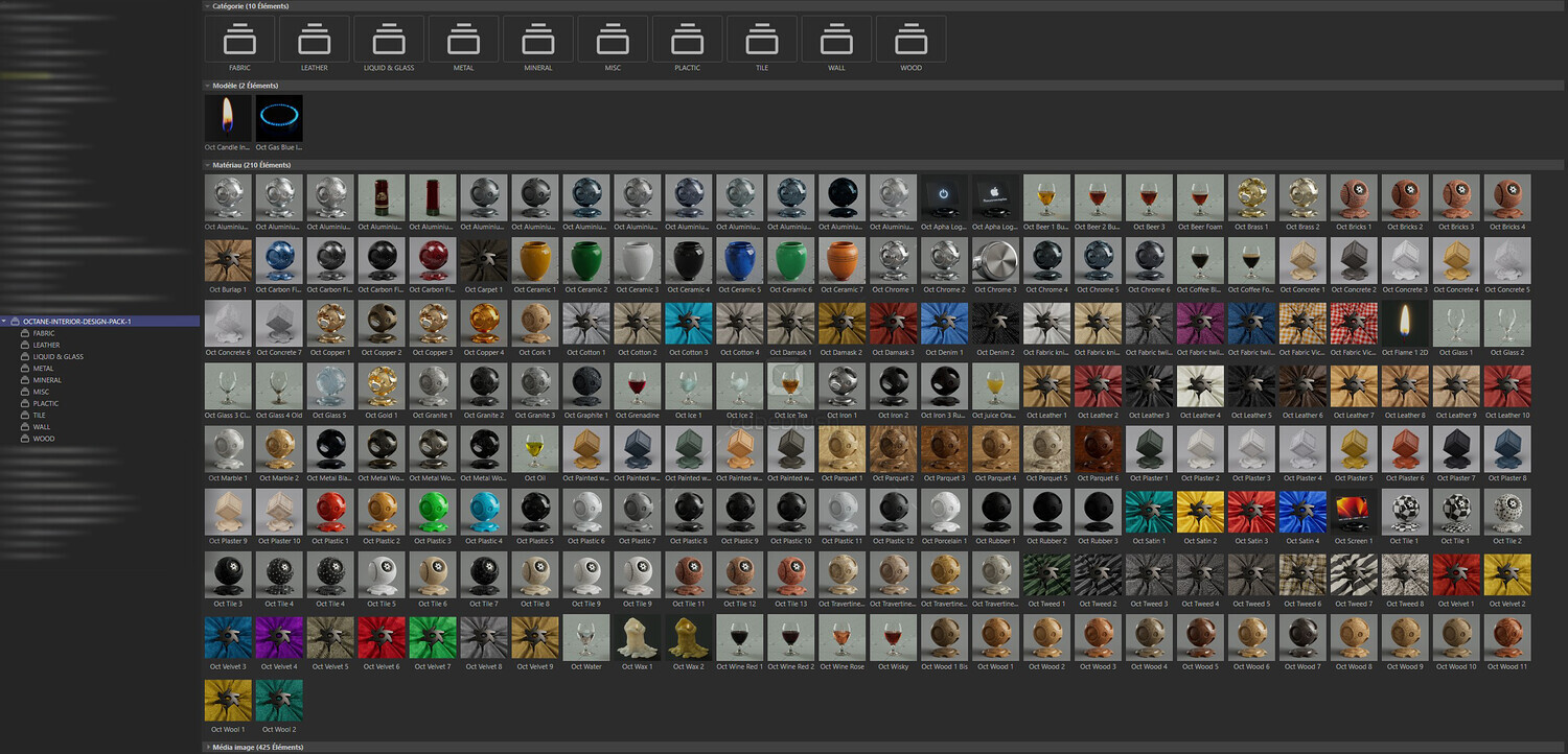 212 highly detailed Octane interior design material for Cinema 4D.