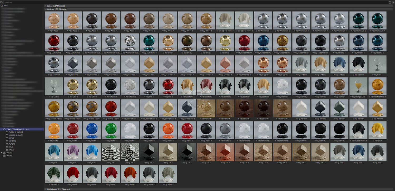 - 135 highly detailed V-RAY design material for Cinema 4D.