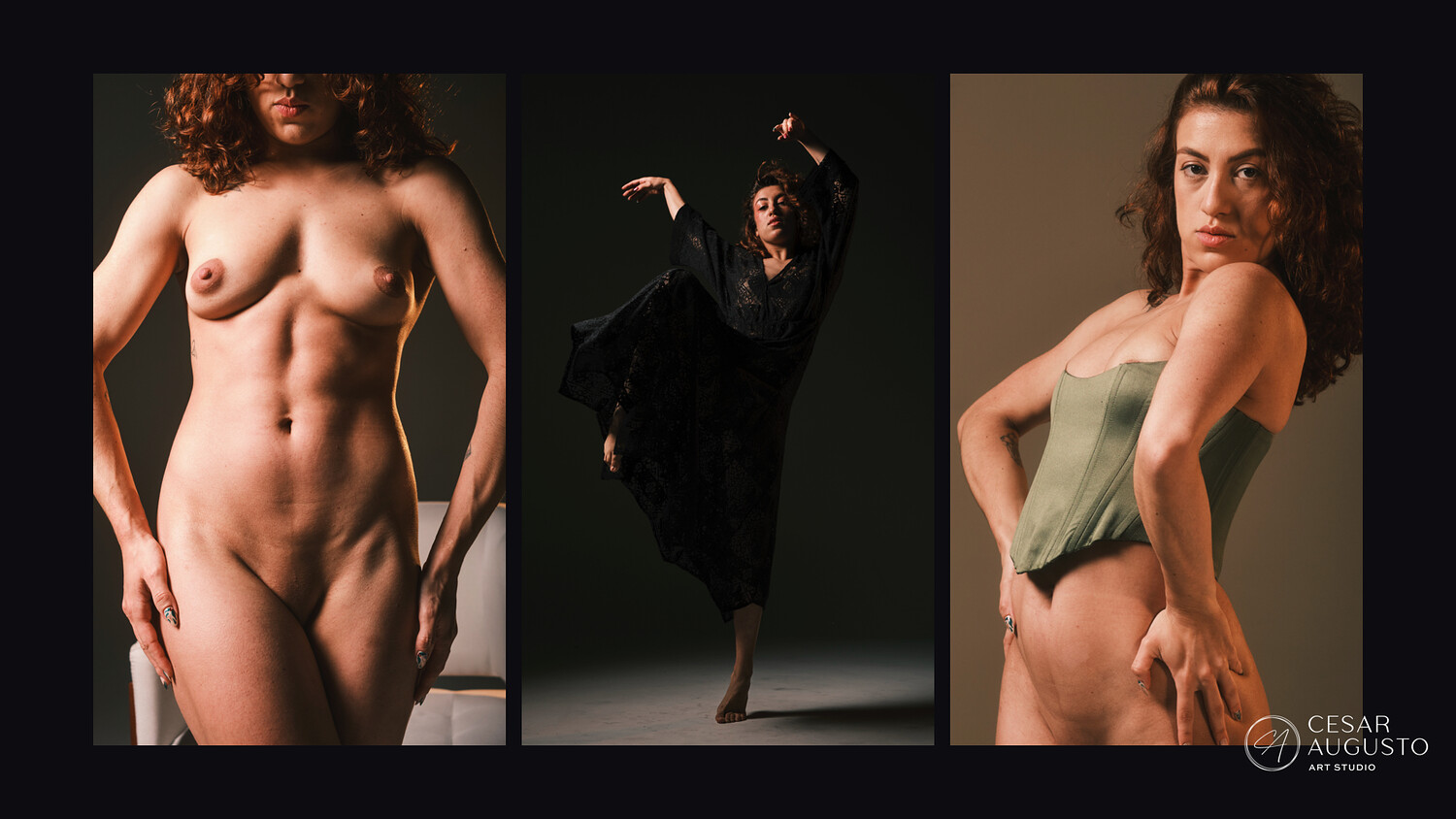 This collection brings together three different sets of Carol into one unified body of work. Shot entirely under Rembrandt light, the focus stays on standing poses, clean silhouettes, and how light shapes the figure. Subtle figurine-like transitions run throughout the set, keeping the work structured and consistent.