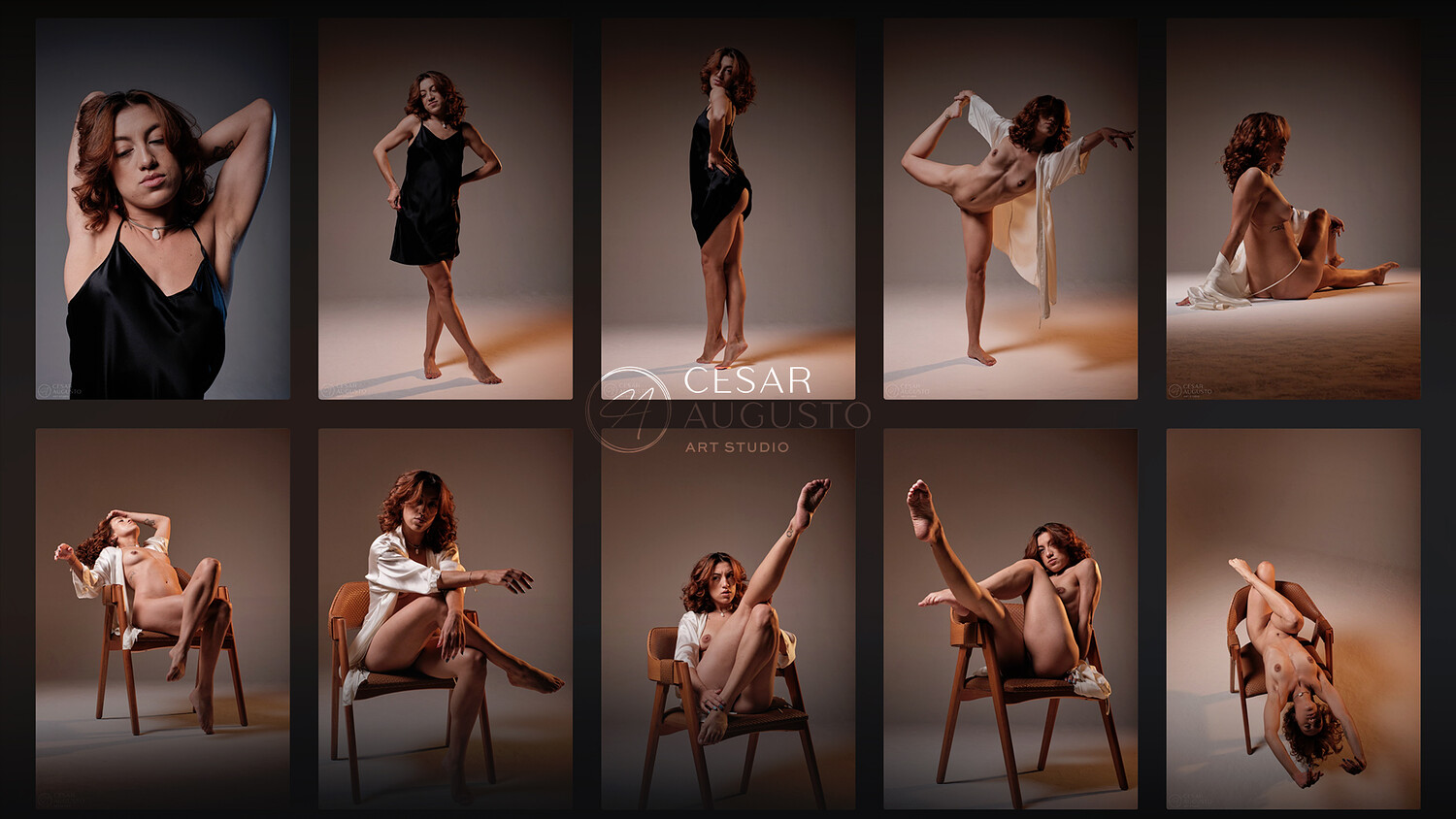 The set is captured using Rembrandt style lighting, emphasizing depth, contrast, and sculptural definition. This classic lighting approach enhances Carol’s features and body lines, creating a timeless atmosphere that complements the dynamic nature of her poses.