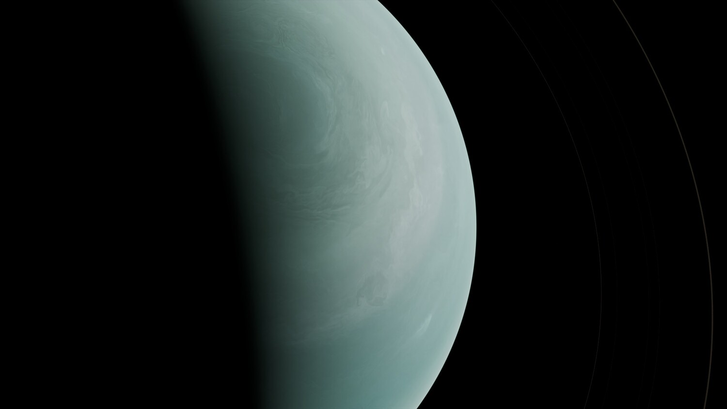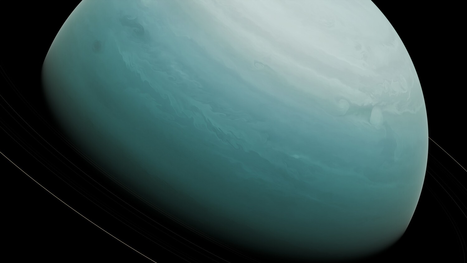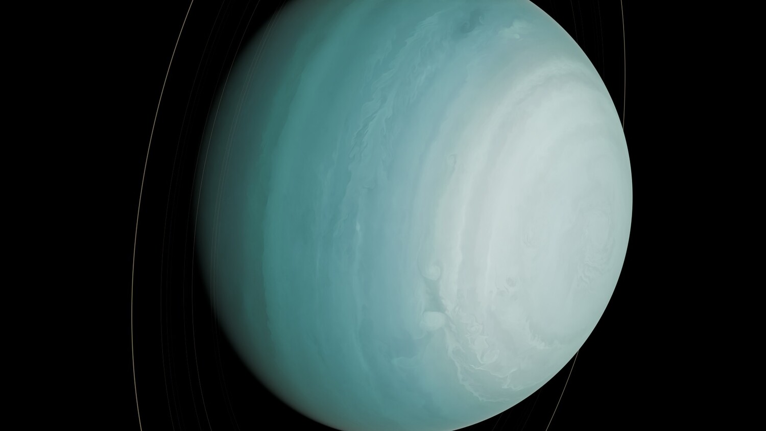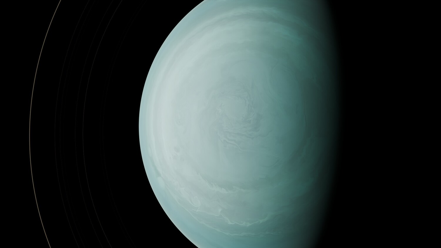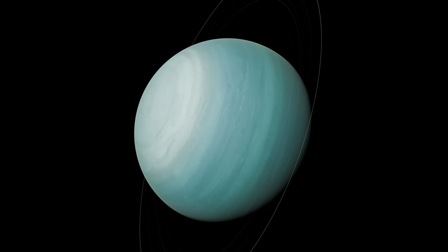 This 3D representation of Uranus is based on scientific data regarding its atmospheric composition and structure. The physically based textures reflect seasonal variations, with dedicated maps for both summer and winter hemispheres. Ring textures are derived from observed albedo and opacity data, featuring fine details of Uranus’s faint and complex ring system.