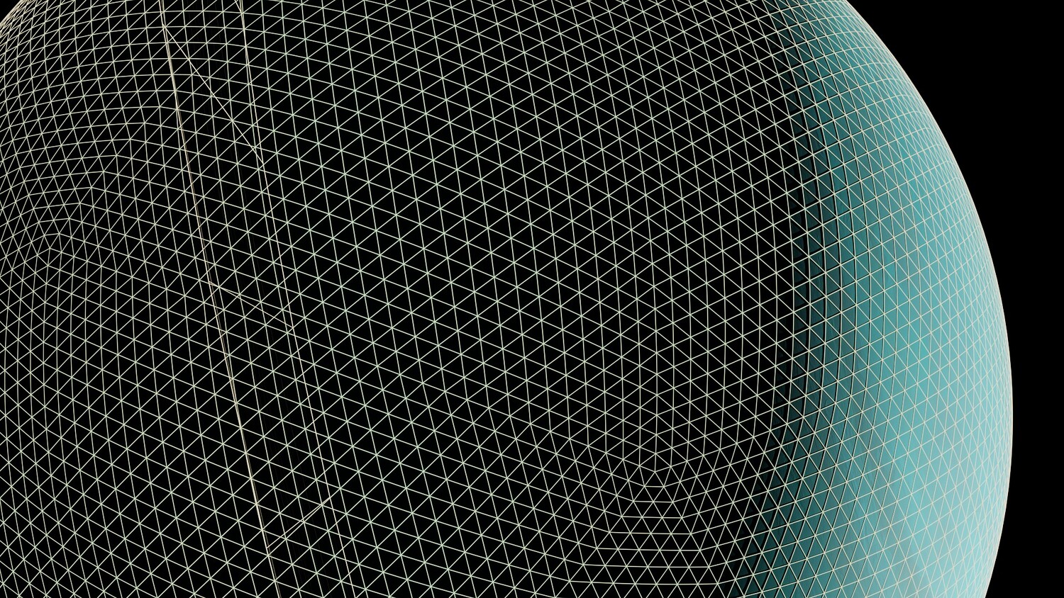 - Icosahedral mesh with continuous spherical projection without seams or polar distortion