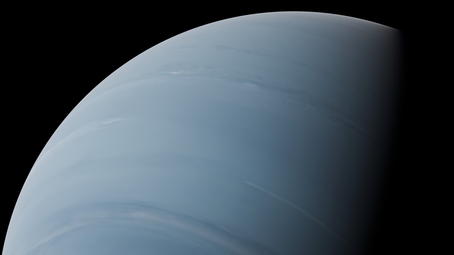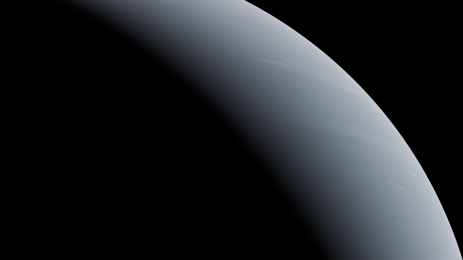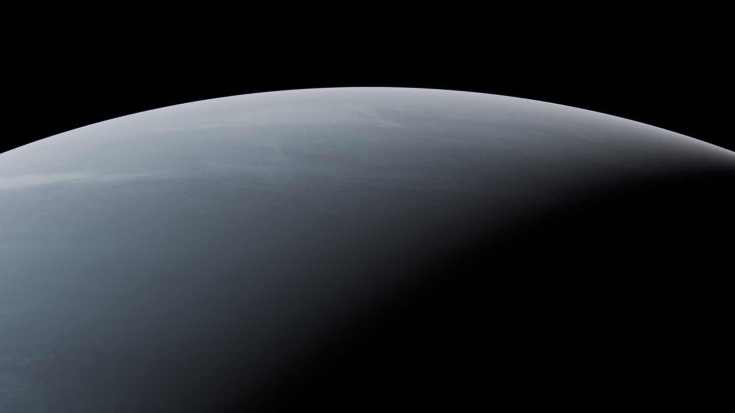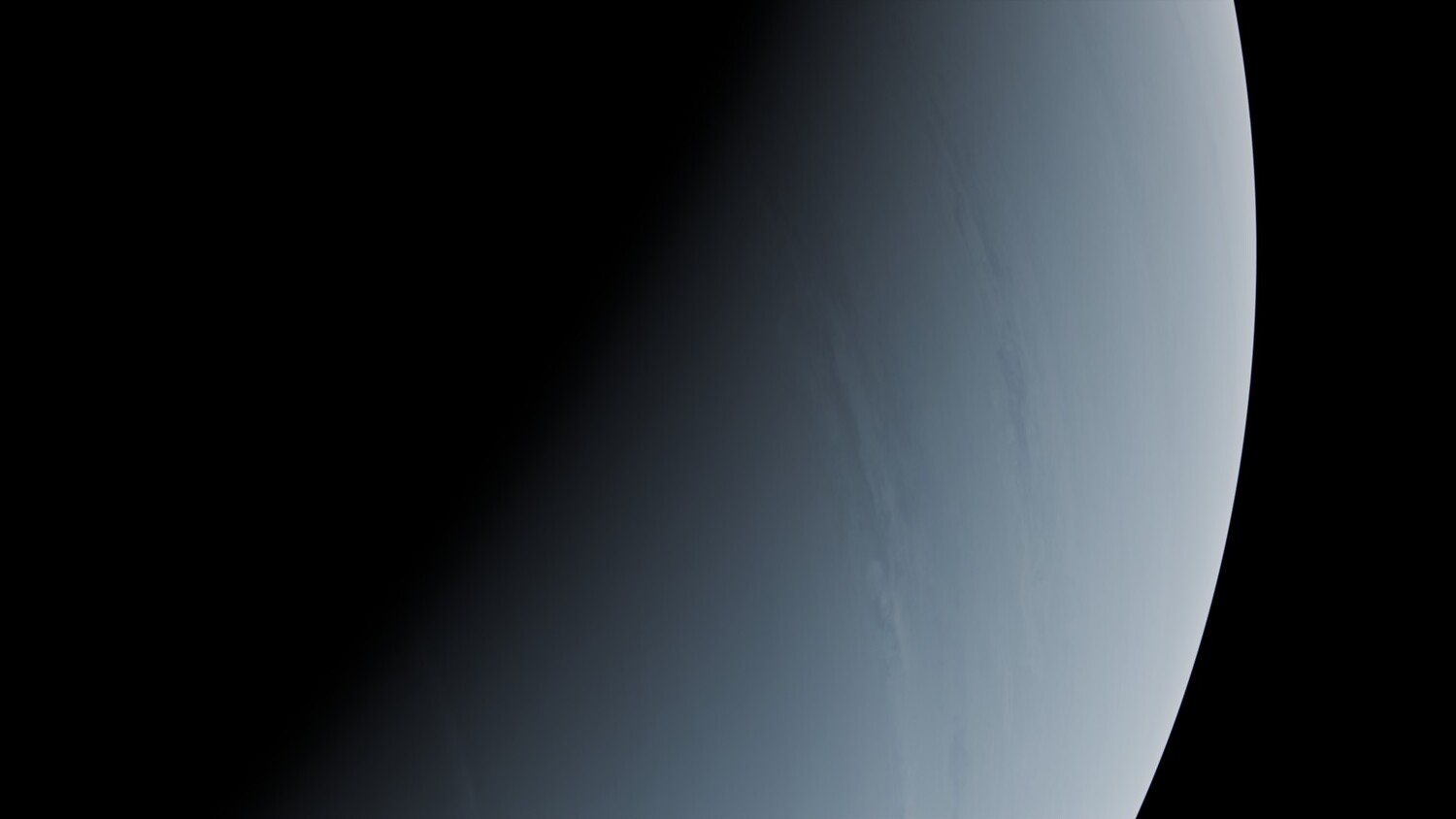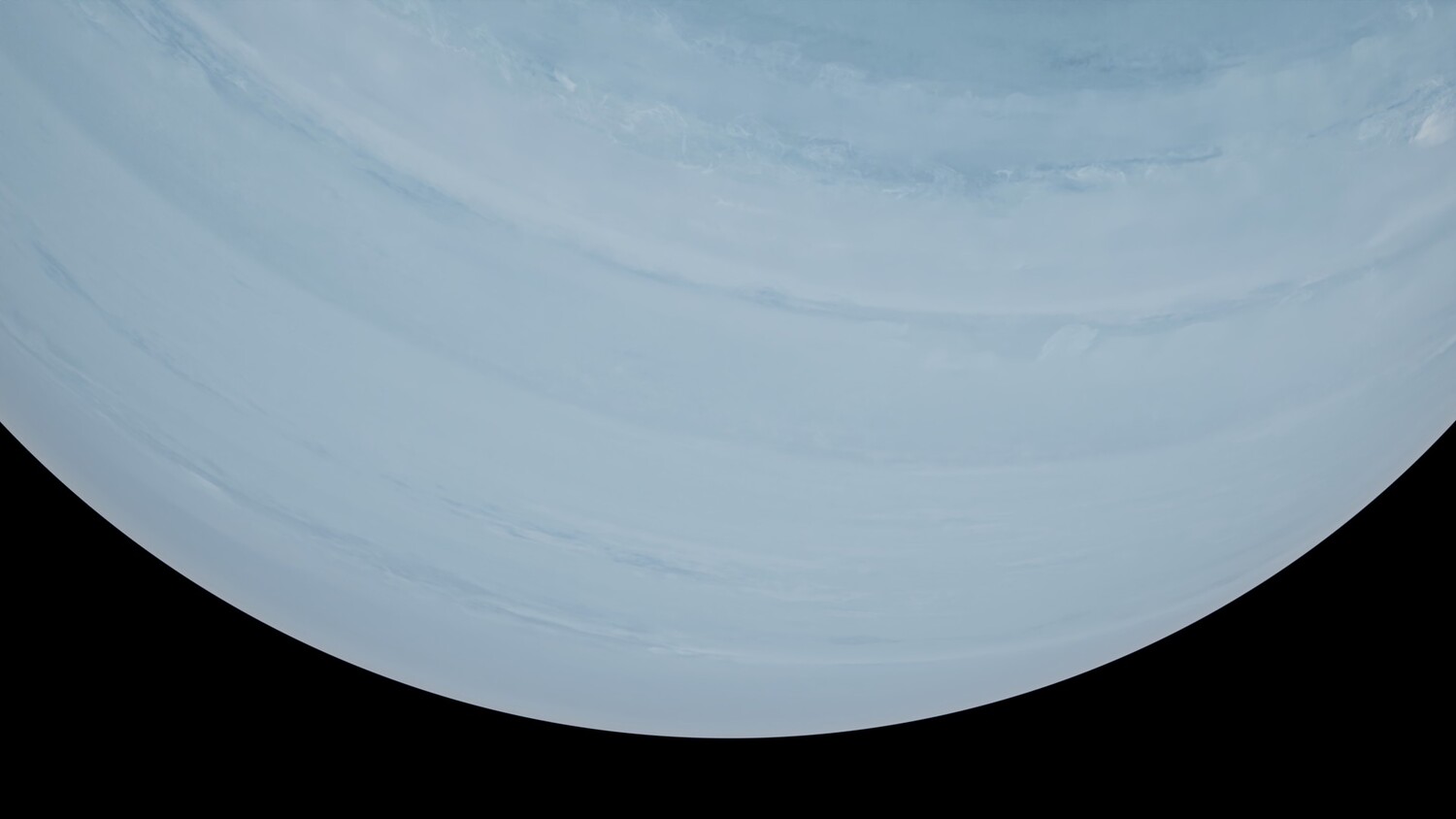 This 3D representation of Neptune is based on scientific data regarding its chemical composition and atmospheric dynamics. The physically based textures incorporate visual features of high-altitude methane ice crystal clouds, derived from real images taken by Voyager 2 and the Hubble Space Telescope.