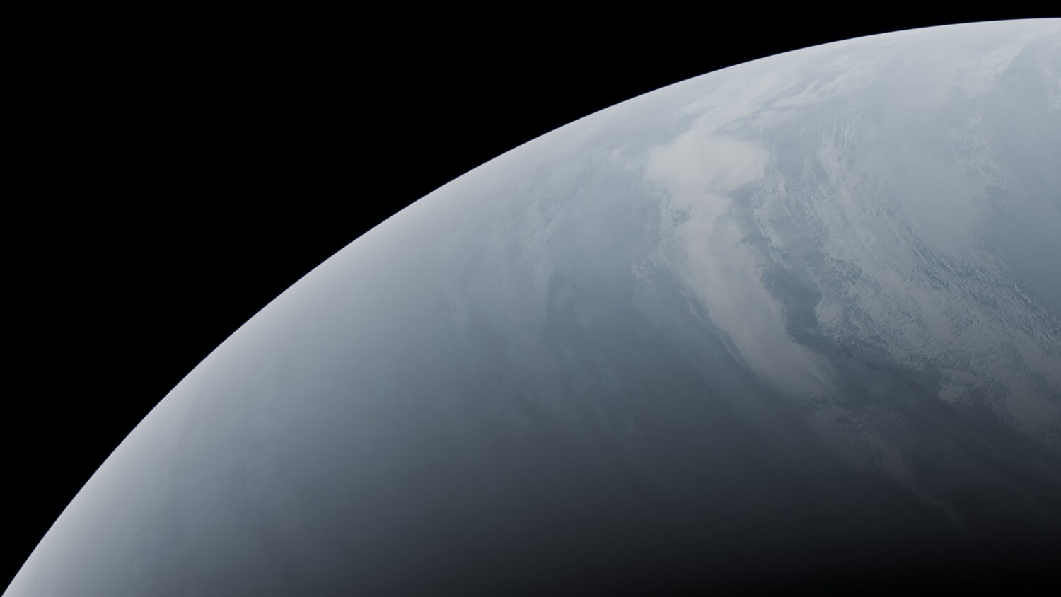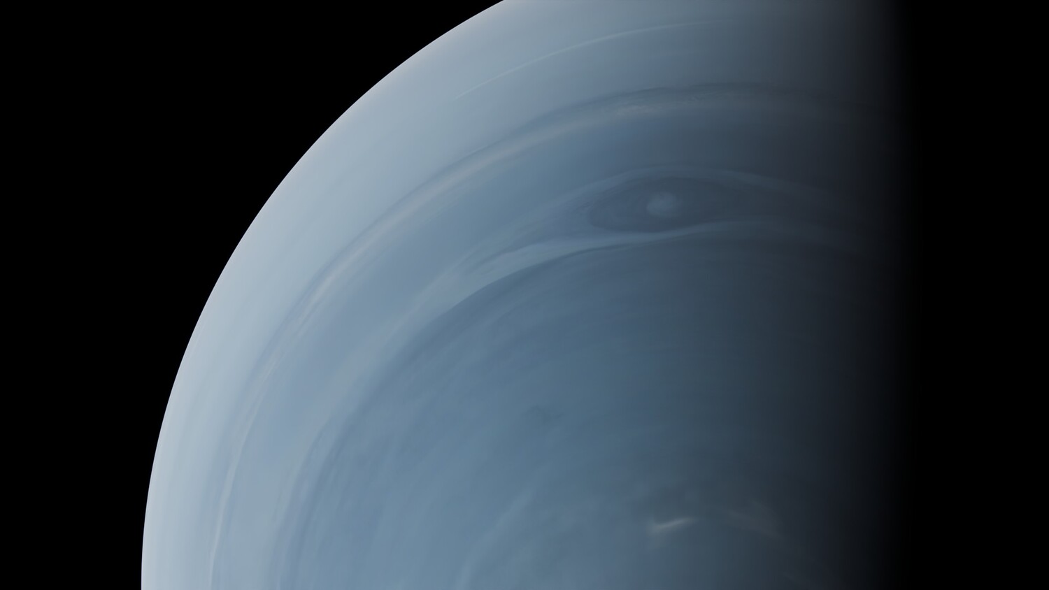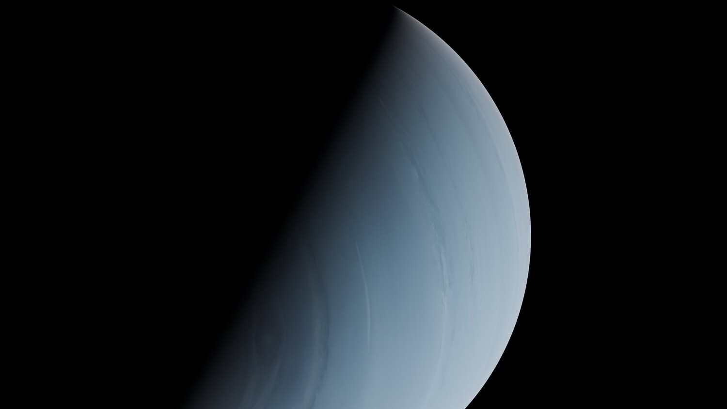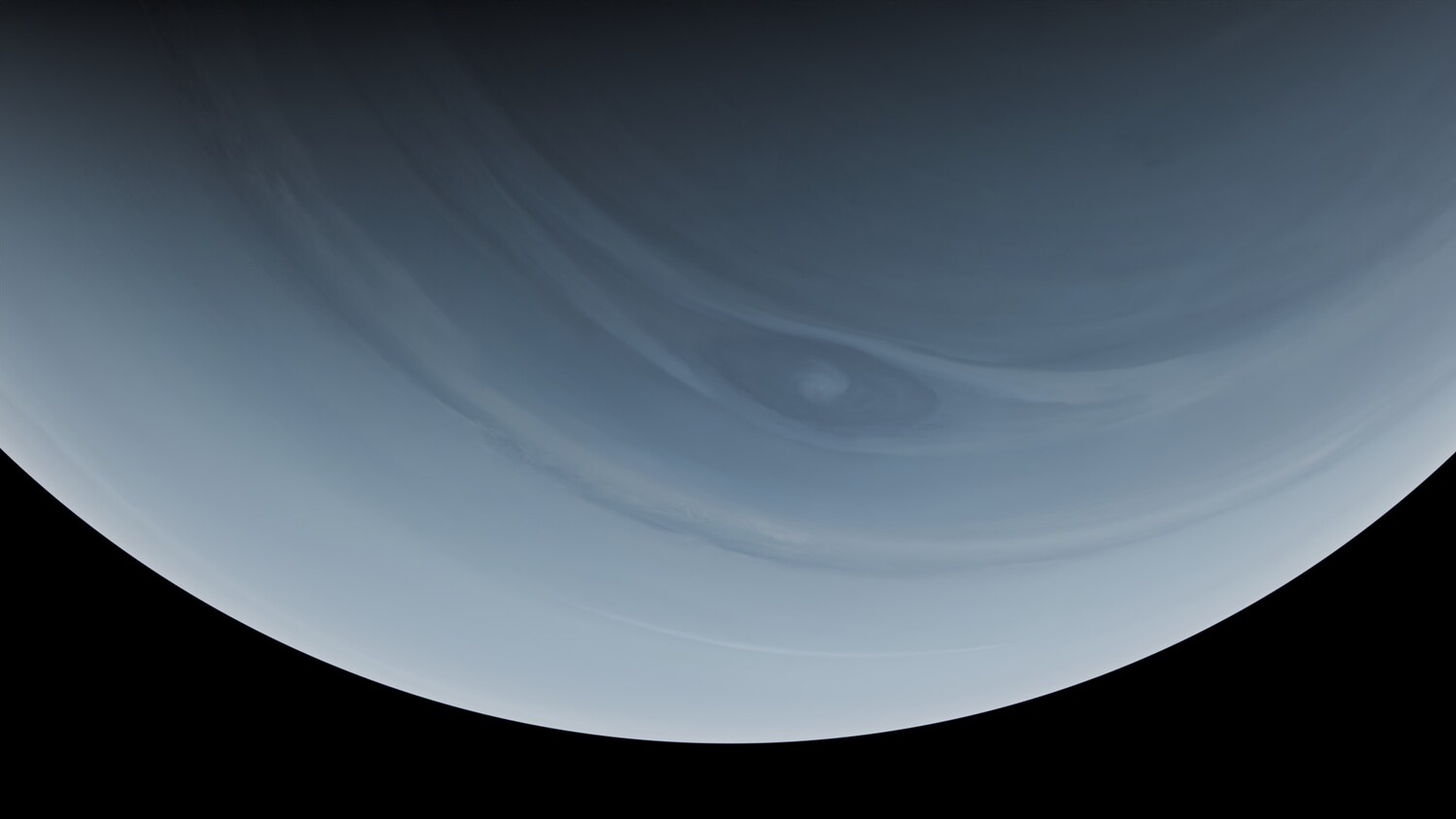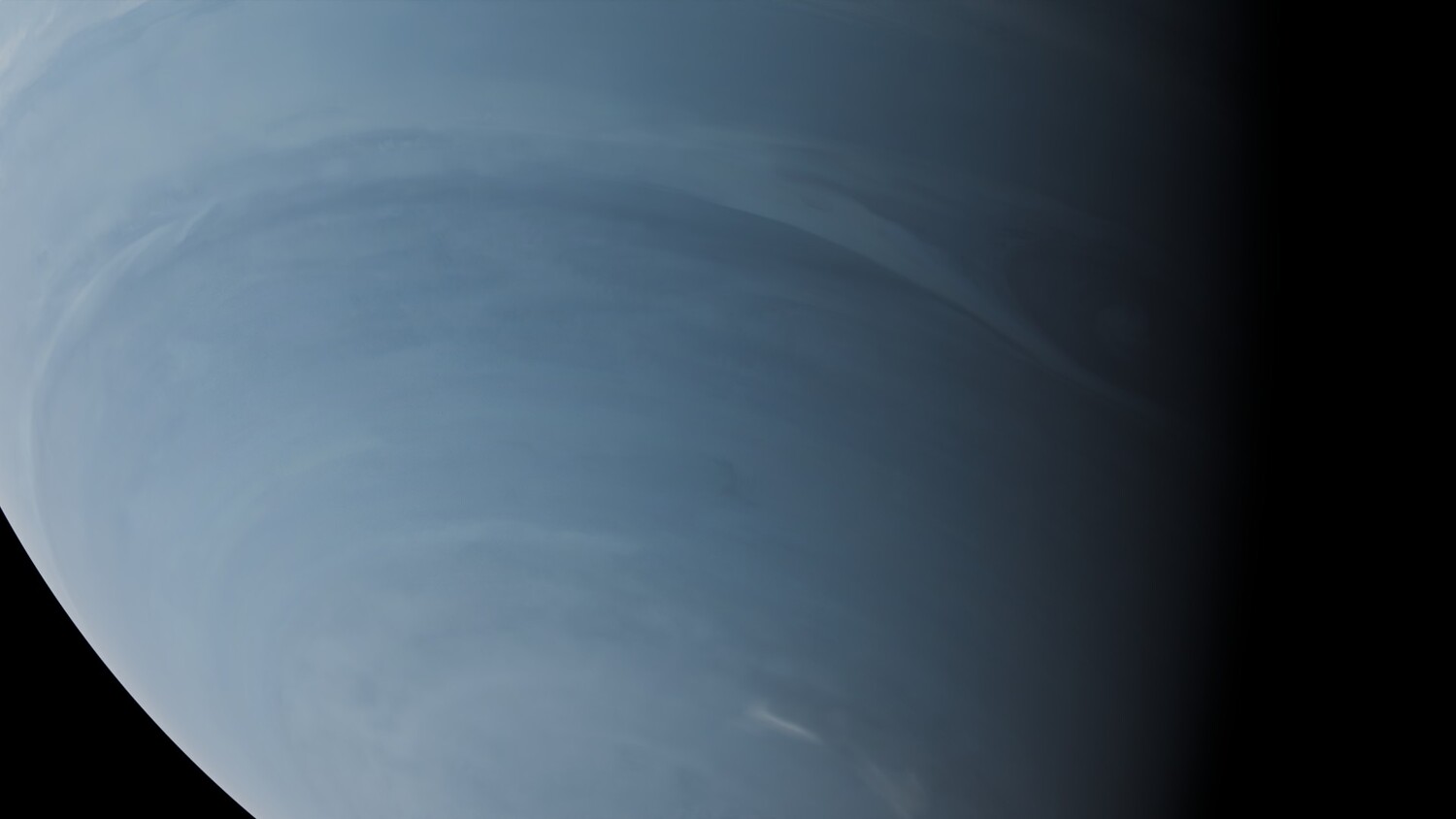 This 3D representation of Neptune is based on scientific data regarding its chemical composition and atmospheric dynamics. The physically based textures incorporate visual features of high-altitude methane ice crystal clouds, derived from real images taken by Voyager 2 and the Hubble Space Telescope.
