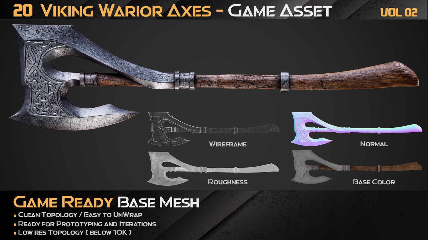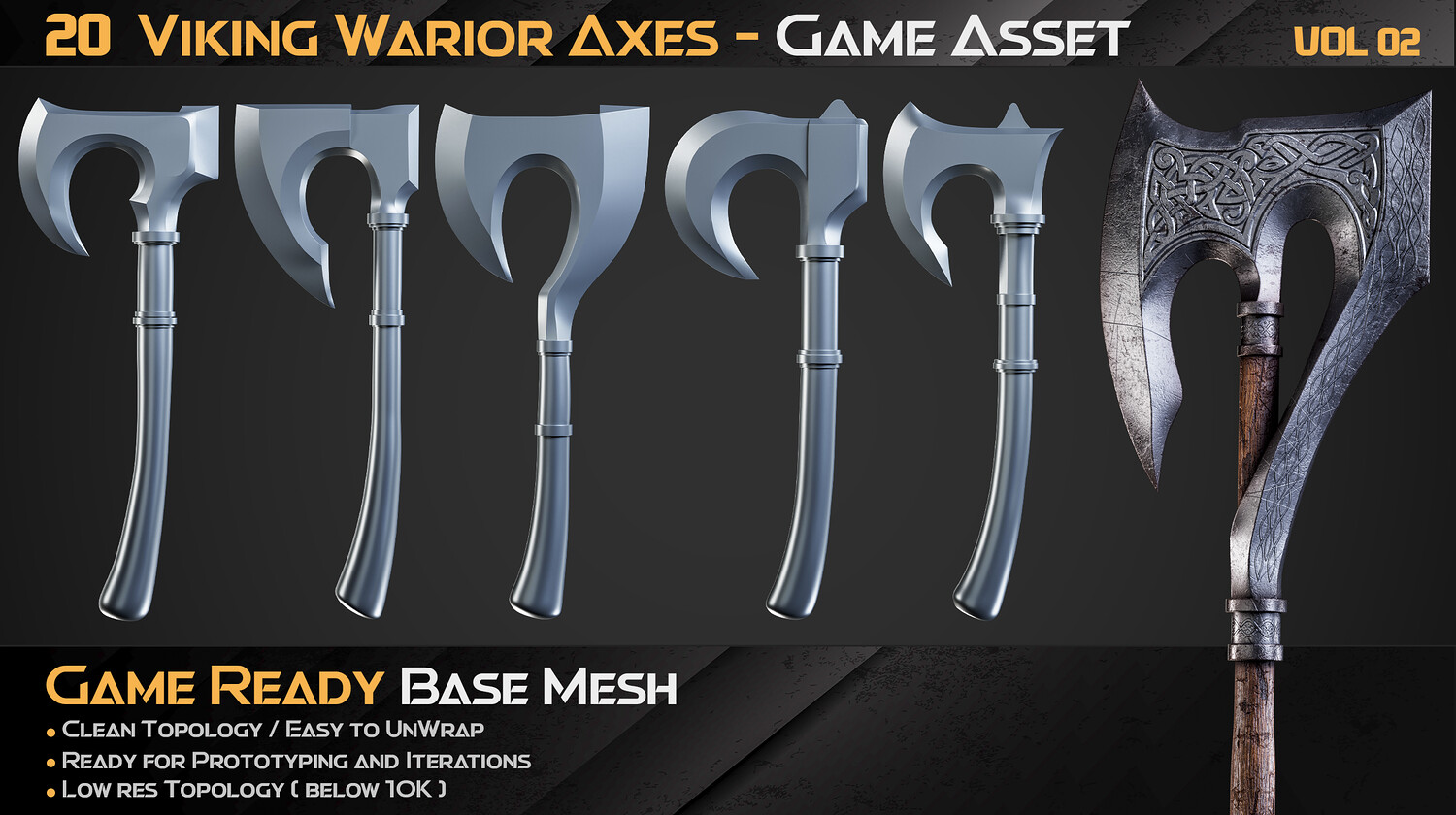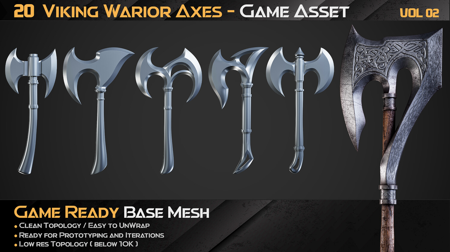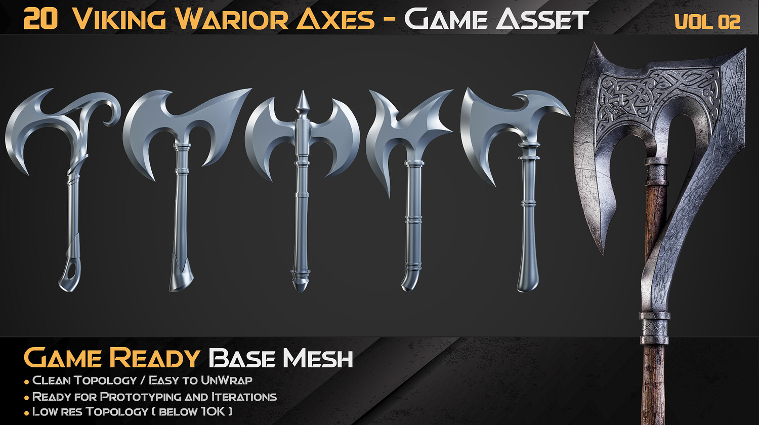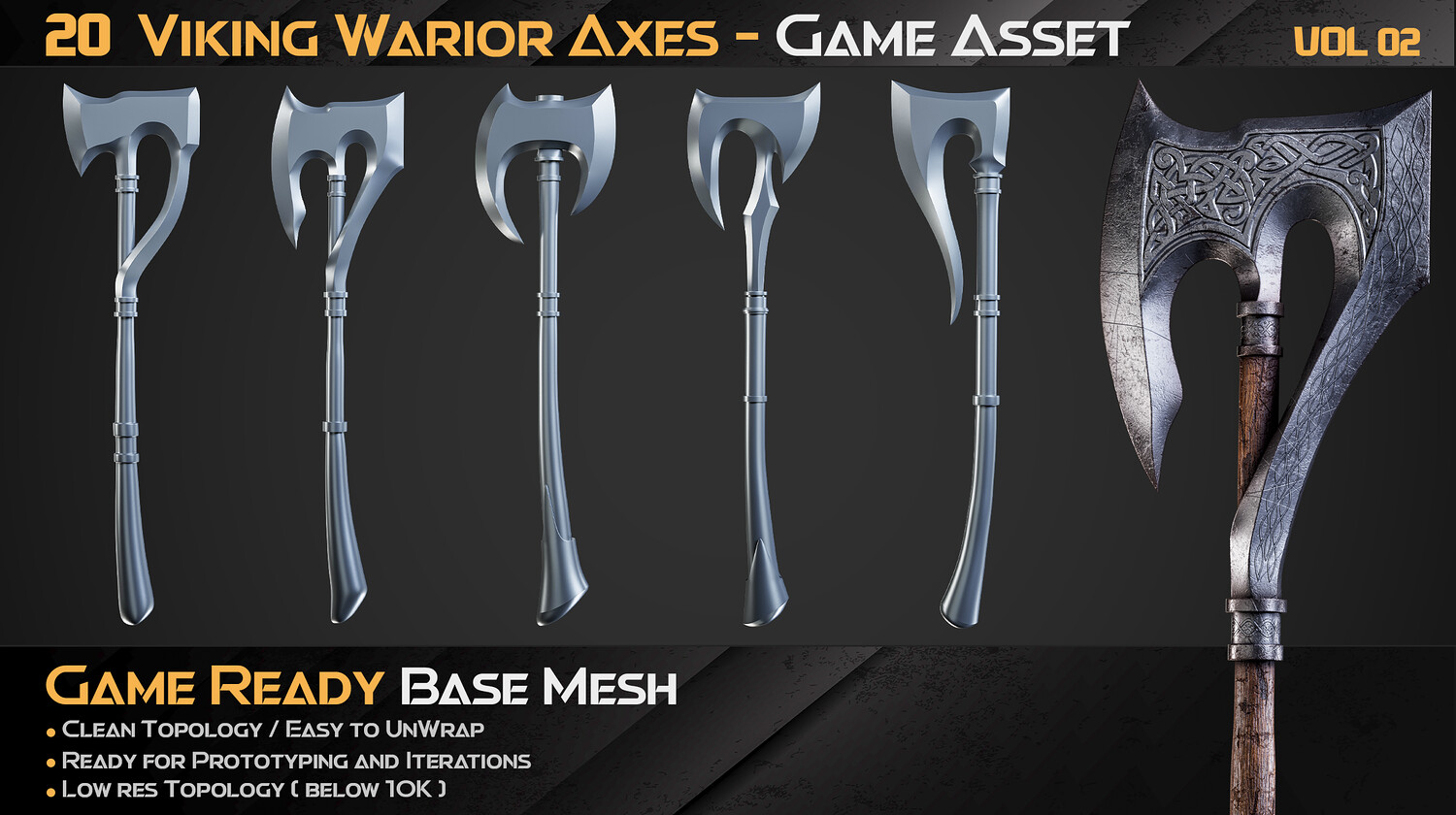 After your wonderful reception of the previous collection (20 Viking warrior AXES - Basemesh - Vol 01), we have prepared another new and attractive collection for you, just like before.