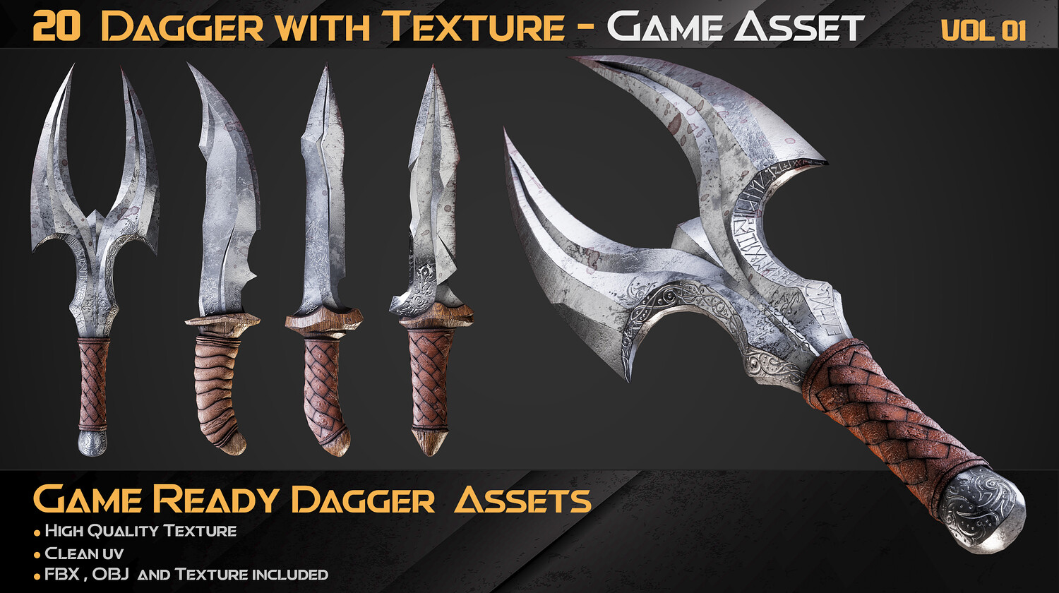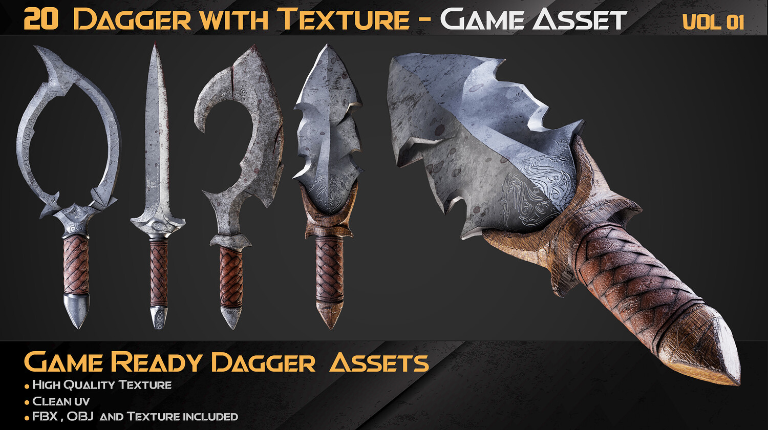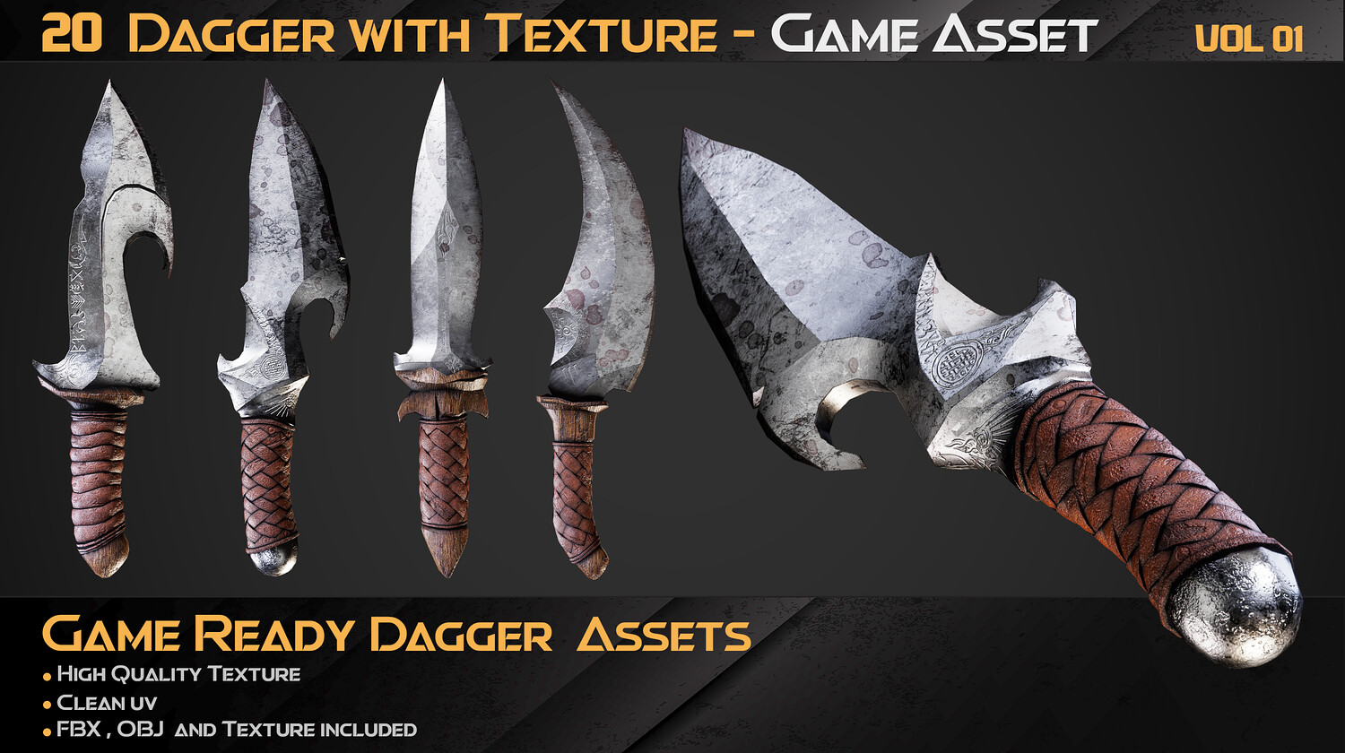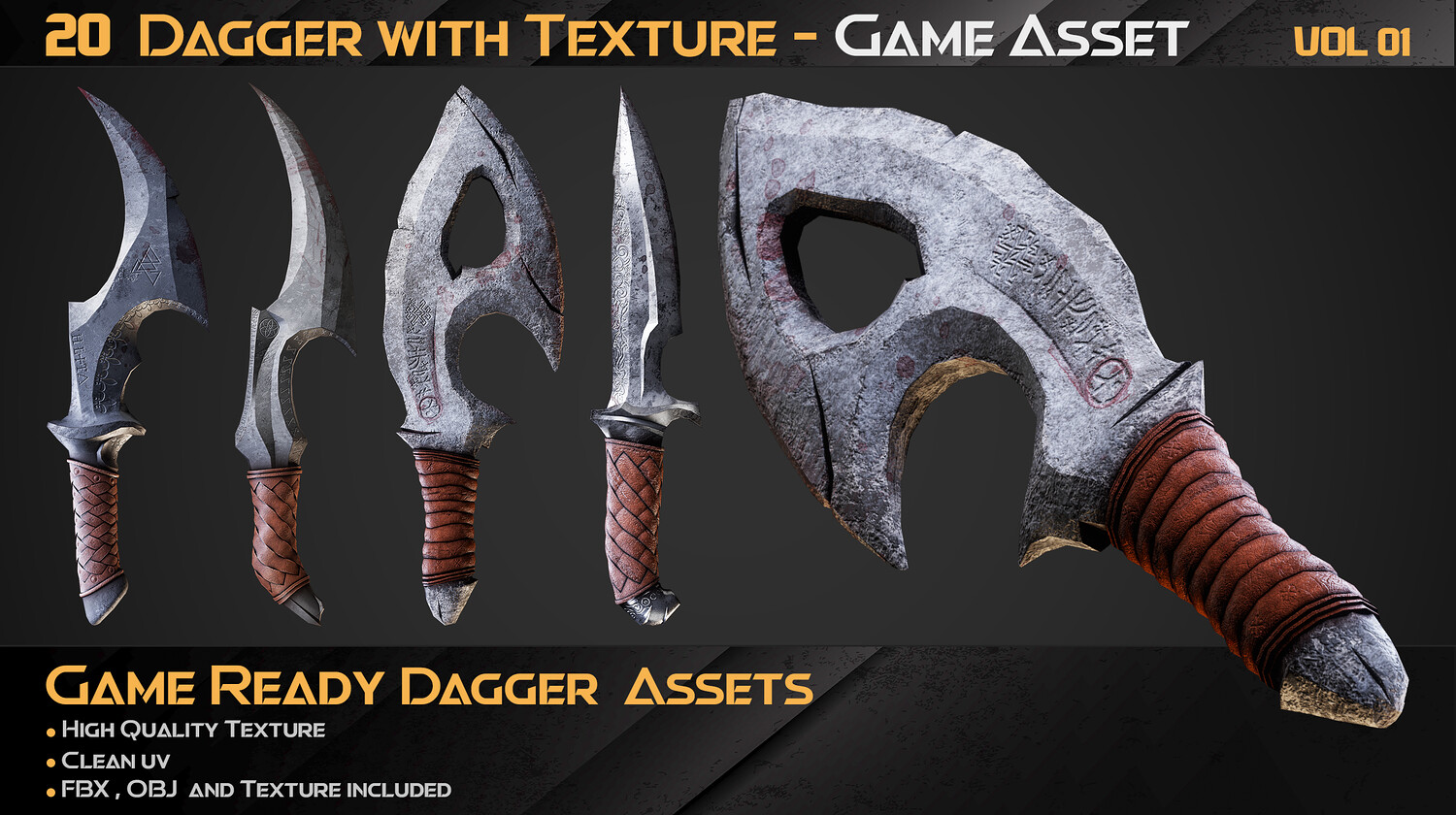 Are you working on a character or game and need a dagger? Skip the heavy modeling work!