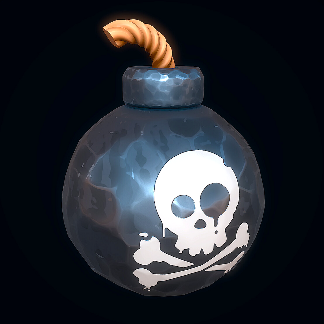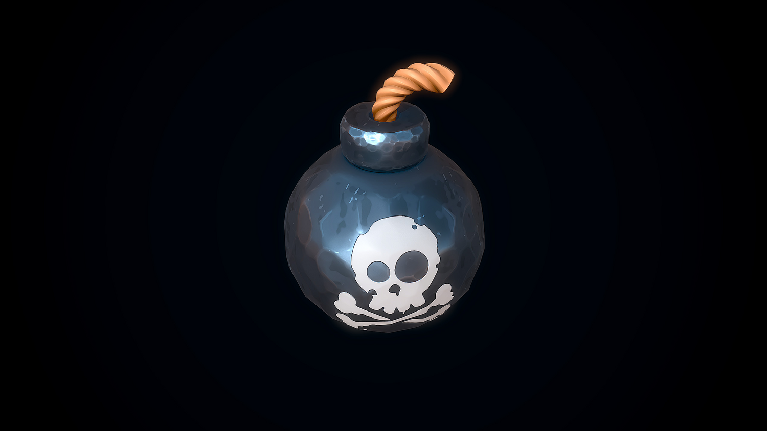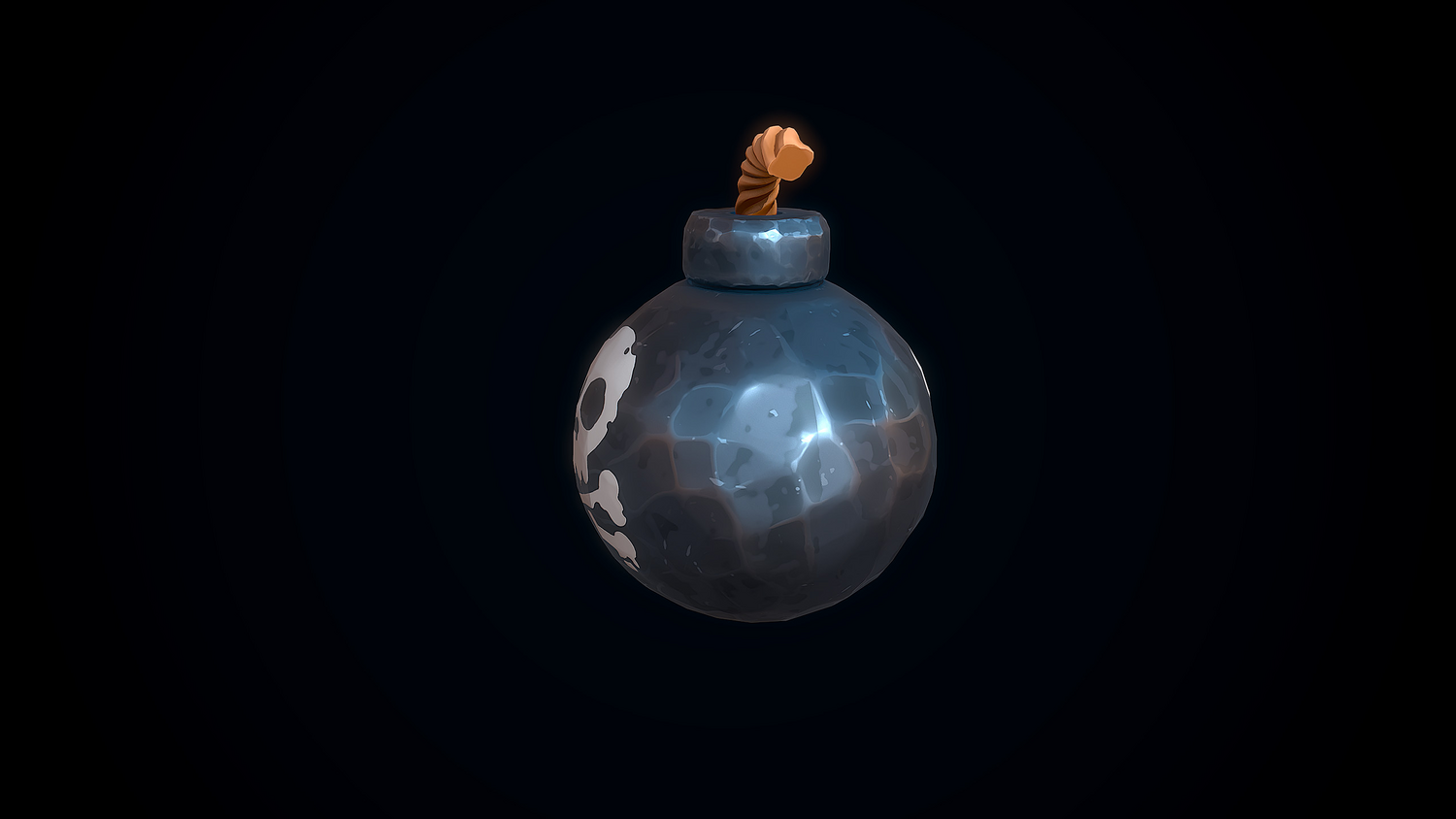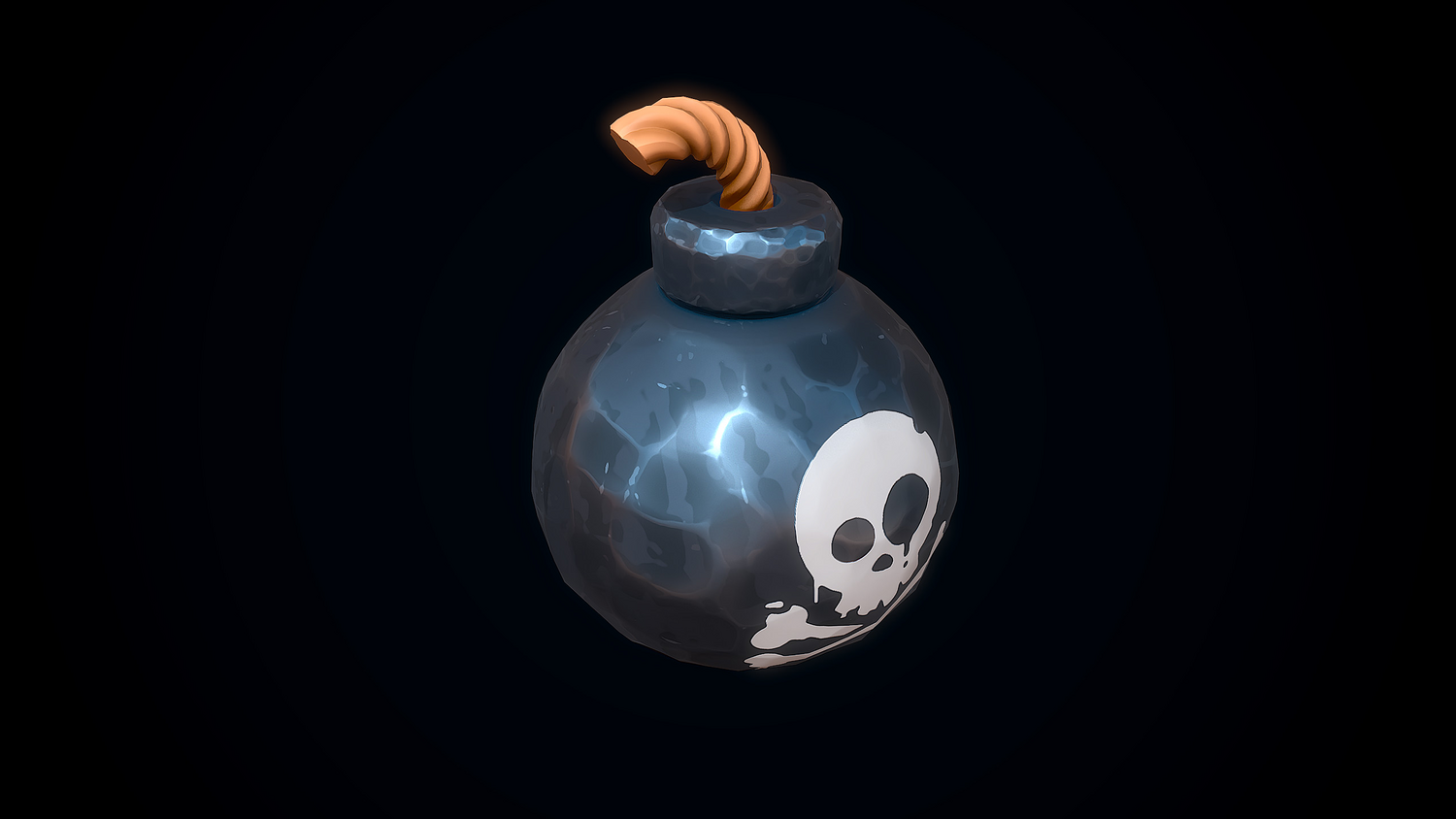 A low-poly model of the Stylized Bomb doesn't contain any n-gons and has optimal topology. The archive includes such 2K textures: base color map, metalness map, normal map (OpenGL), and roughness map. Images were rendered in Marmoset.