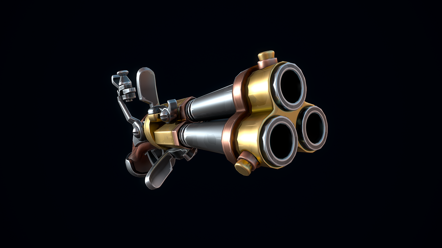 A low-poly 3D model of a Stylized Flintlock Pistol doesn't contain n-gons and has optimal topology. The archive includes such 2K textures: base color map, metalness map, normal map (OpenGL), and roughness map. Images were rendered in Marmoset.