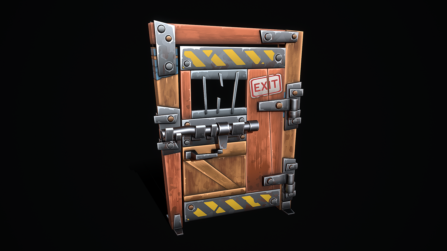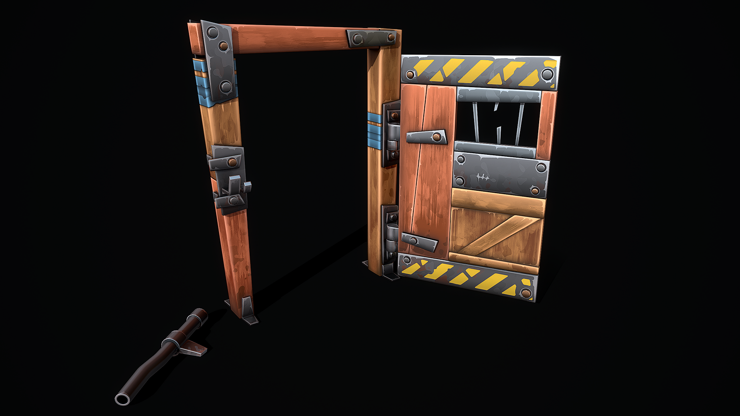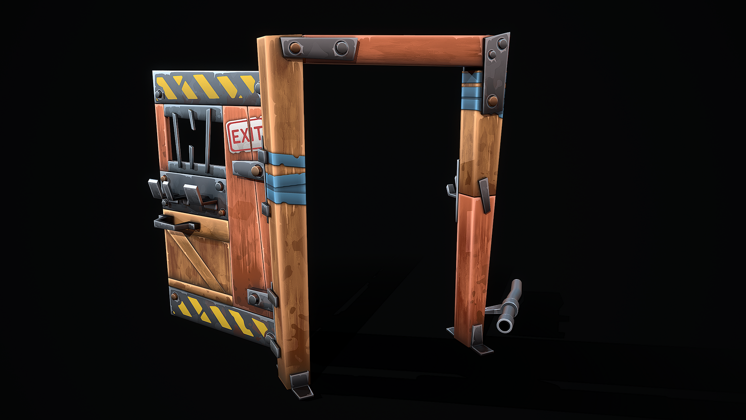 A low-poly 3D model of a Stylized Shelter Door doesn't contain n-gons and has optimal topology. The archive includes such 2K textures: base color map, metalness map, normal map (OpenGL), and roughness map. Images and video were rendered in Marmoset.