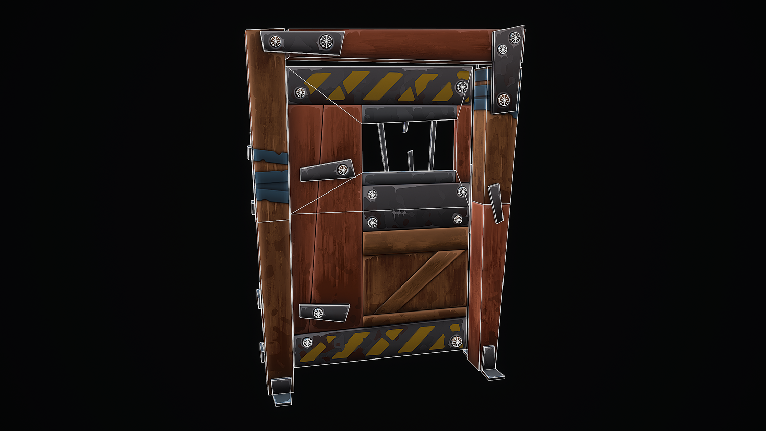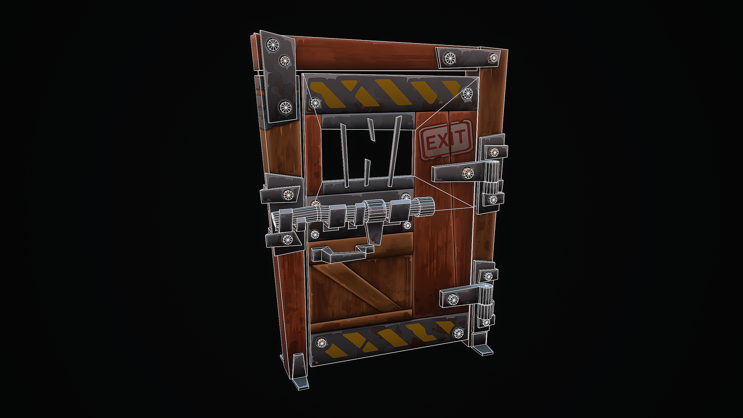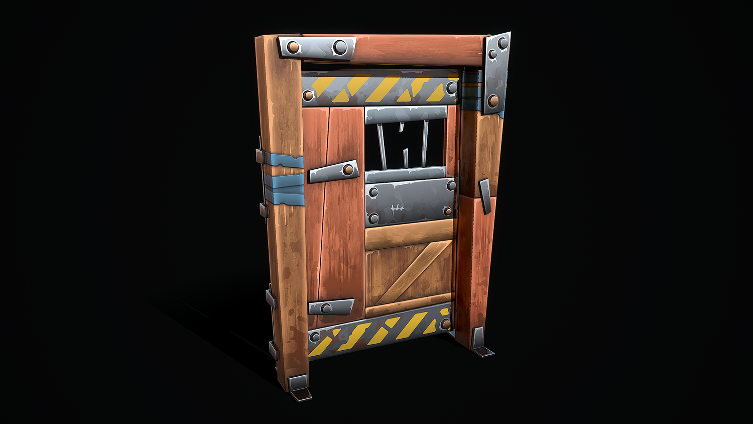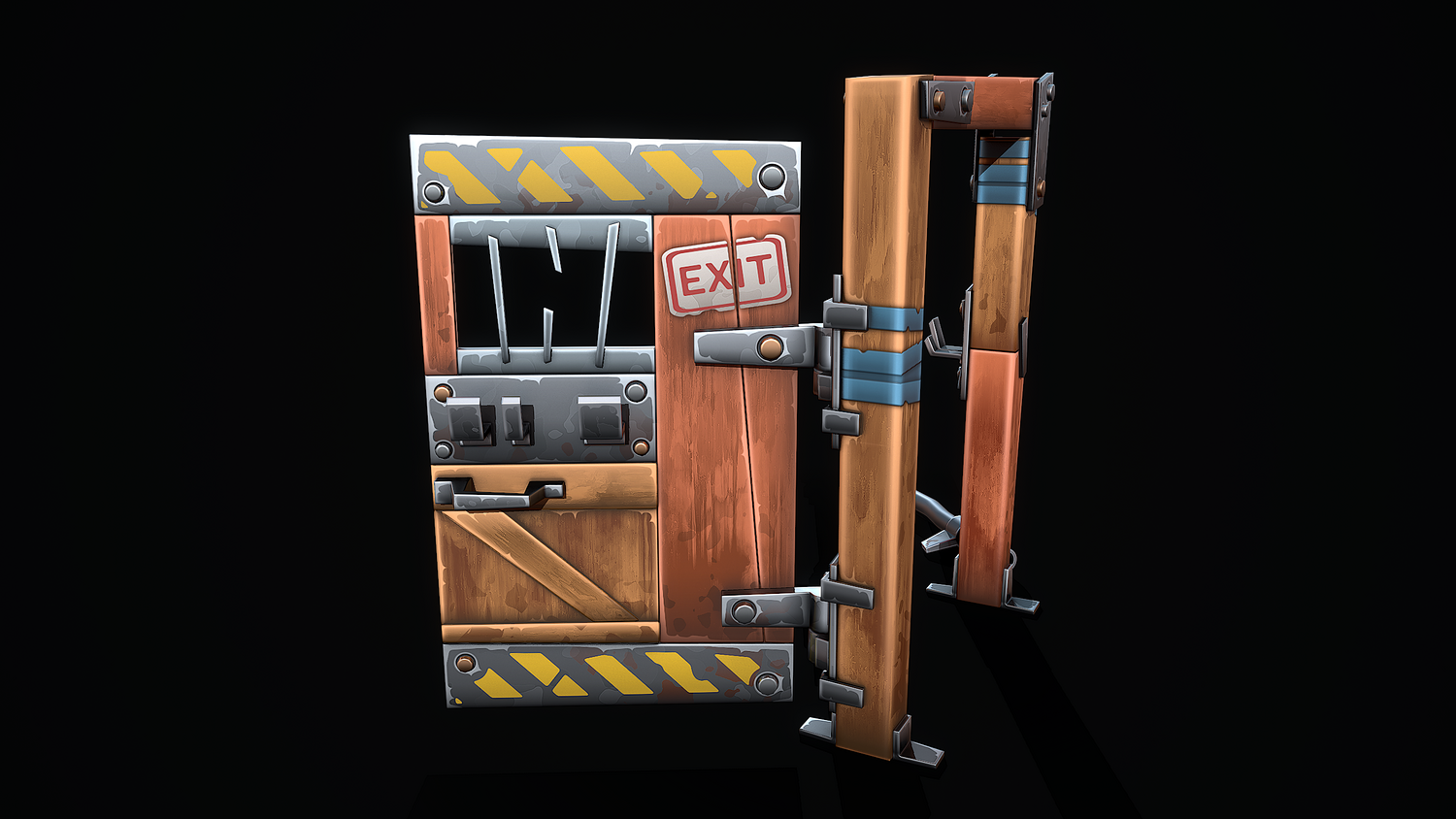 A low-poly 3D model of a Stylized Shelter Door doesn't contain n-gons and has optimal topology. The archive includes such 2K textures: base color map, metalness map, normal map (OpenGL), and roughness map. Images and video were rendered in Marmoset.