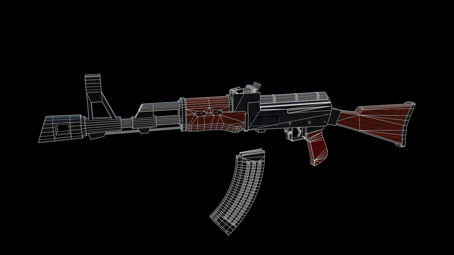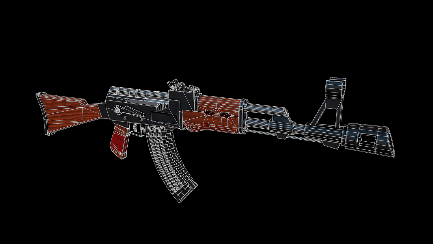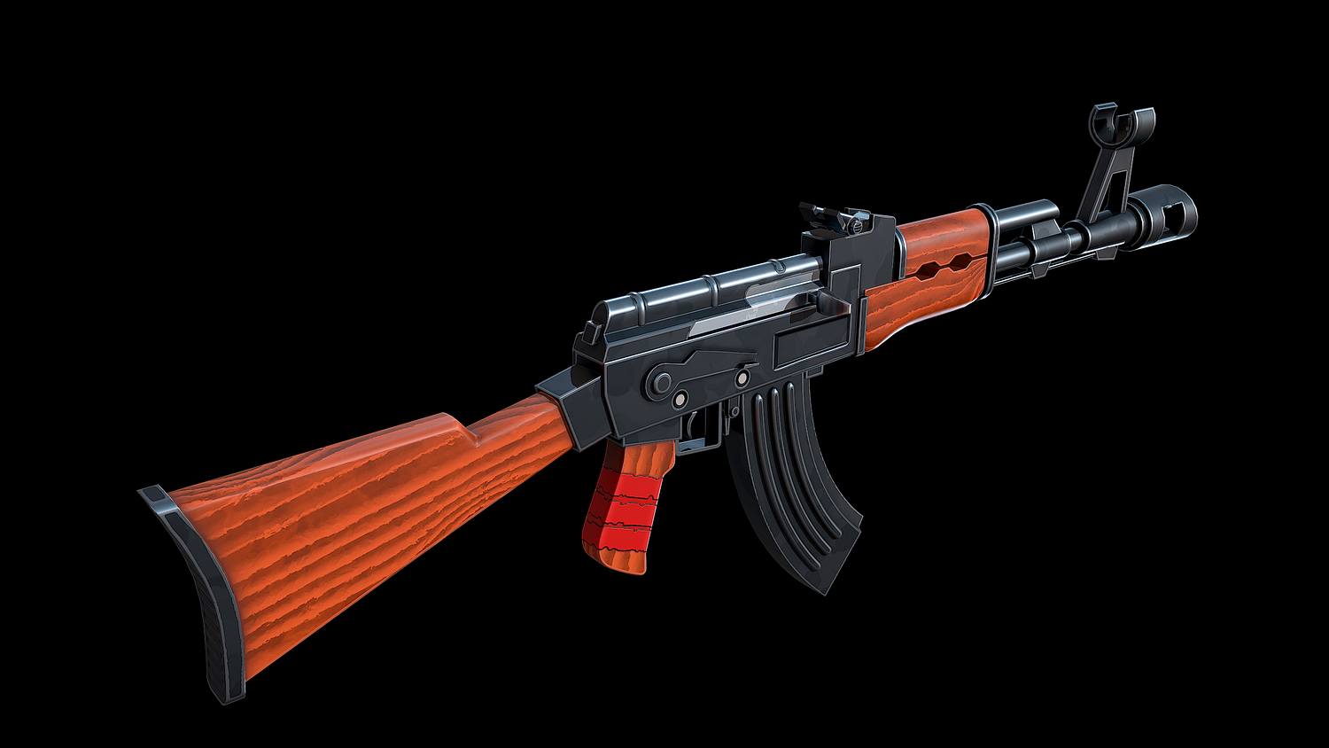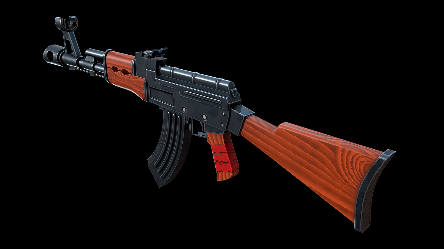 The low-poly model of the Stylized Soviet Rifle doesn't contain any polygons and has an optimal topology. The archive includes such 2K textures: base color map, metalness map, normal map (OpenGL), and roughness map. Images of the model were rendered in Marmoset.