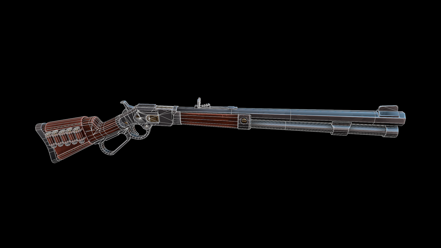 A low-poly 3D model of a Stylized Lever-Action Rifle doesn't contain n-gons and has optimal topology. The archive includes such 2K textures: base color map, metalness map, normal map (OpenGL), and roughness map. Images were rendered in Marmoset.