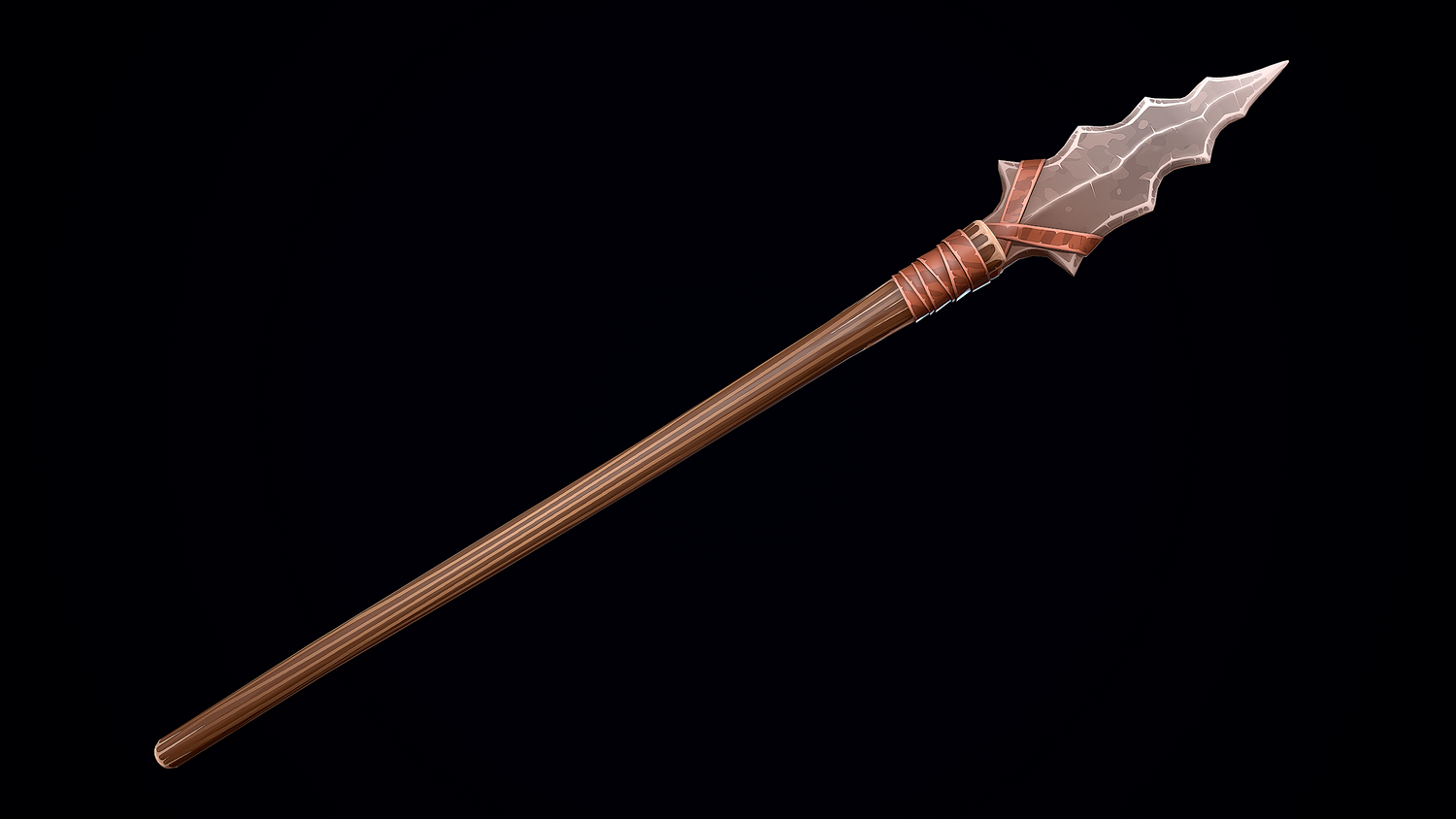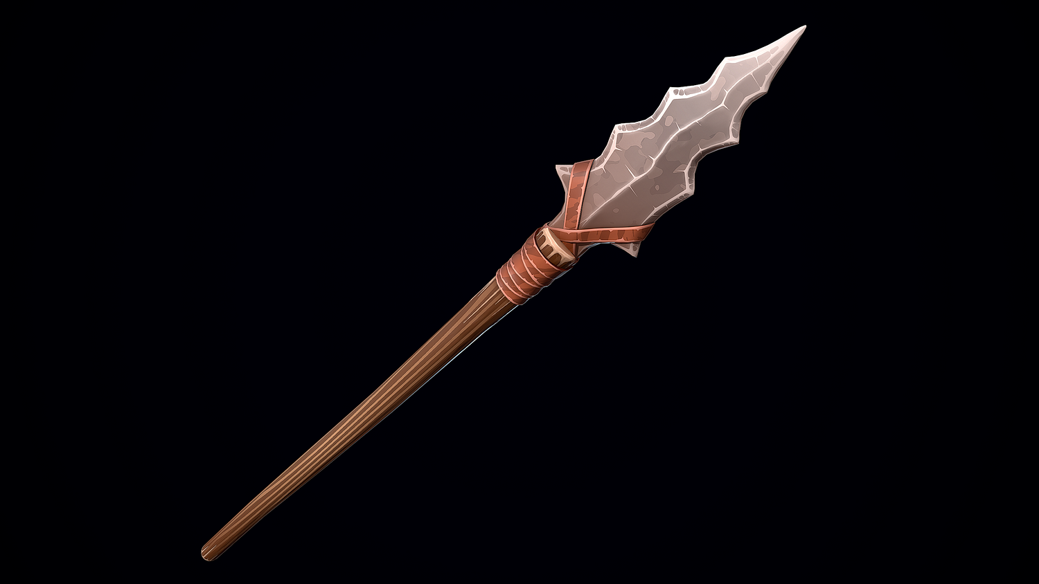 The low-poly 3D model of a Stylized Stone Spear doesn't contain any n-gons and has an optimal topology. The archive includes such 2K textures: base color map, metalness map, normal map (OpenGL), and roughness map. Images were rendered in Marmoset.
