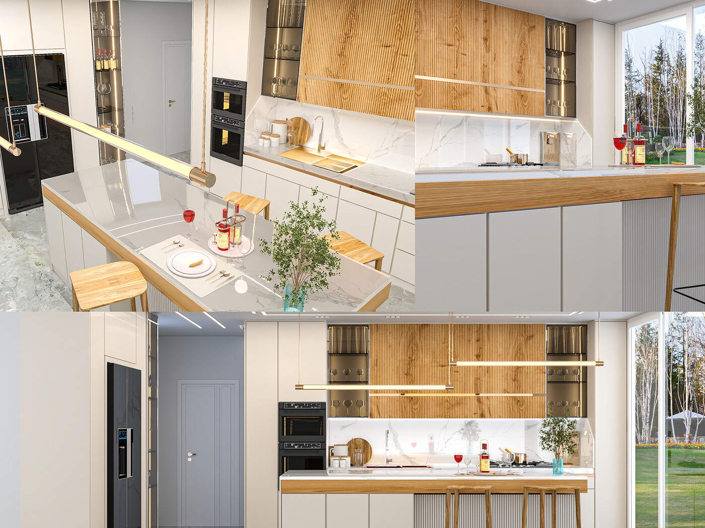 Bring your interior visualizations to life with this realistic and fully detailed modern kitchen 3D model. Designed with professional standards in mind, this scene includes all essential kitchen appliances and accessories to save you hours of modeling and texturing.