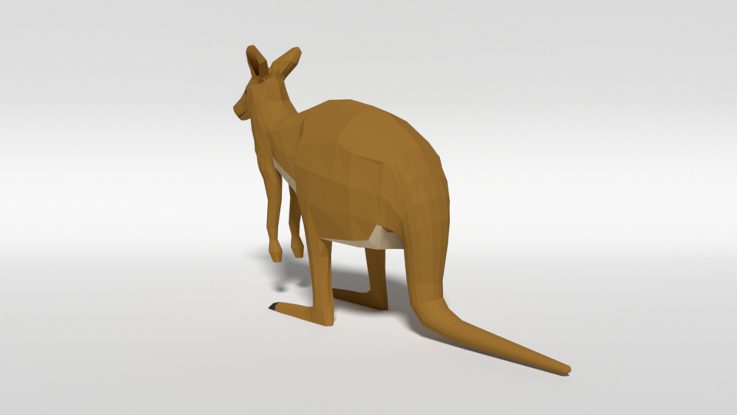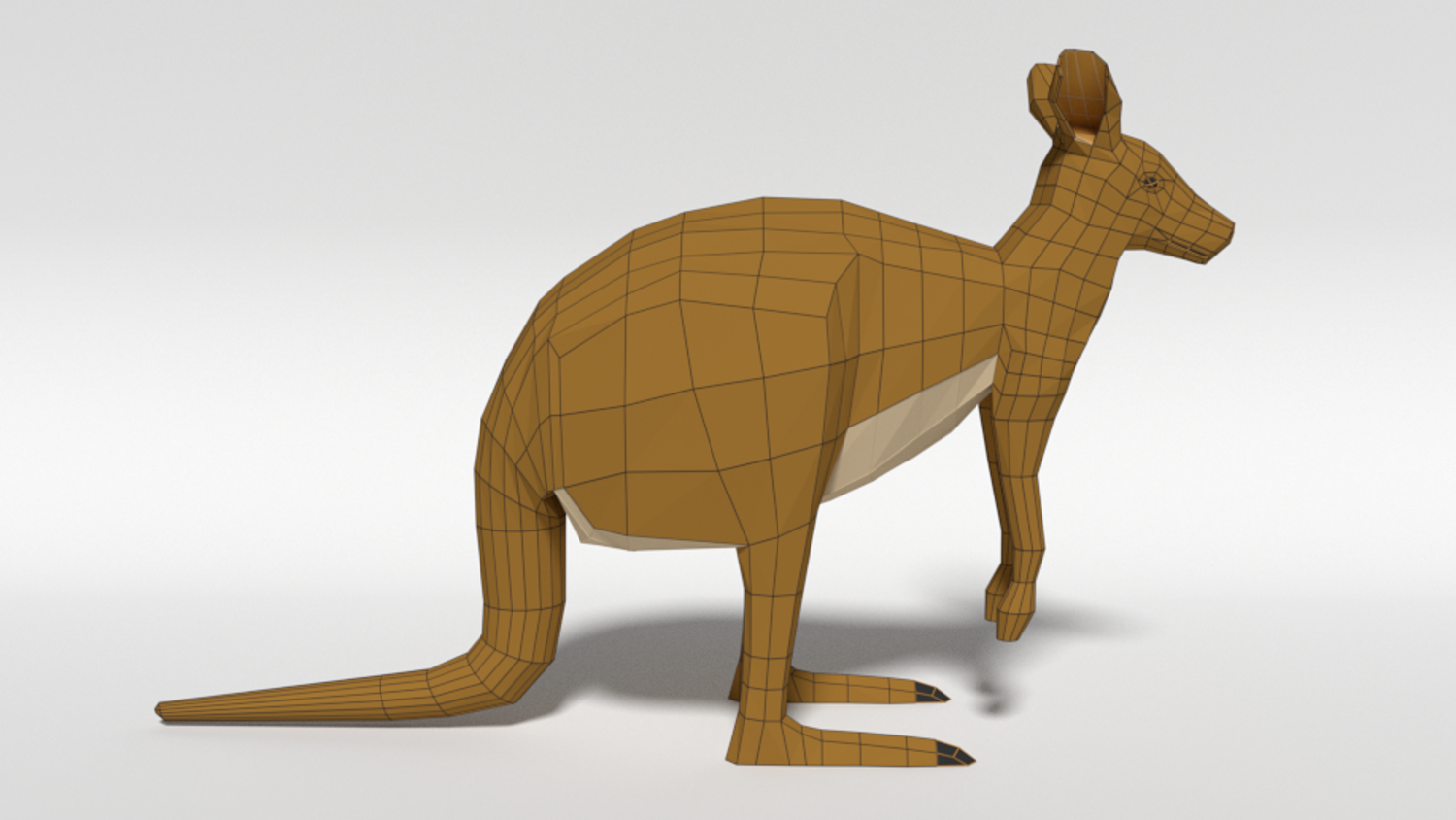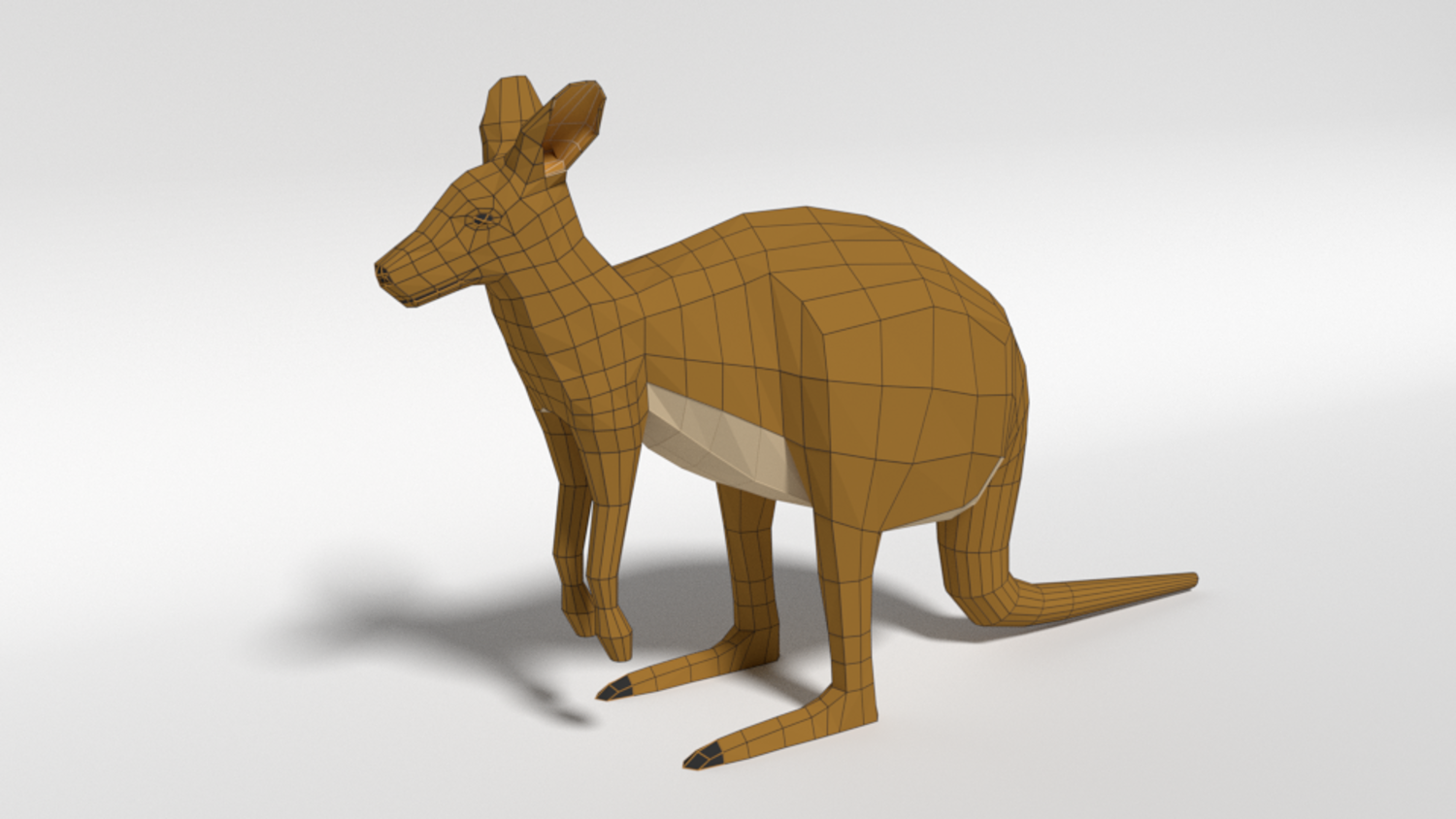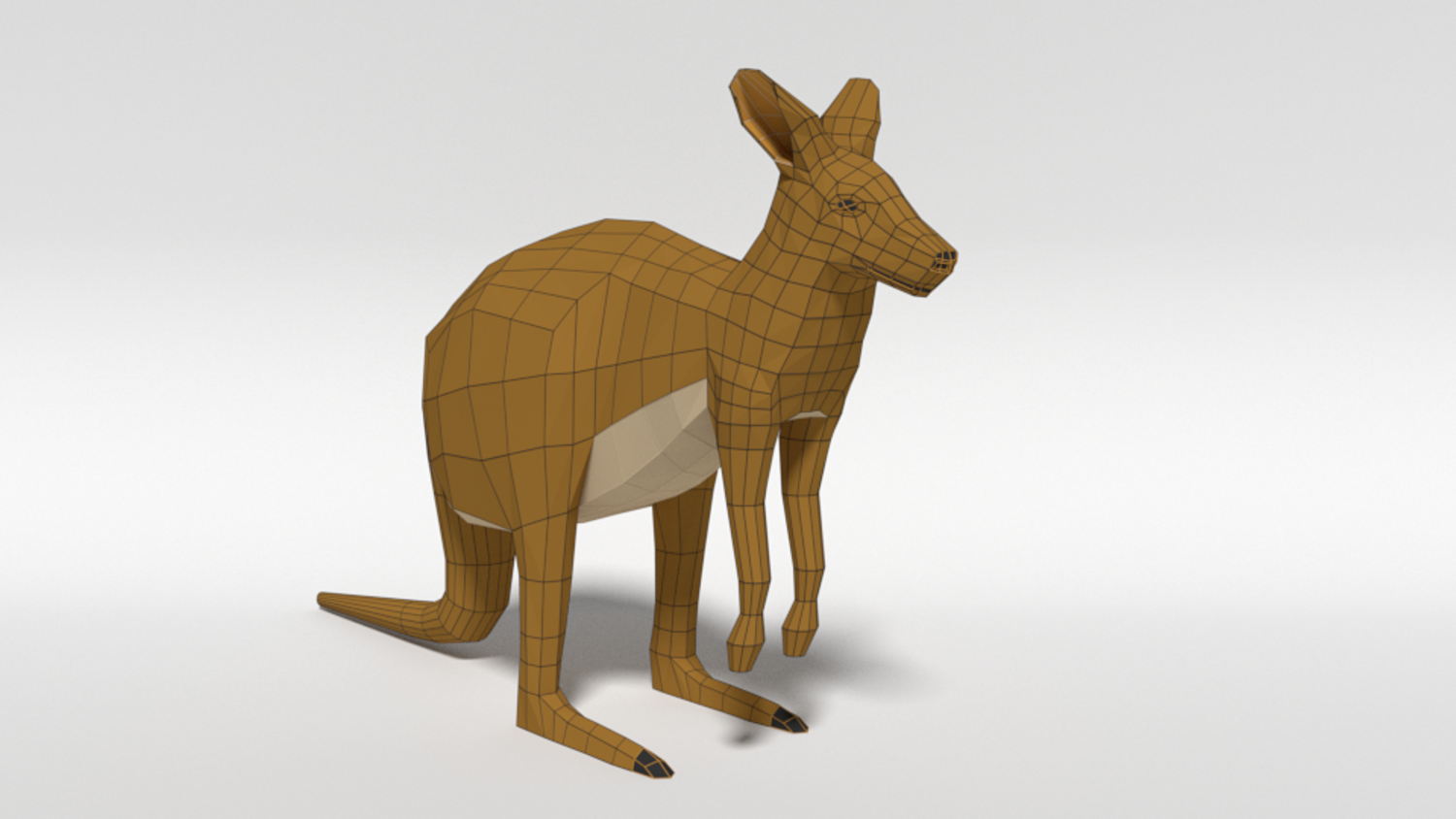 This is a low poly 3d model of a kangaroo. The low poly kangaroo was modelled and prepared for low-poly style renderings, background, general CG visualization presented as a mesh with quads.