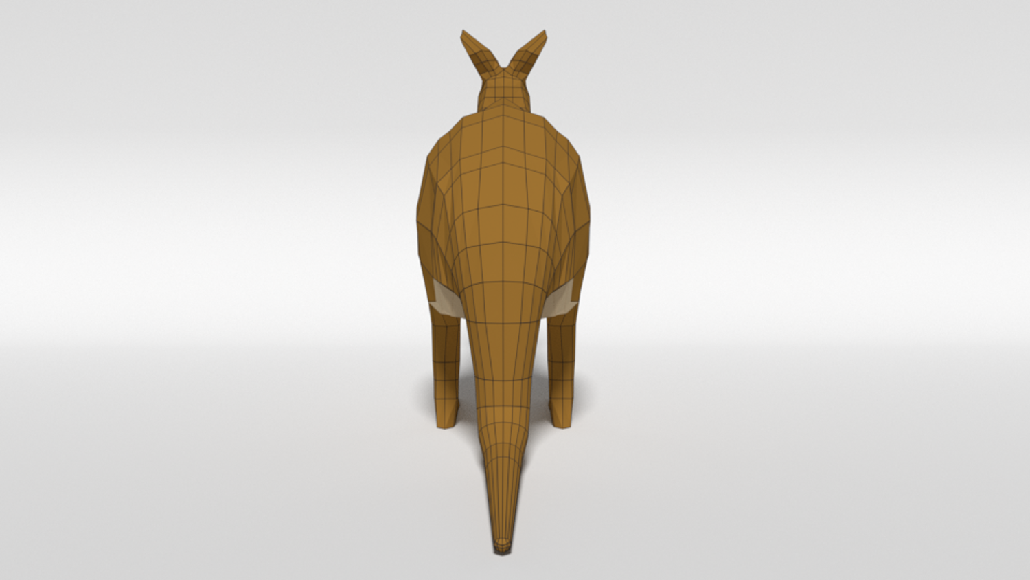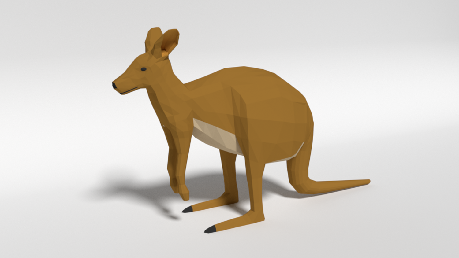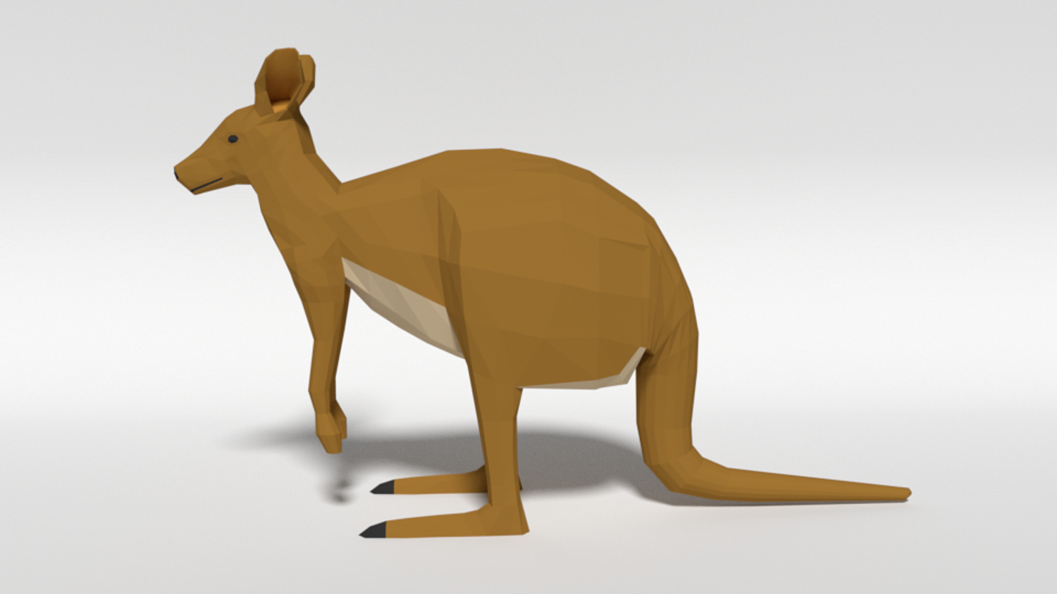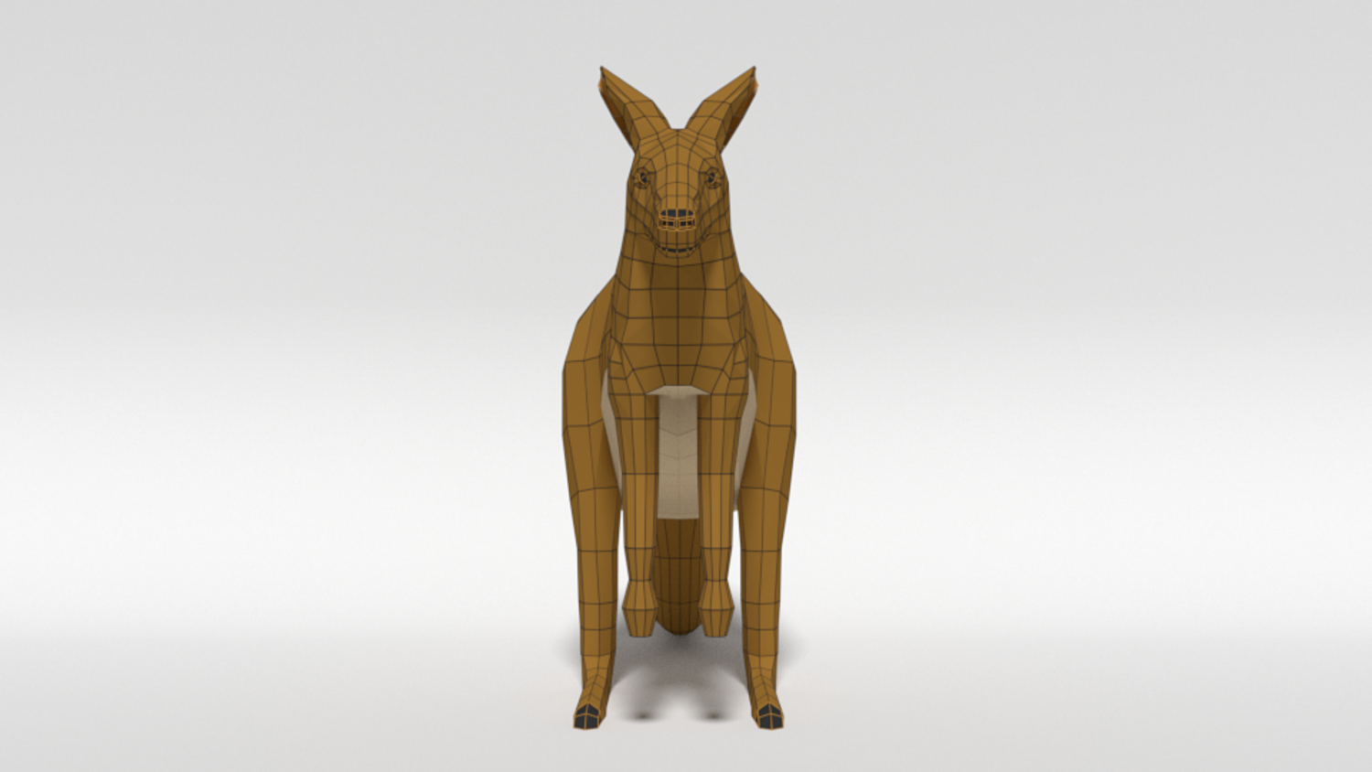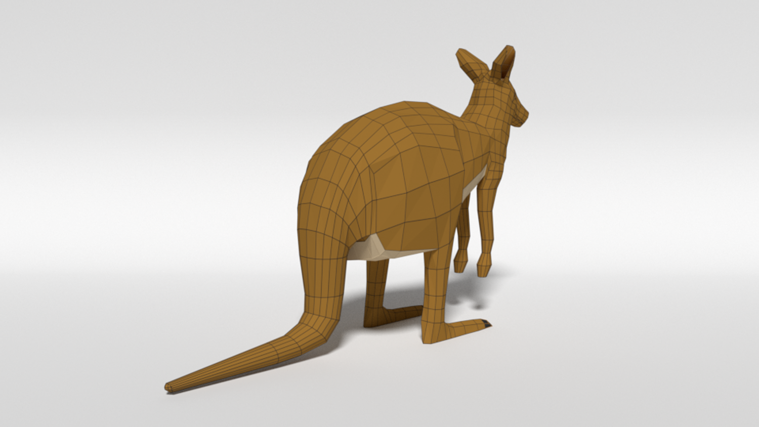 This is a low poly 3d model of a kangaroo. The low poly kangaroo was modelled and prepared for low-poly style renderings, background, general CG visualization presented as a mesh with quads.