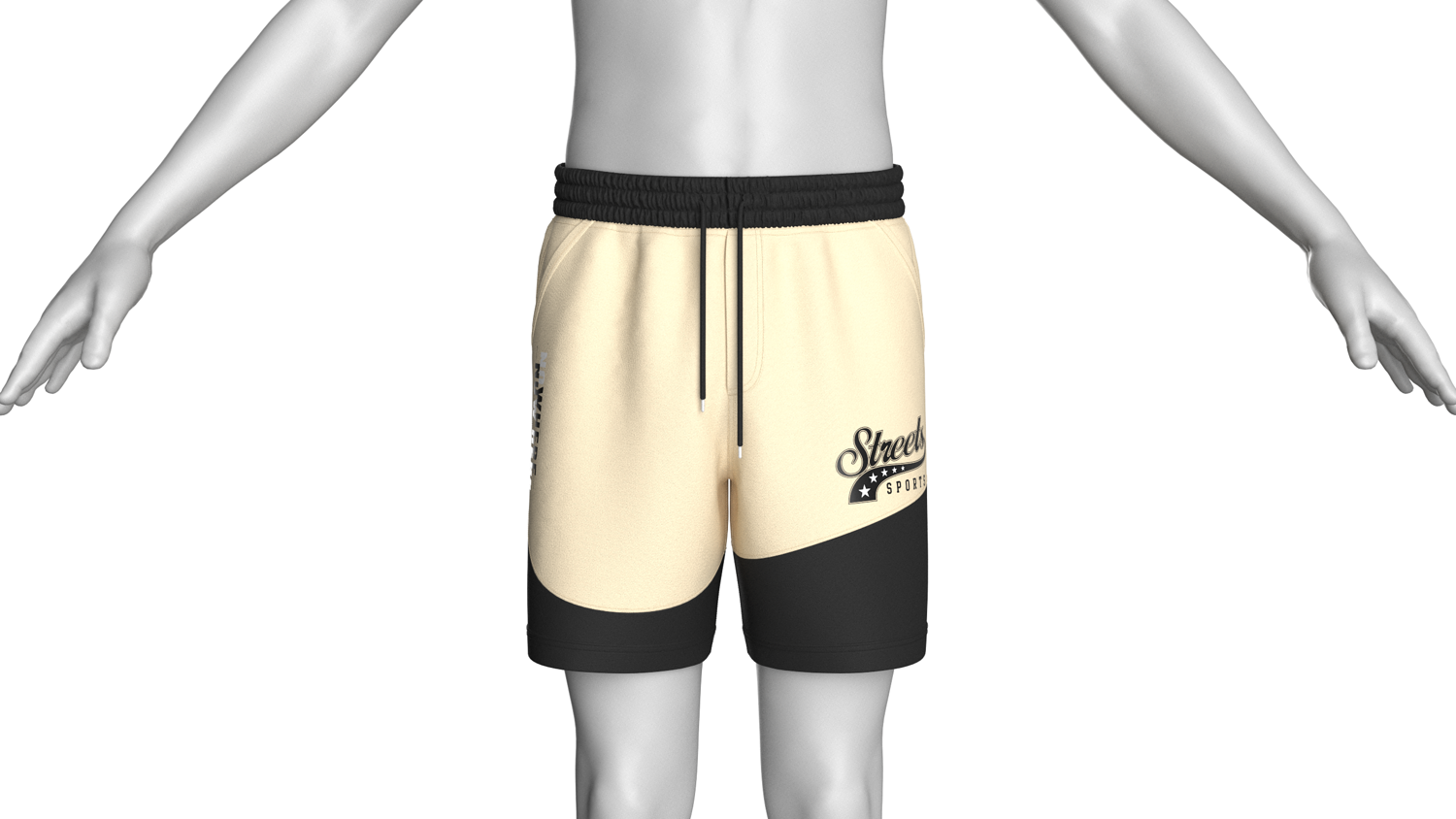 Men Curve Panel Color Block Shorts With Elastic Waist | Marvelous / Clo3d / obj / fbx