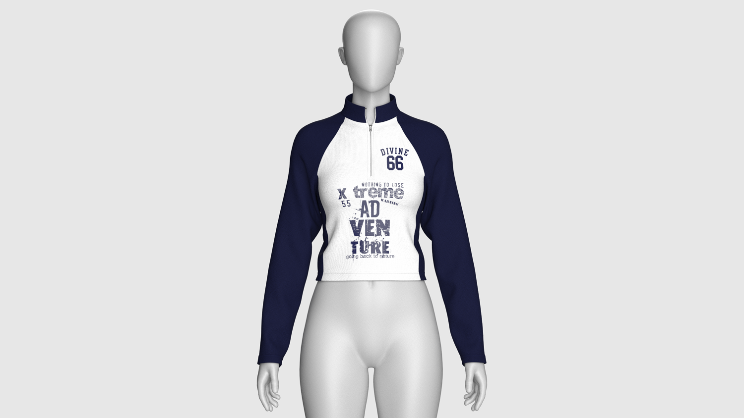 Girls Raglan Half Zip Printed Jacket | Marvelous / Clo3d / obj / fbx