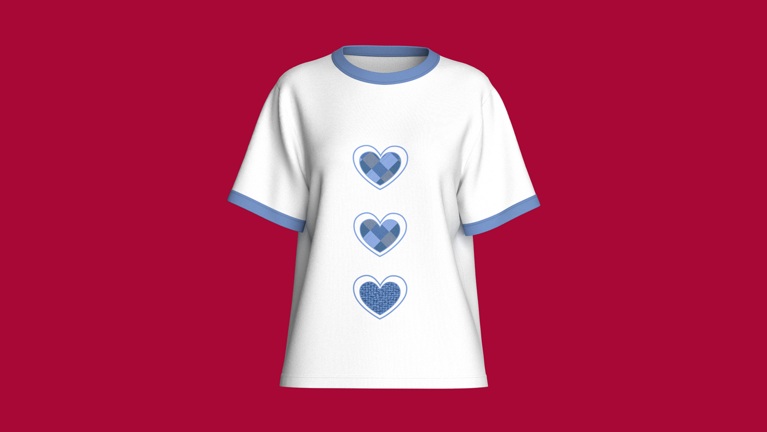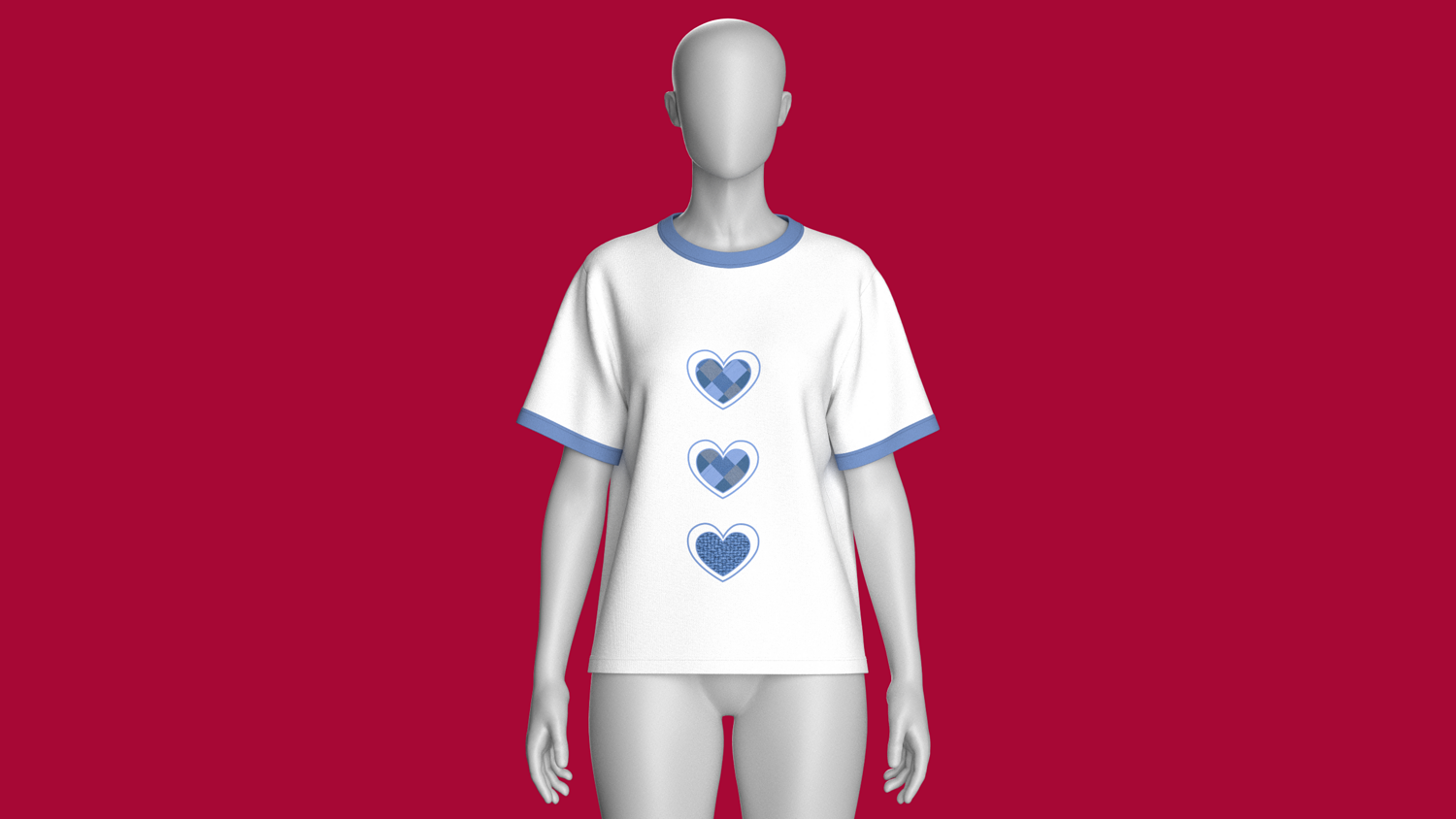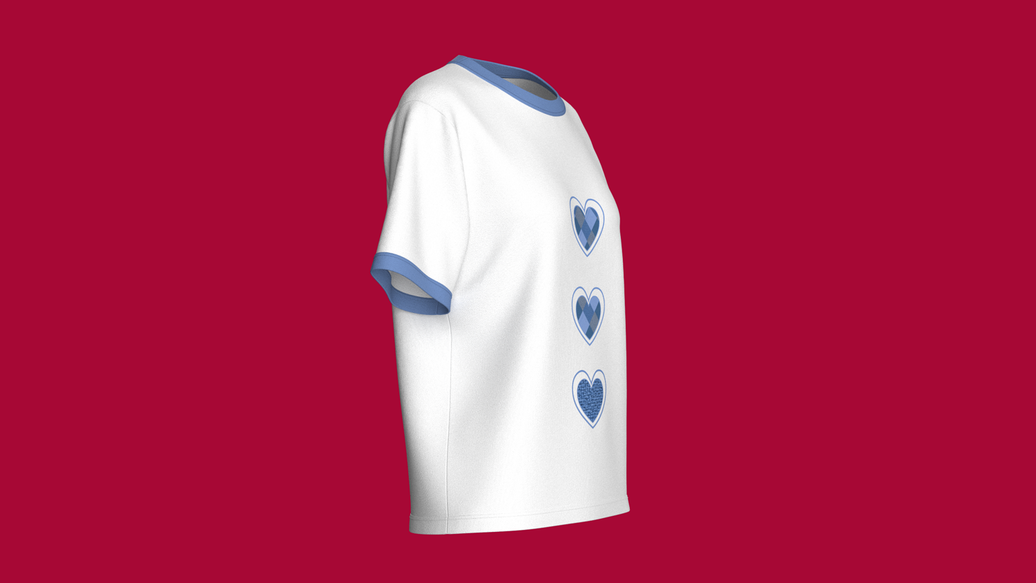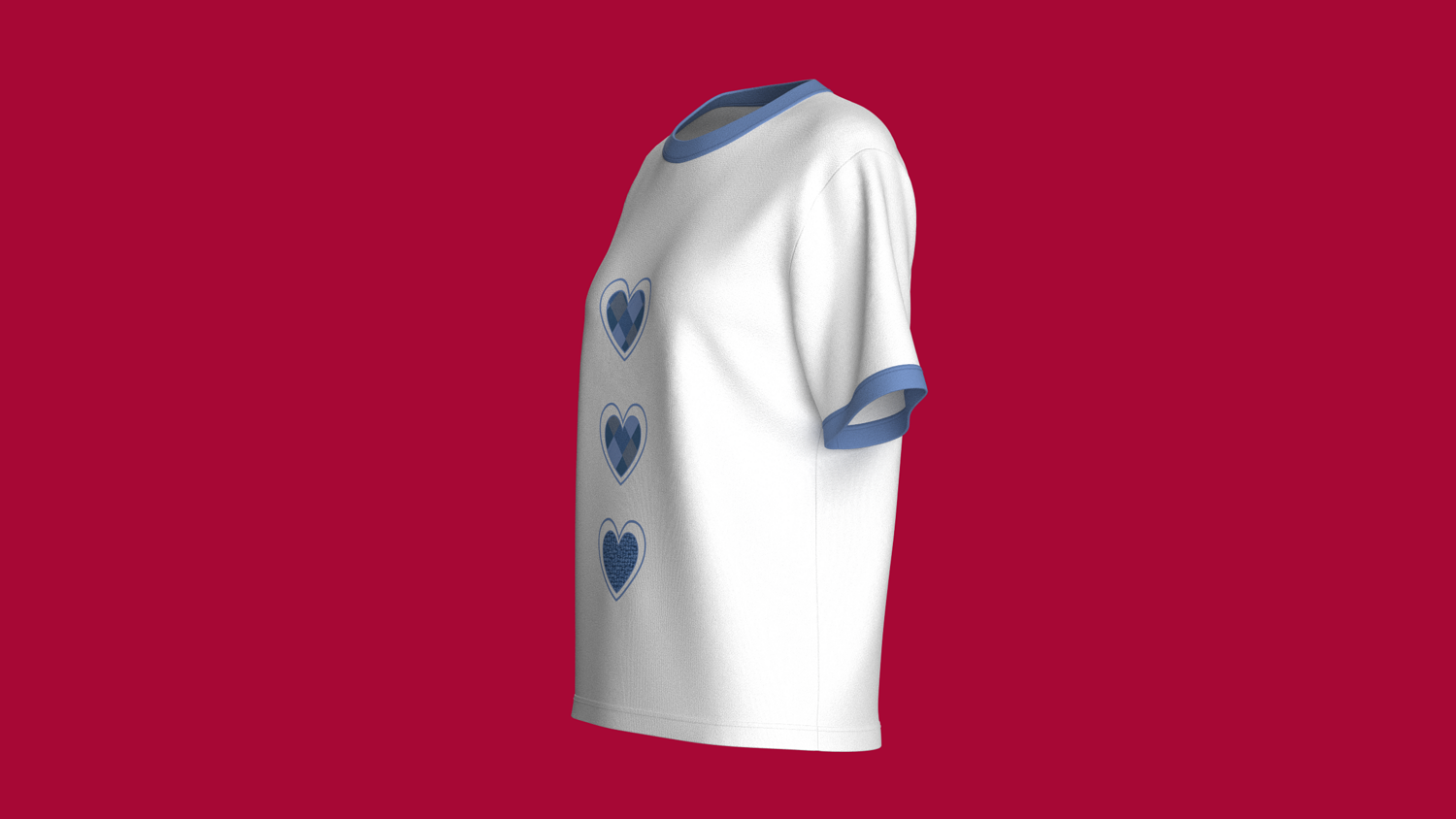 Girls Three Heart Shaped Cotton T-Shirt | Marvelous / Clo3d / obj / fbx