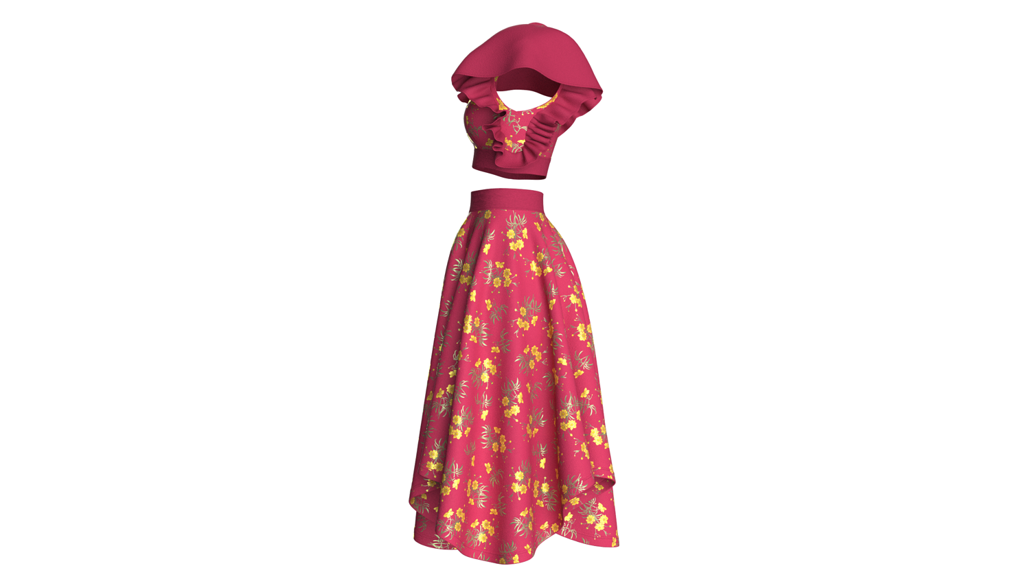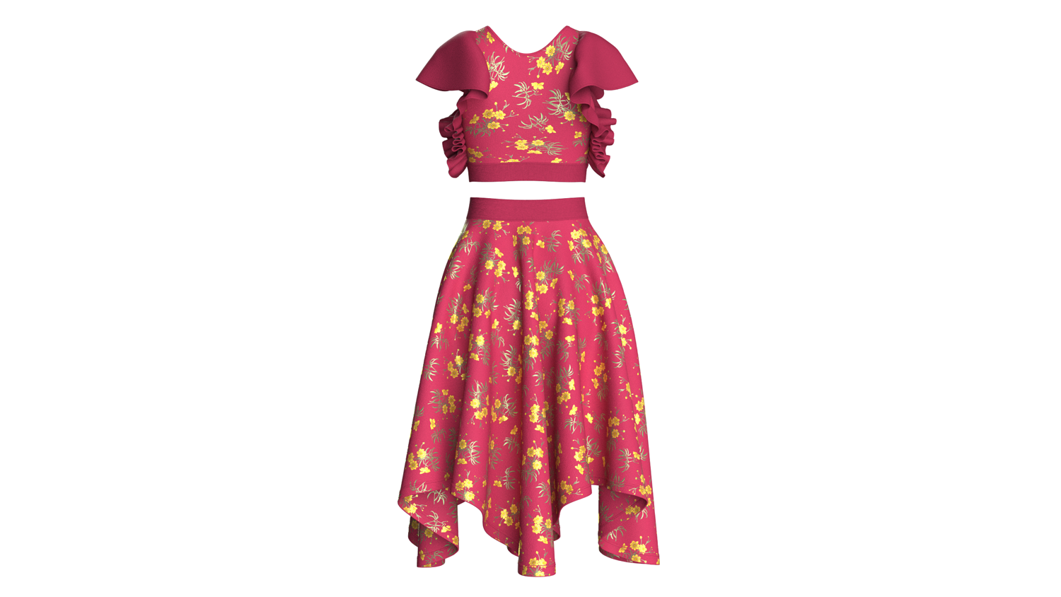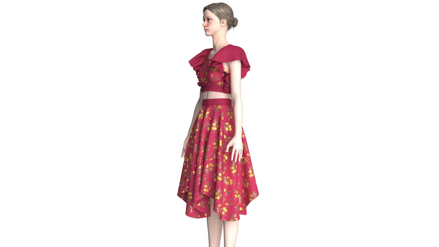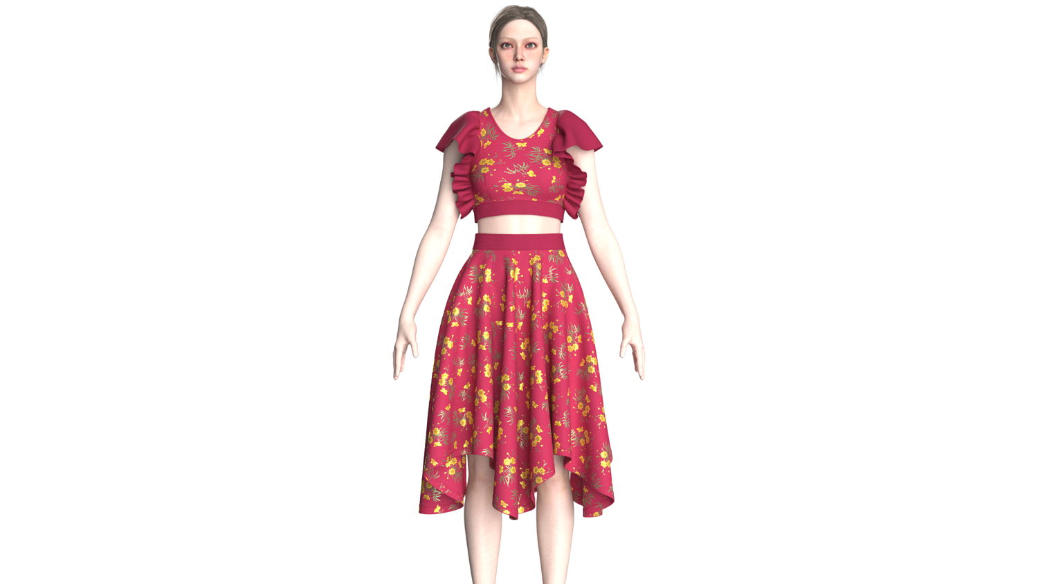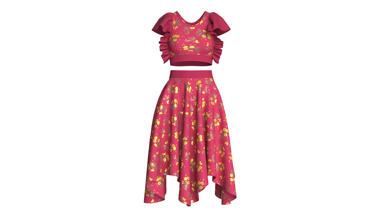 Girls Crop Top With Skirt V5 | Marvelous / Clo3d / obj / fbx