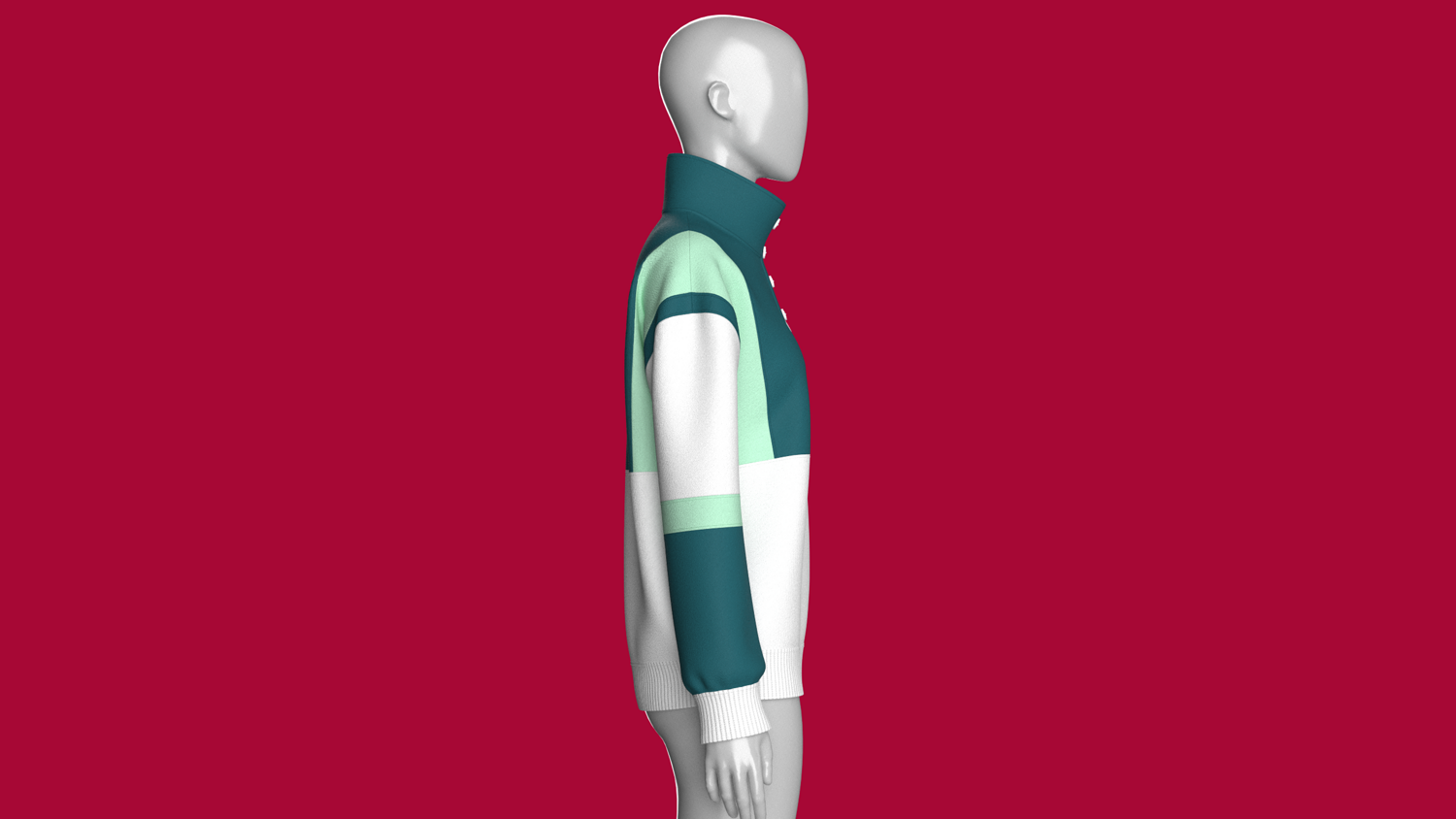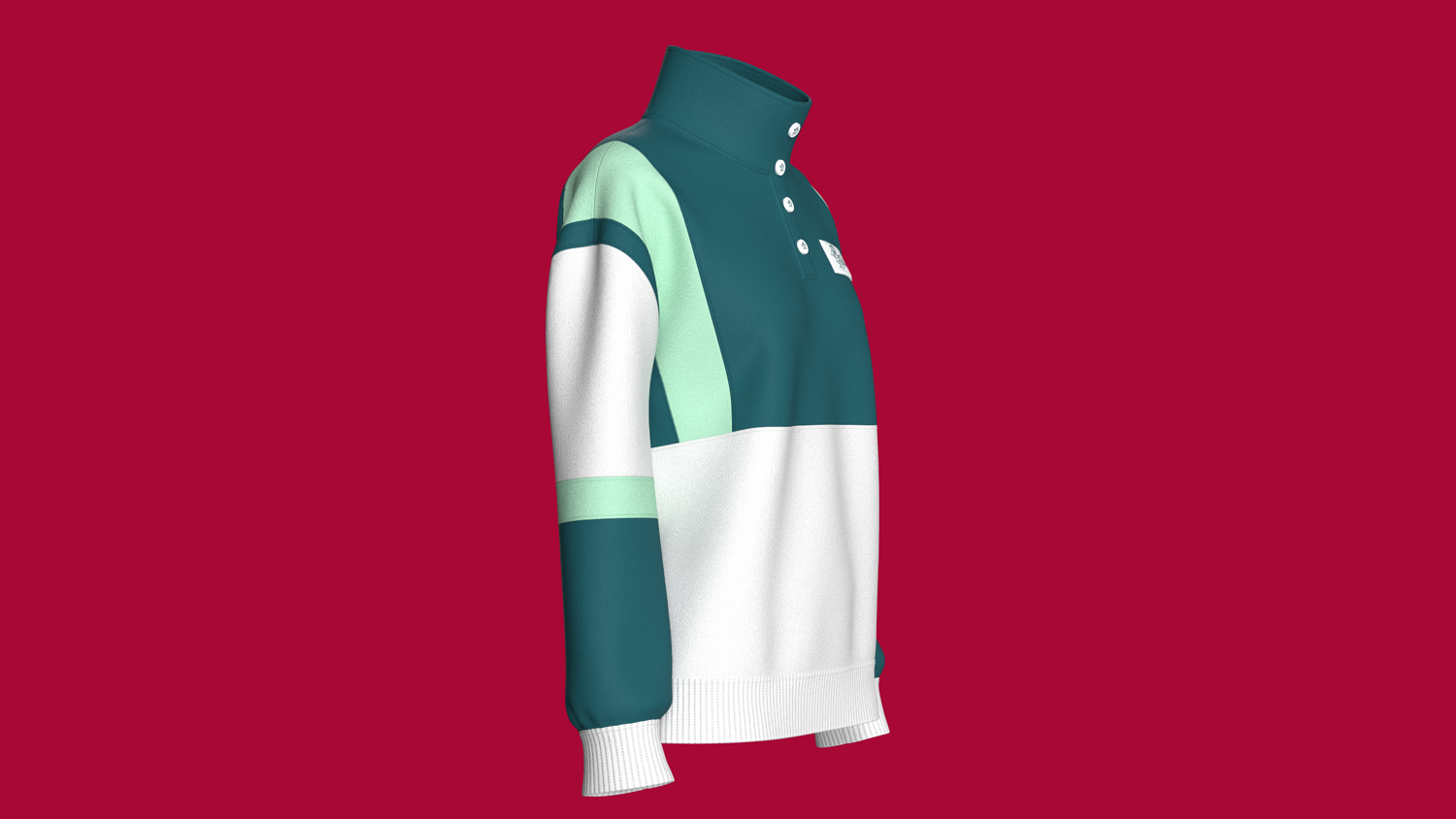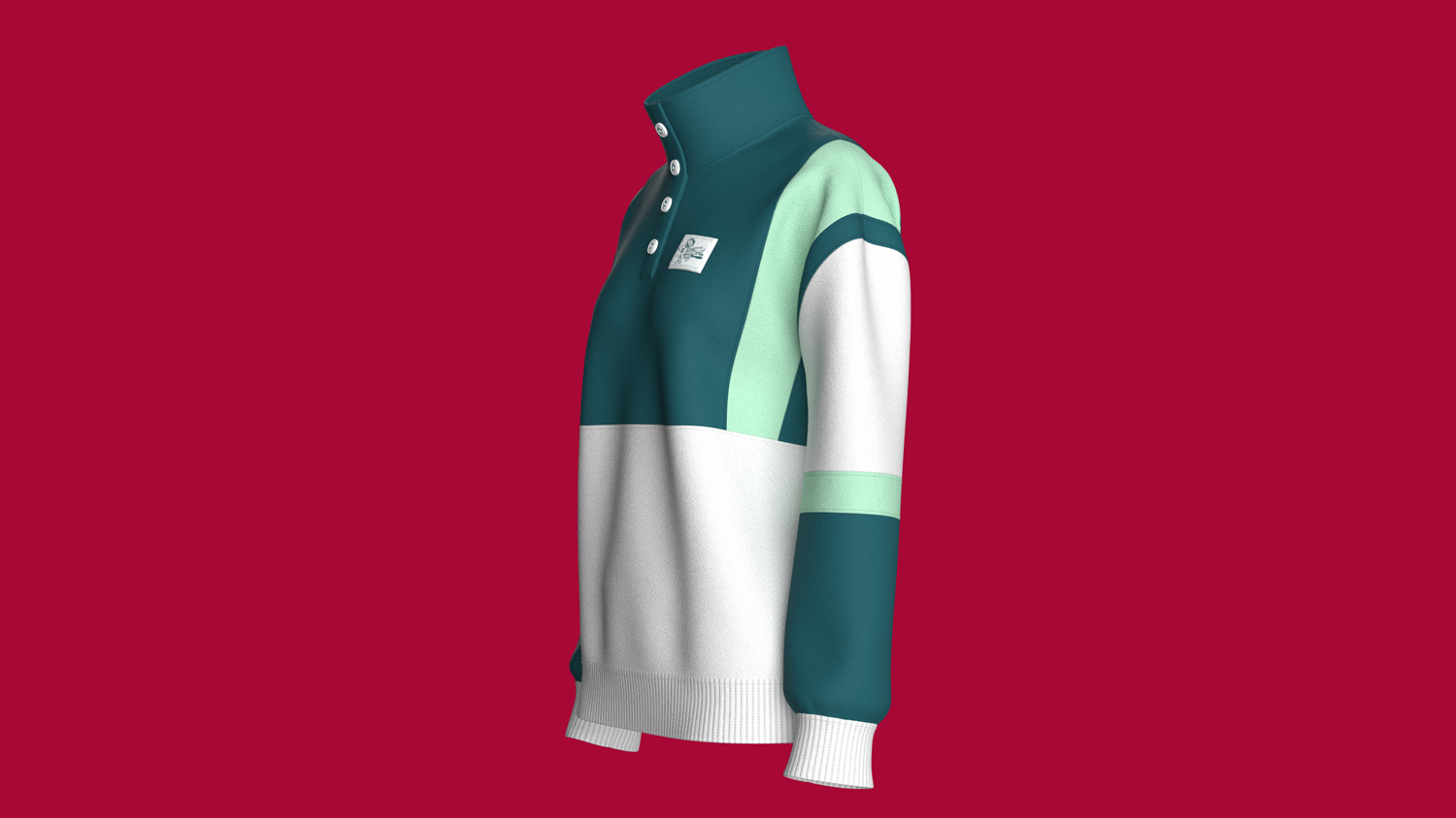 Girls Color Block Button-Up High Neck Sweatshirt | Marvelous / Clo3d / obj / fbx
