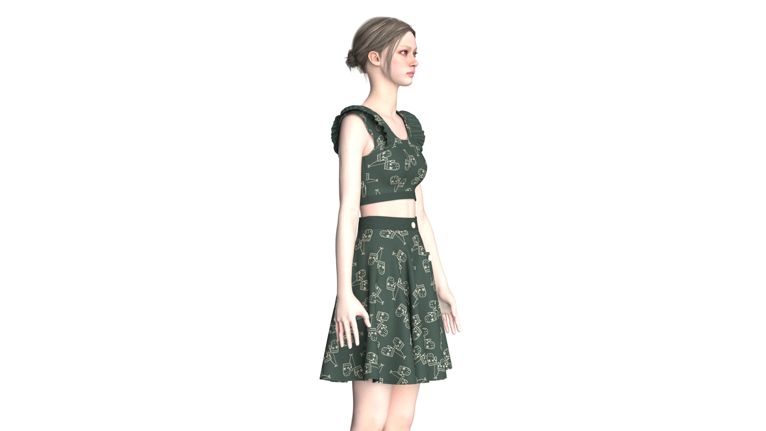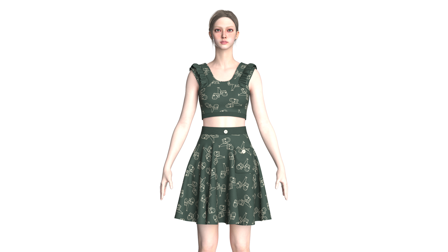 Girls Crop Top With Skirt V4 | Marvelous / Clo3d / obj / fbx