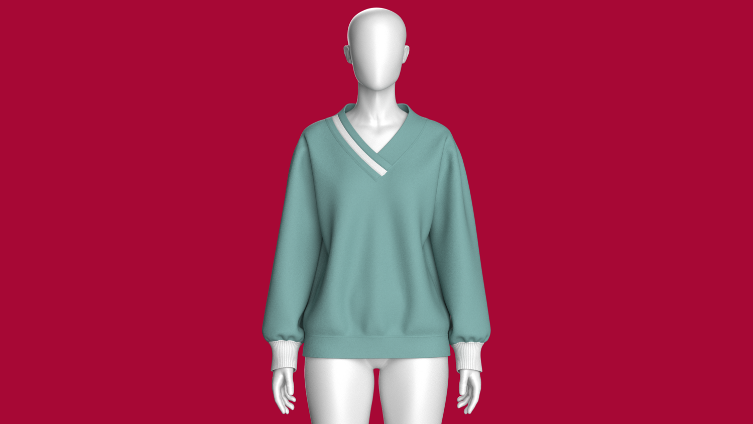 Girls Long V-Neck Sweatshirt With Ribbed Cuff | Marvelous / Clo3d / obj / fbx