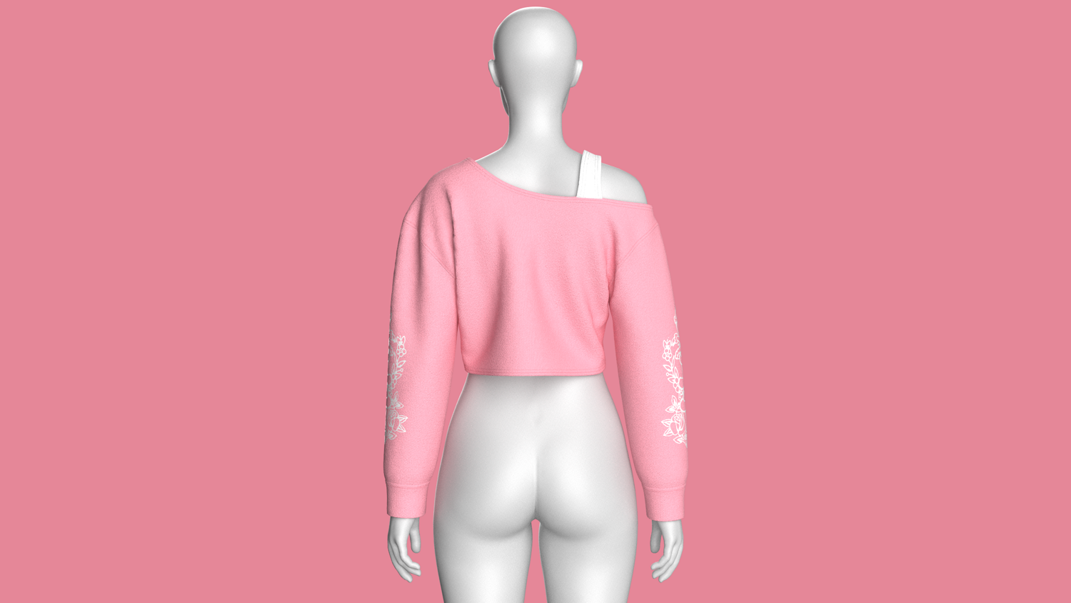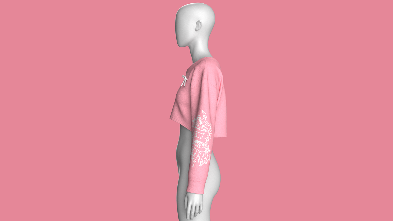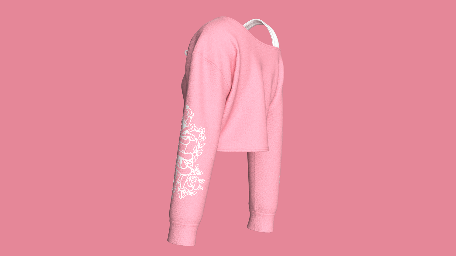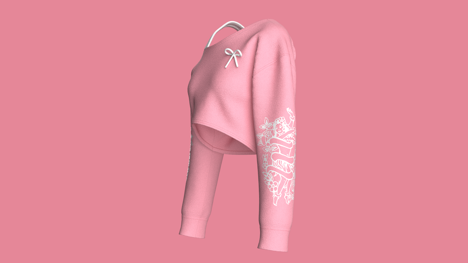 Girls Long Neck Crop Printed Sweatshirt | Marvelous / Clo3d / obj / fbx