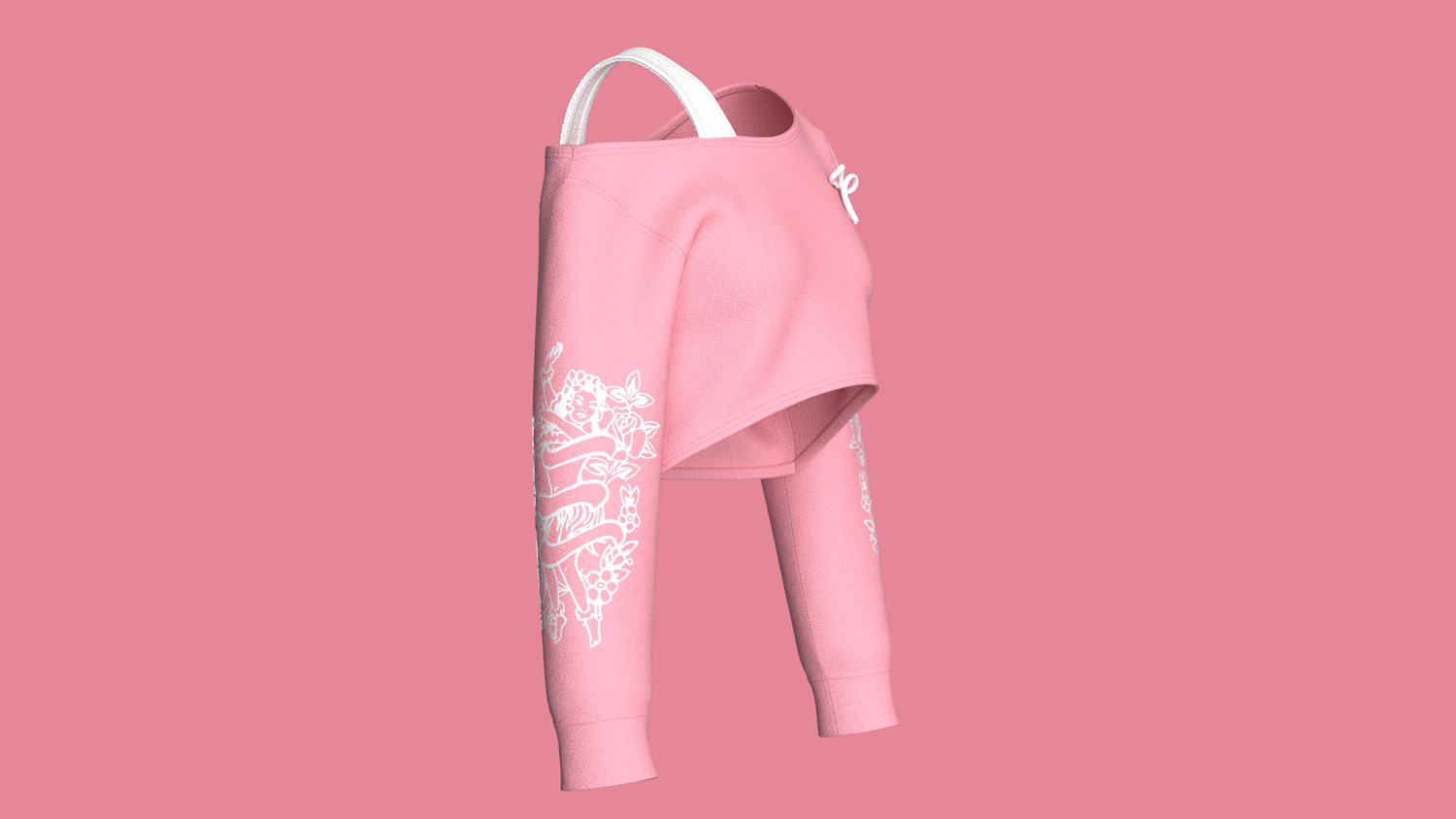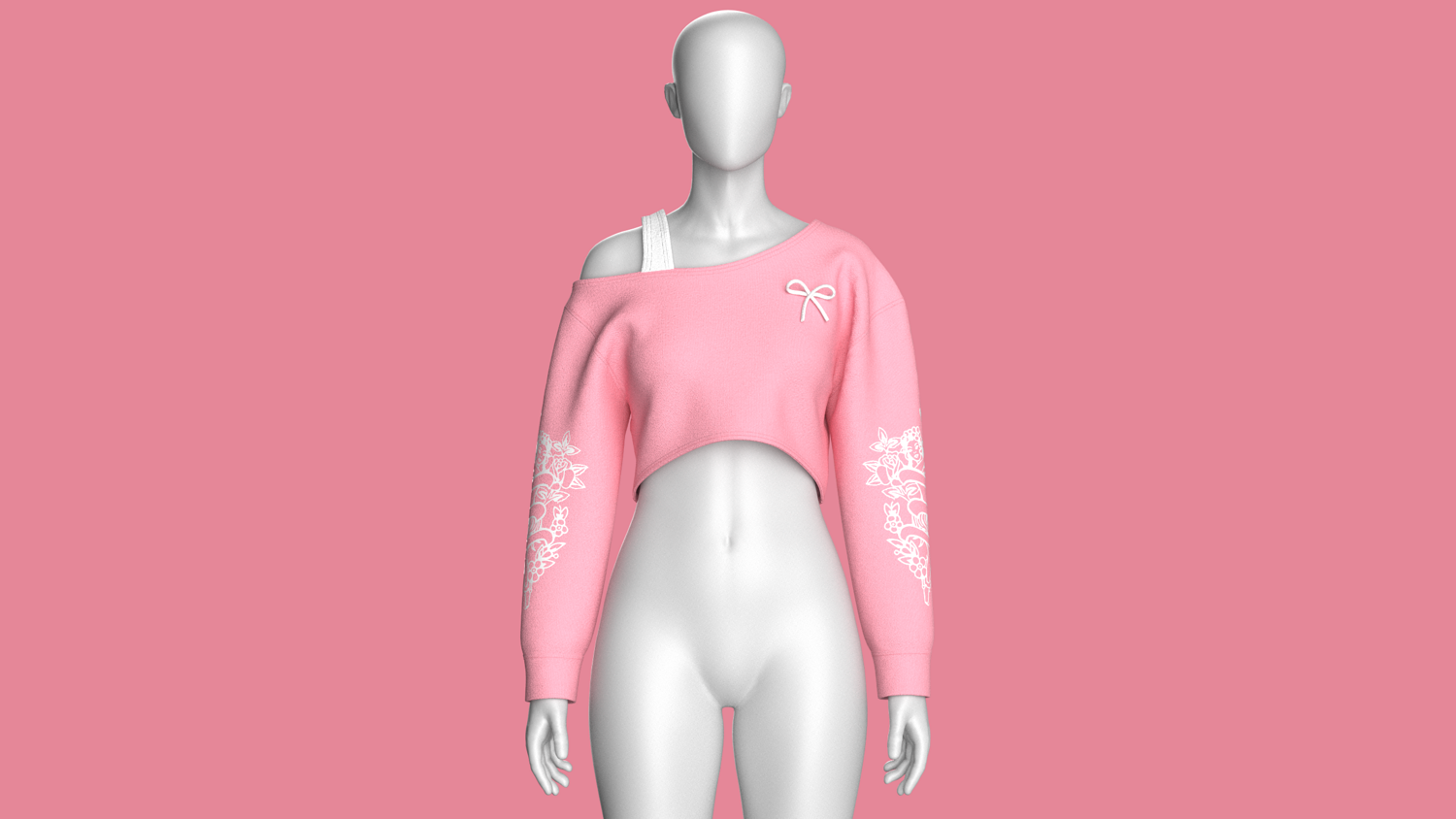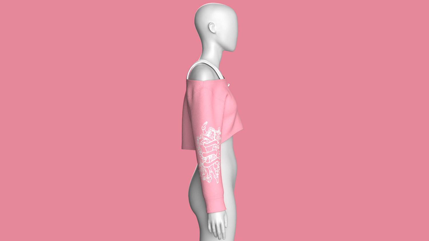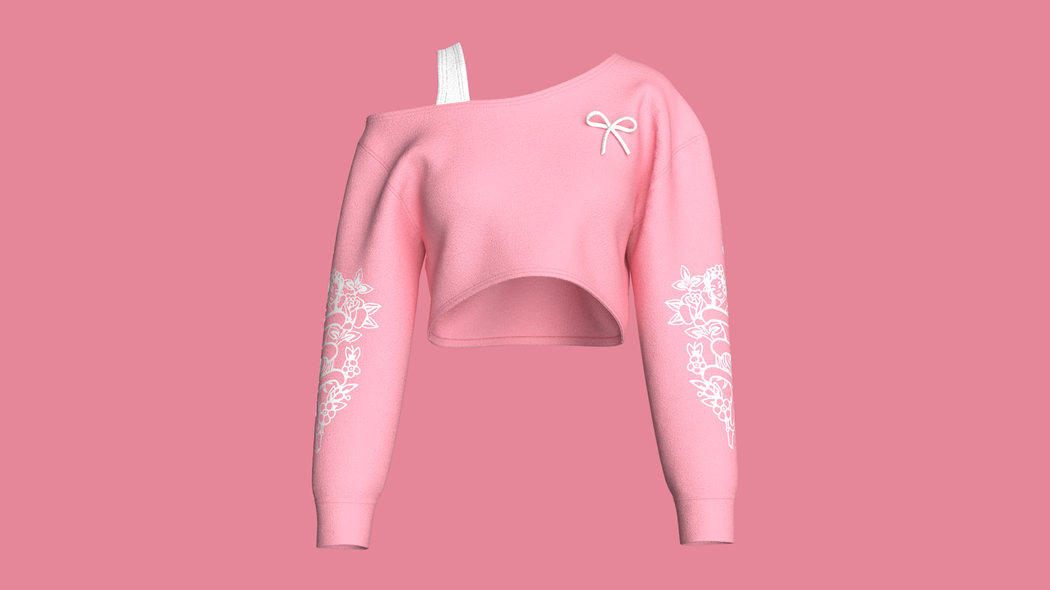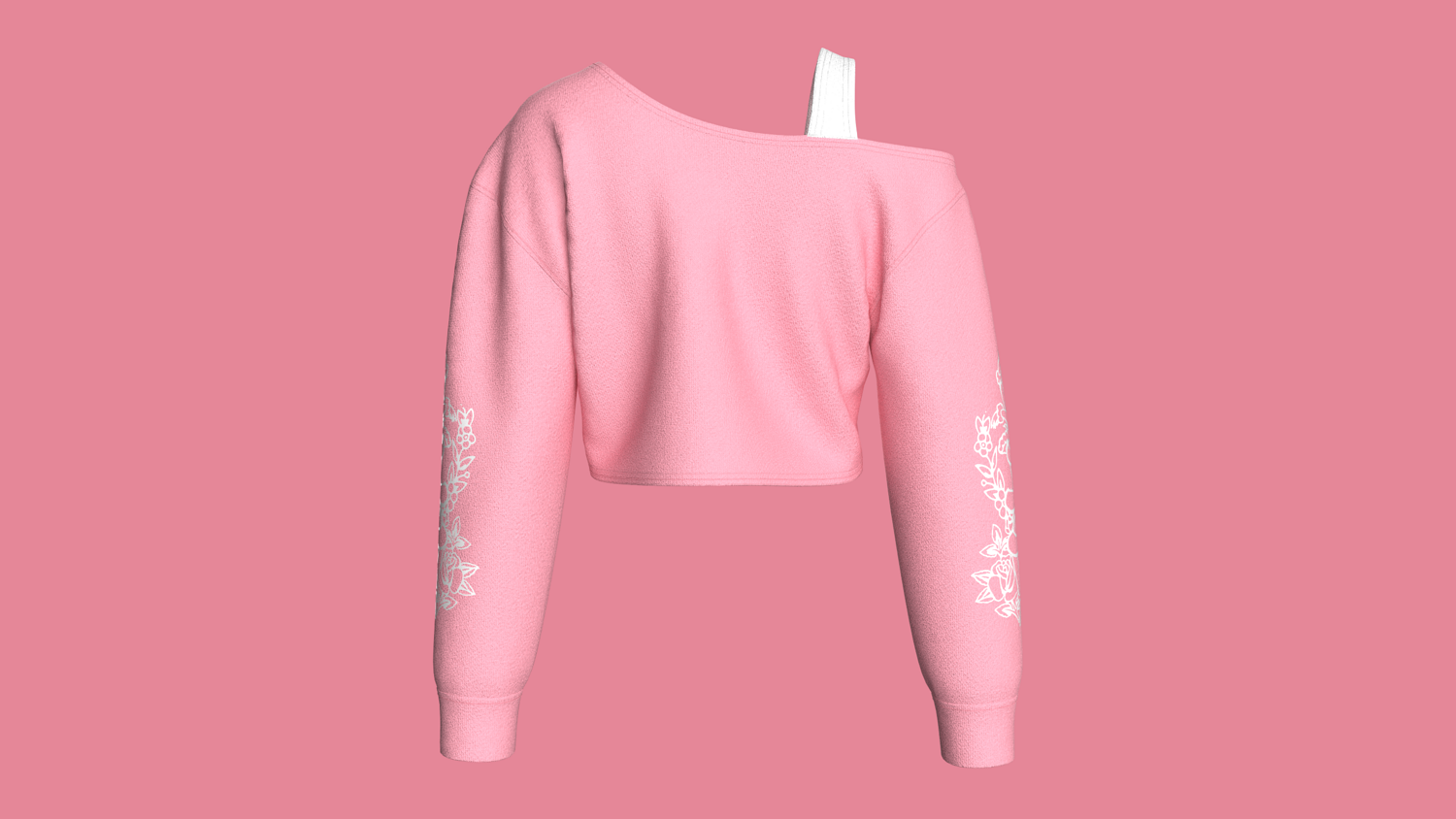Girls Long Neck Crop Printed Sweatshirt | Marvelous / Clo3d / obj / fbx