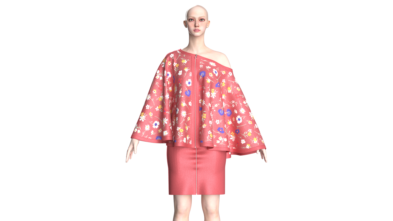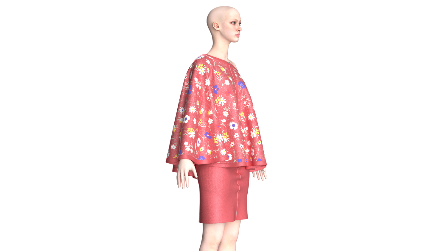 Ladies Printed Cape Tops With Skirt - Outfit | Marvelous / Clo3d / obj / fbx