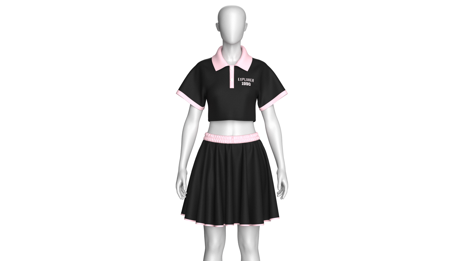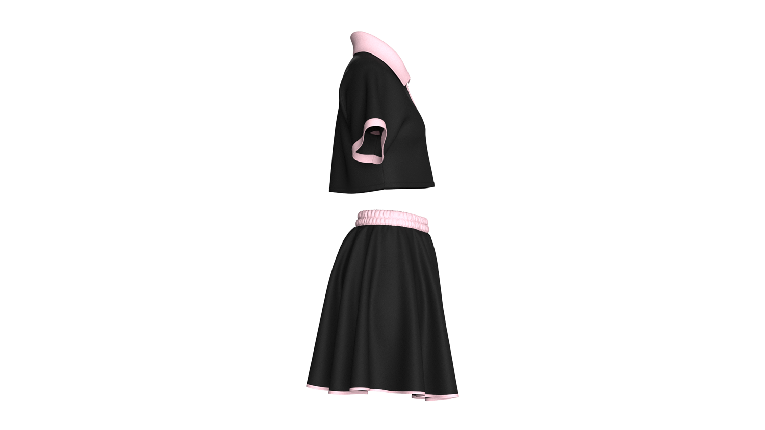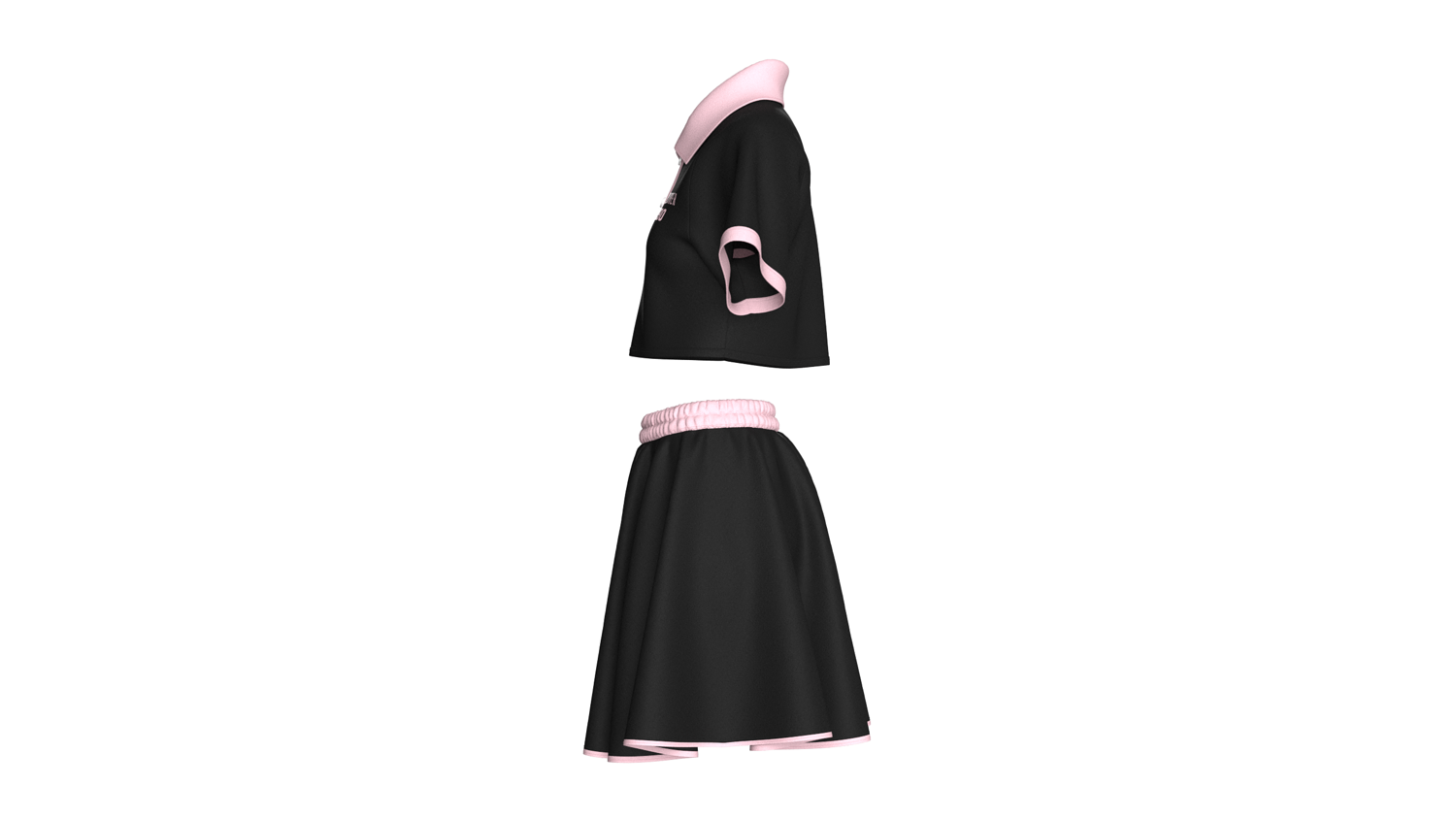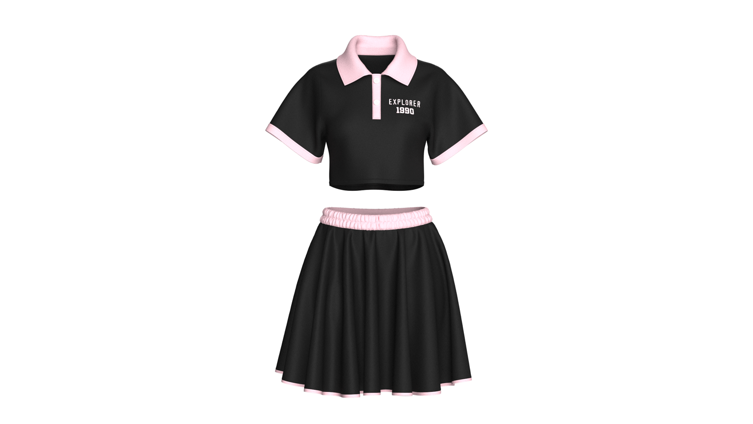 Girls Crop Polo Shirt With Skirt - Outfit | Marvelous / Clo3d / obj / fbx