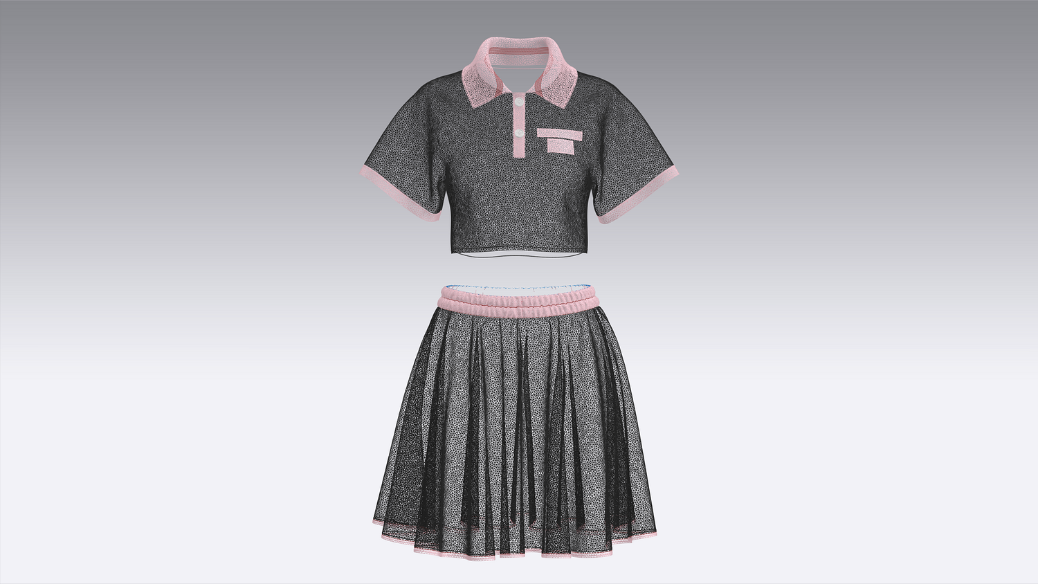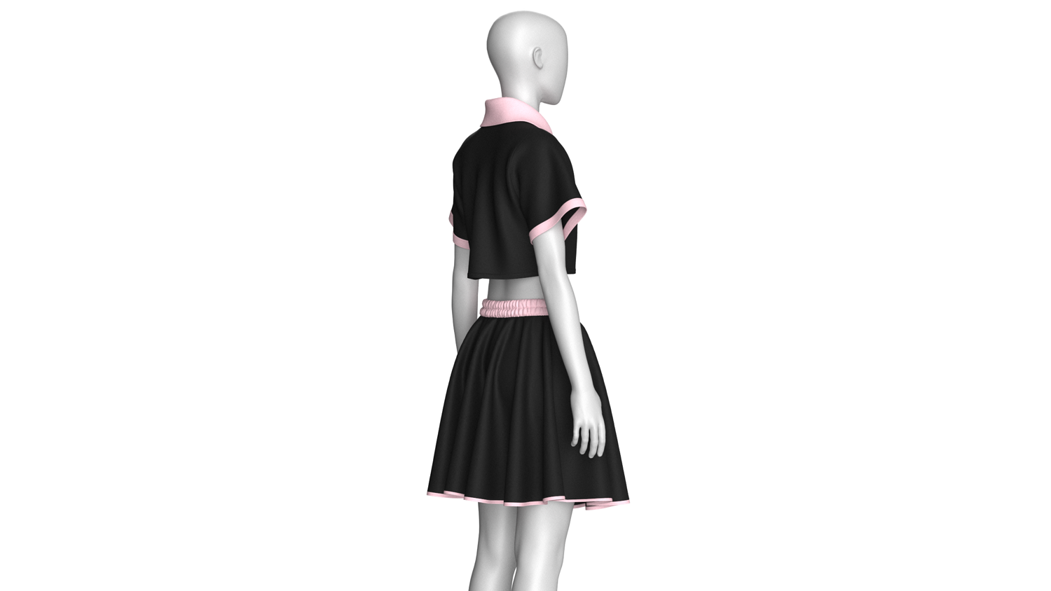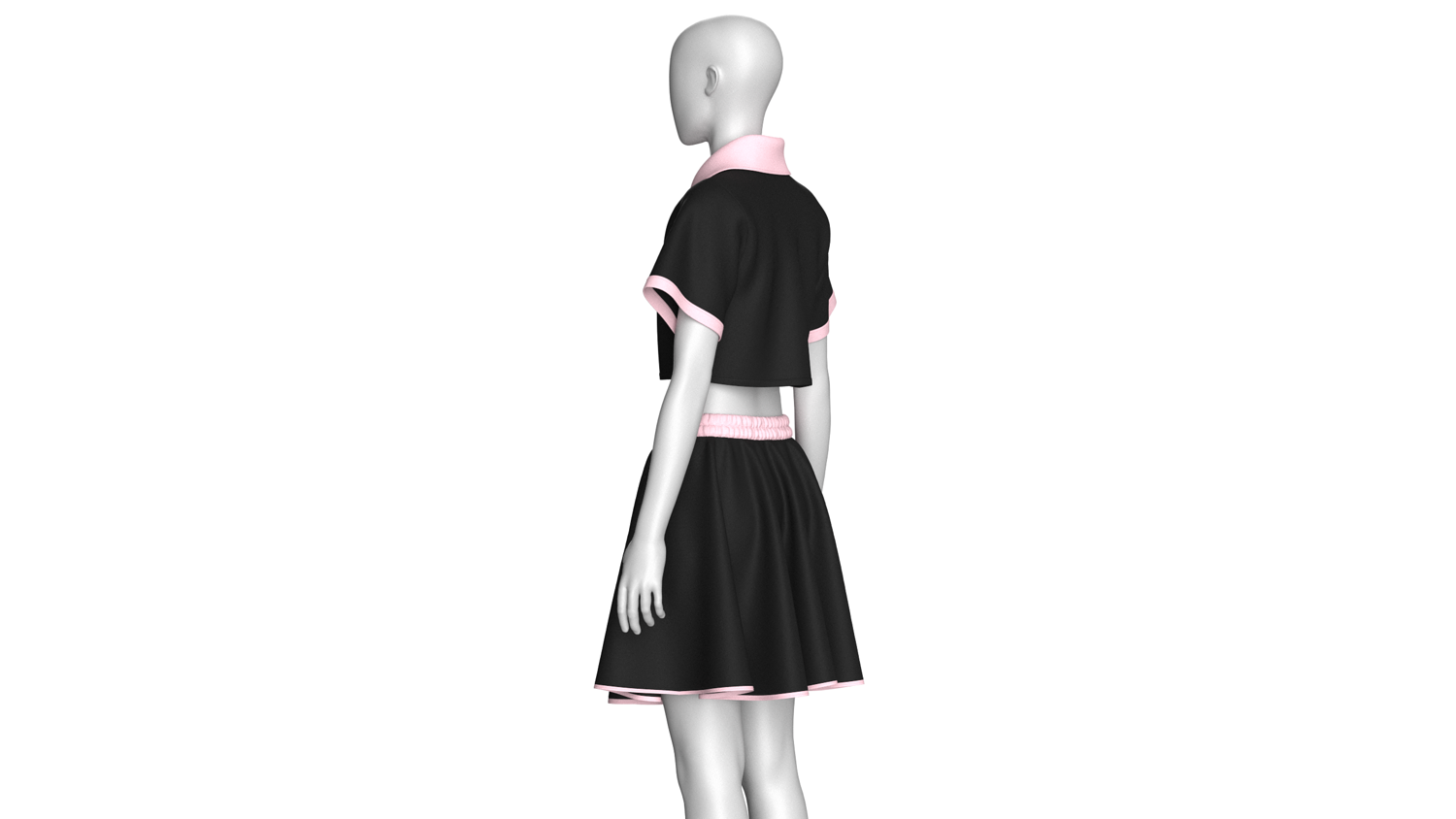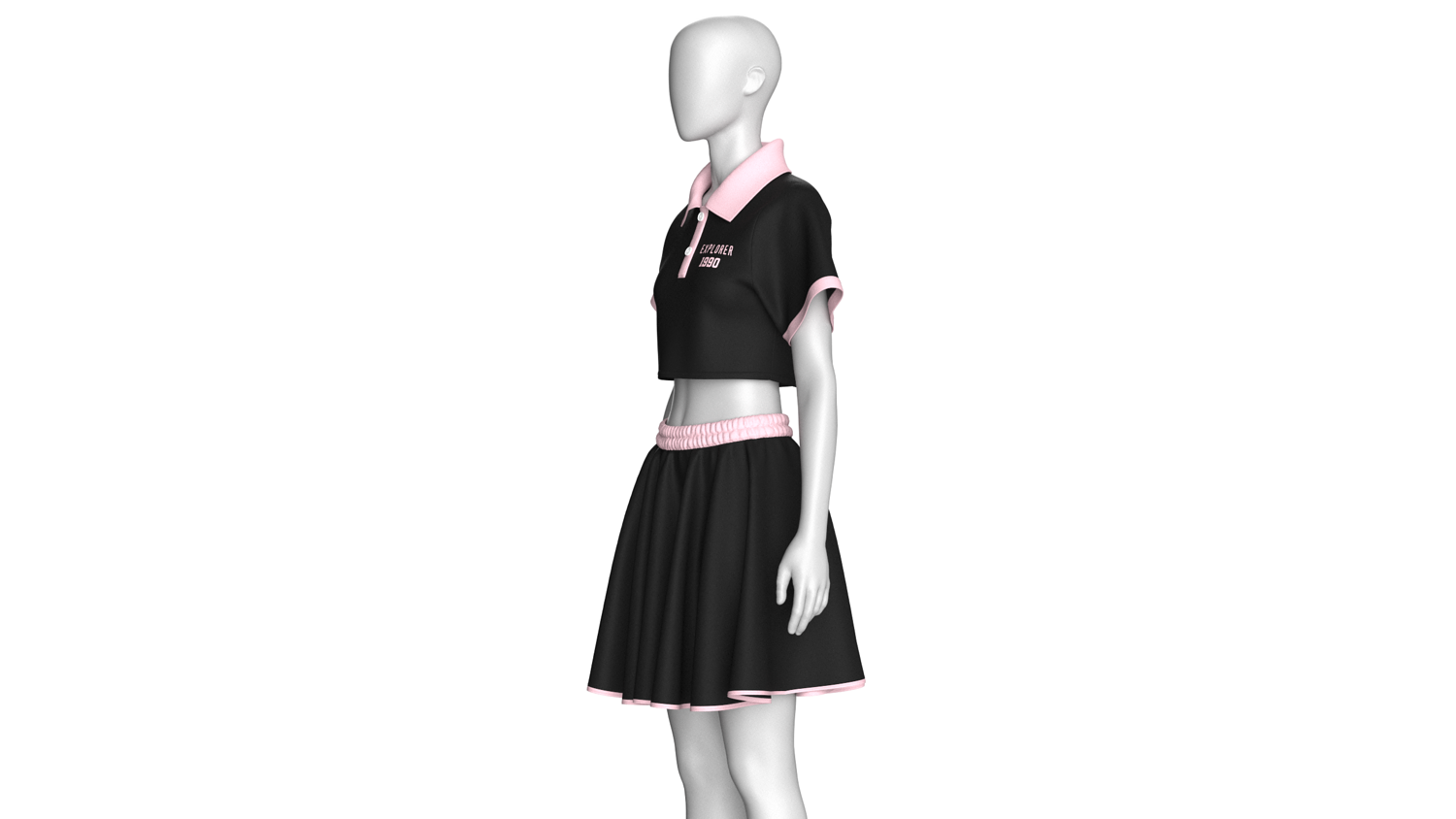 Girls Crop Polo Shirt With Skirt - Outfit | Marvelous / Clo3d / obj / fbx