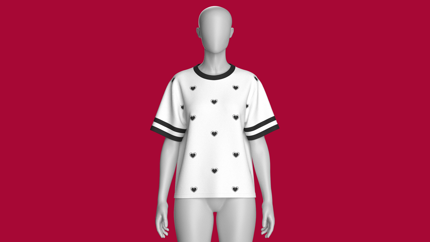 Girls Allover Heart Print T-Shirt | Marvelous / Clo3d / obj / fbx