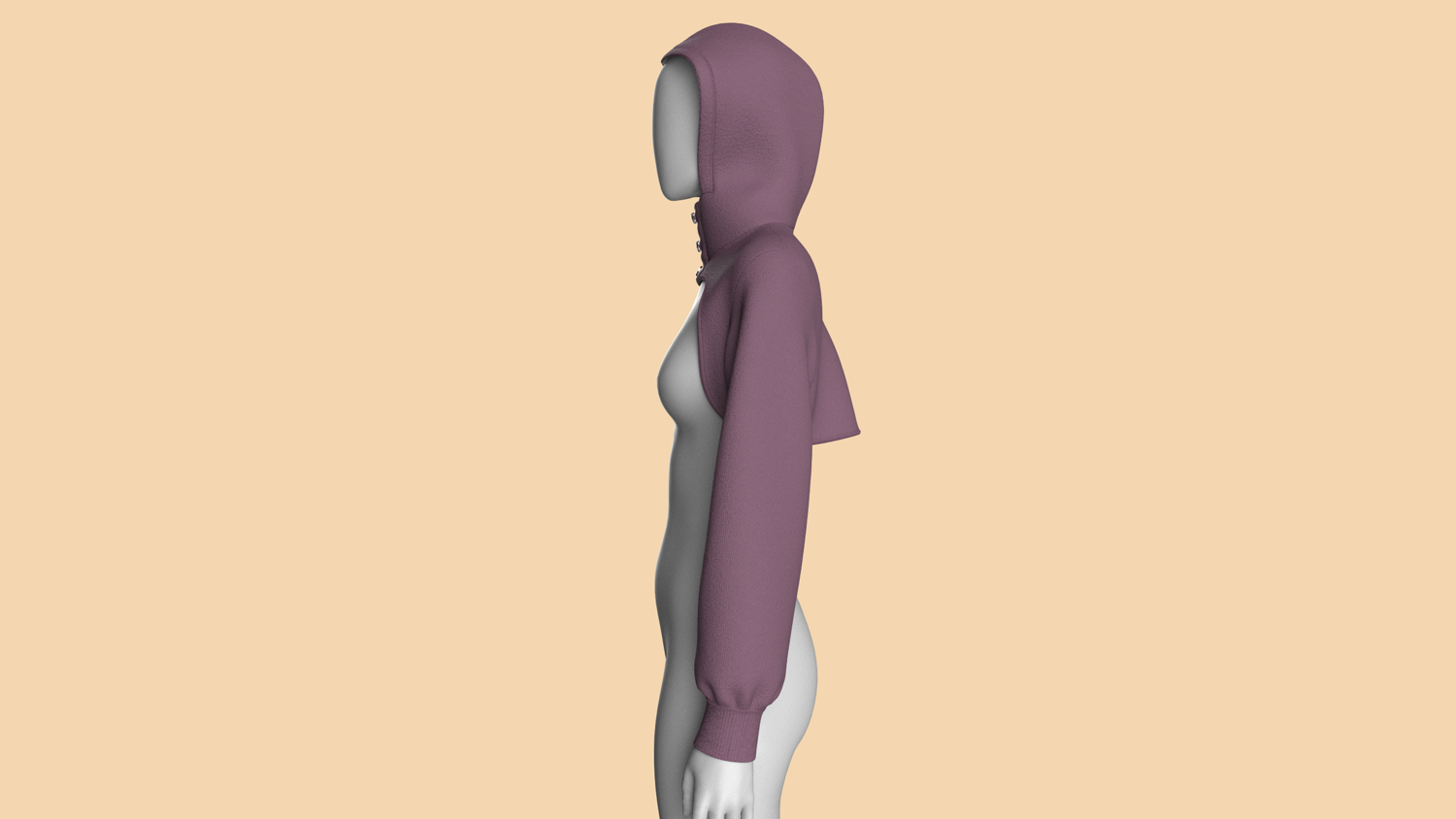 Girls Open Front Cropped Hoodie | Marvelous / Clo3d / obj / fbx