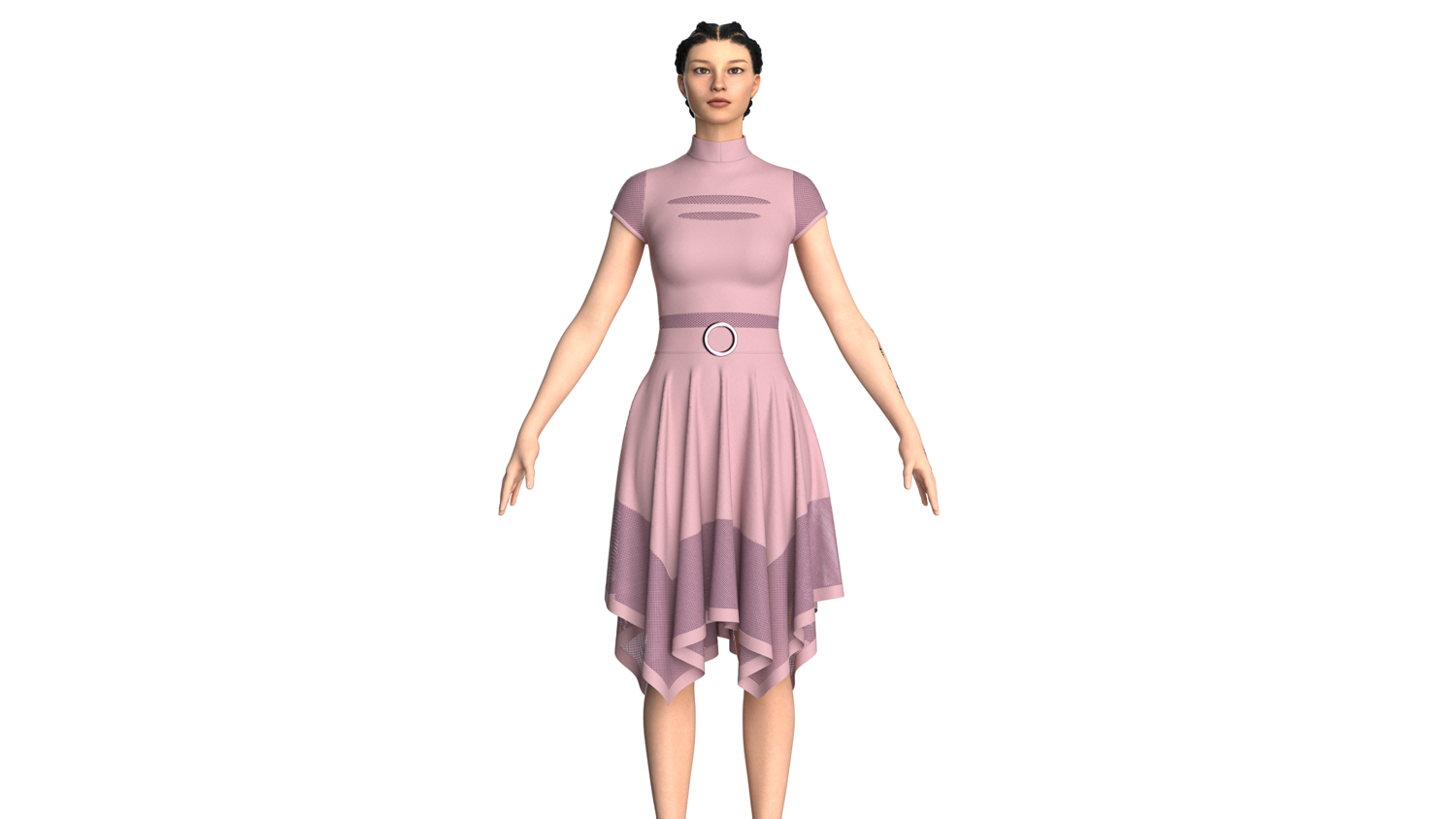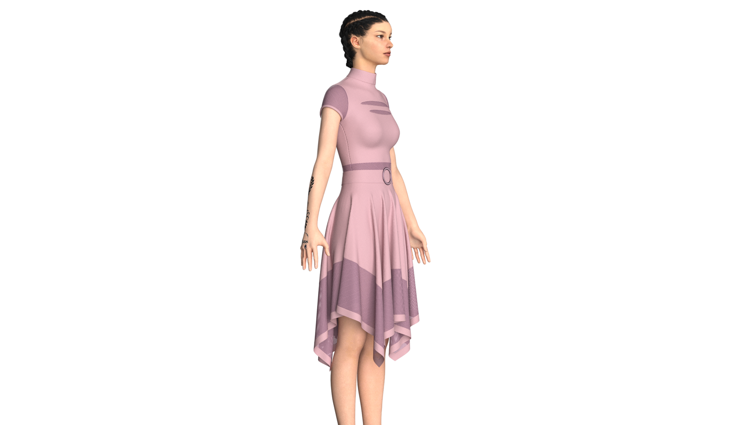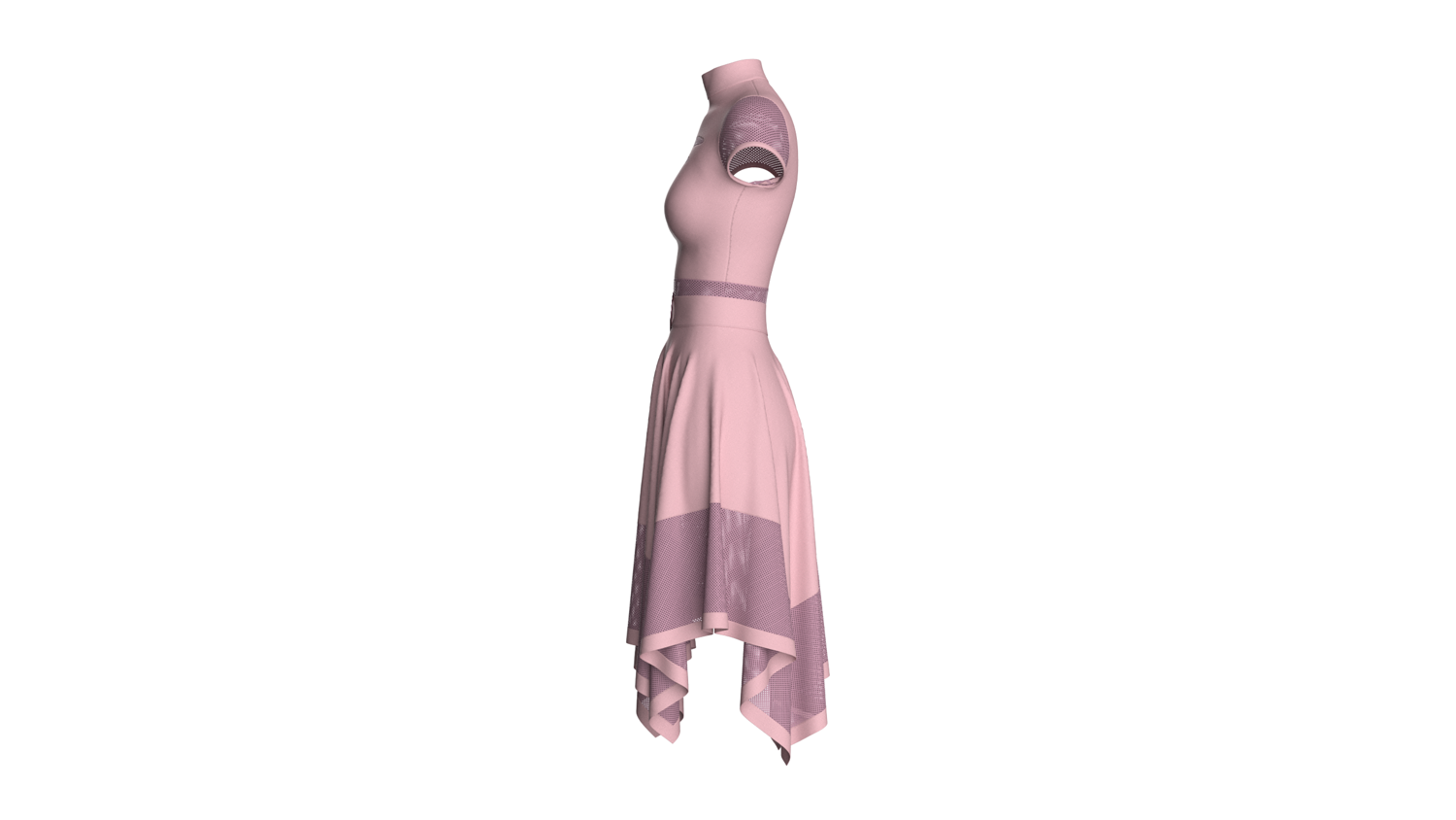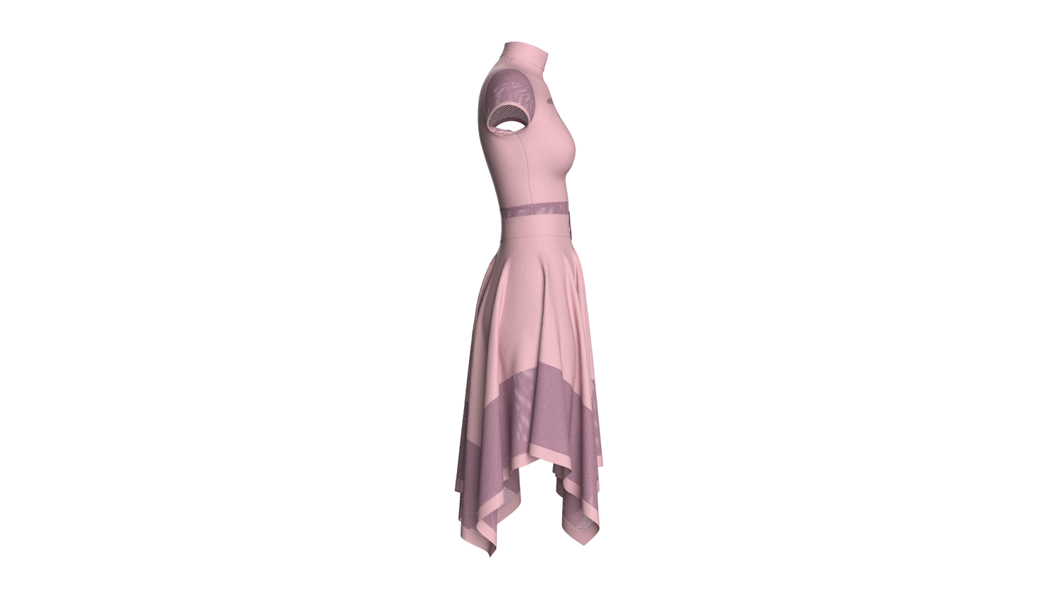 Women High Neck Mesh Panel Dress - Outfit | Marvelous / Clo3d / obj / fbx