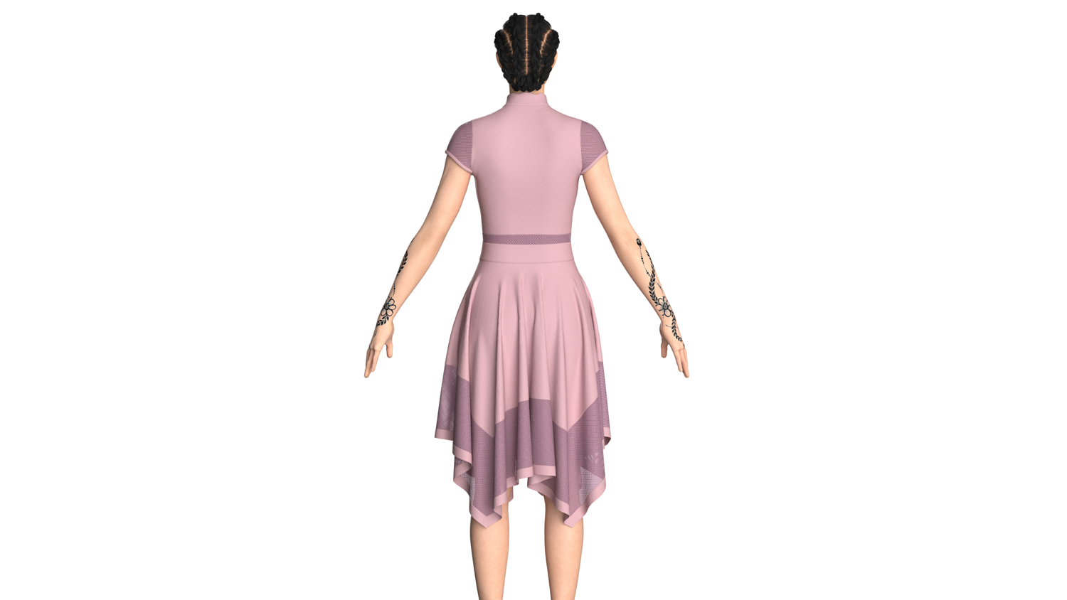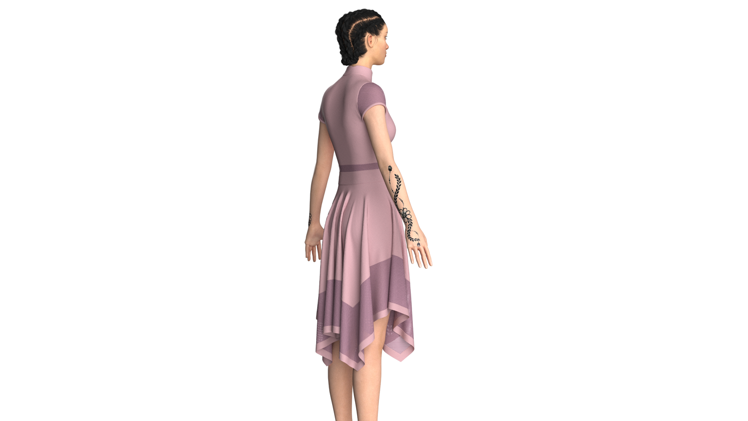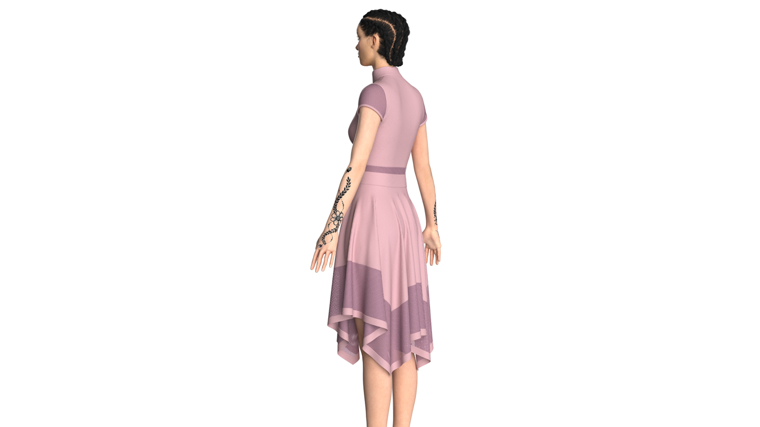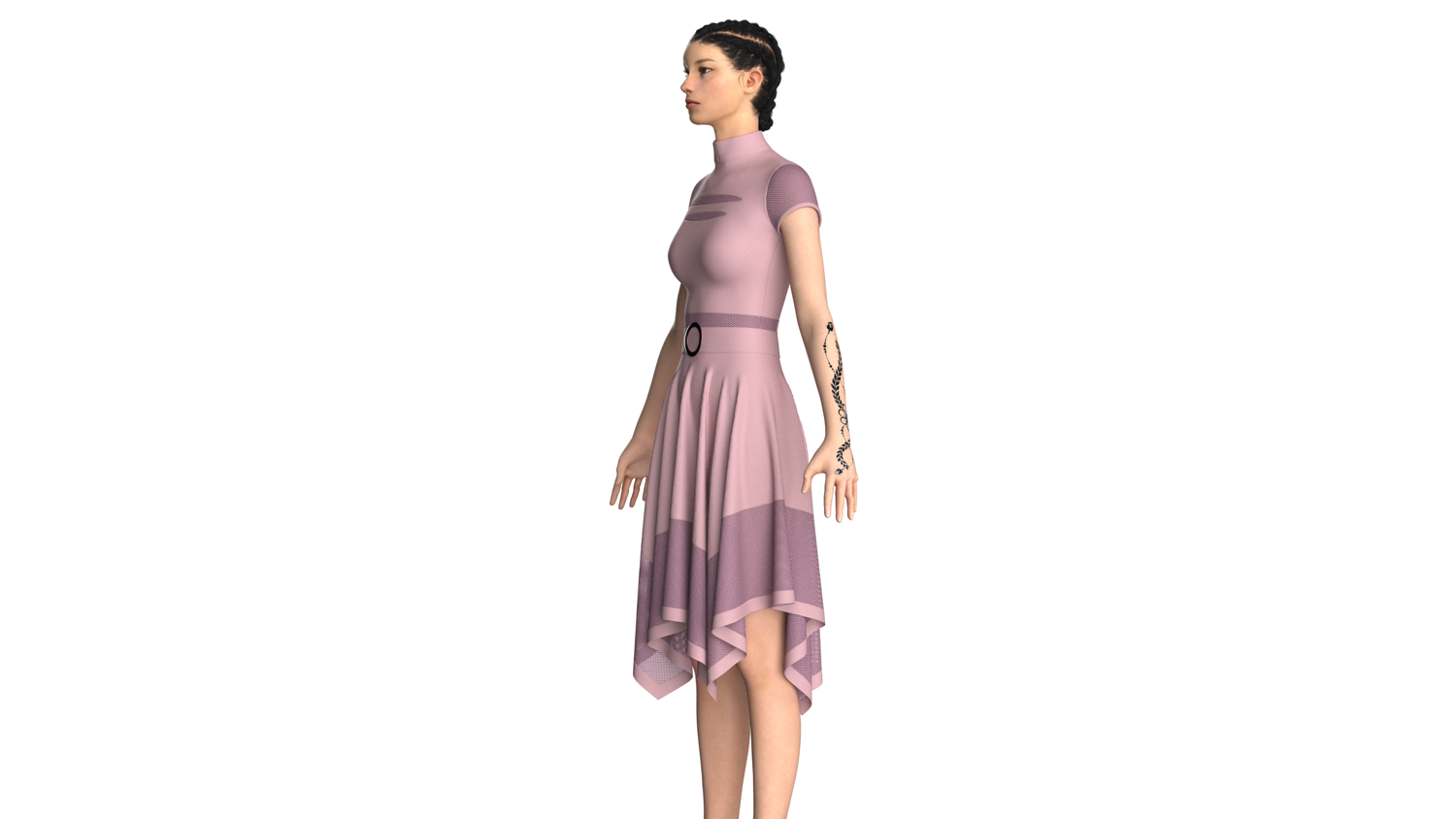 Women High Neck Mesh Panel Dress - Outfit | Marvelous / Clo3d / obj / fbx
