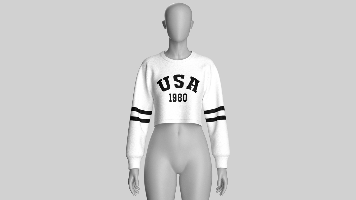 Girls Cropped Sweatshirt - USA | Marvelous / Clo3d / obj / fbx