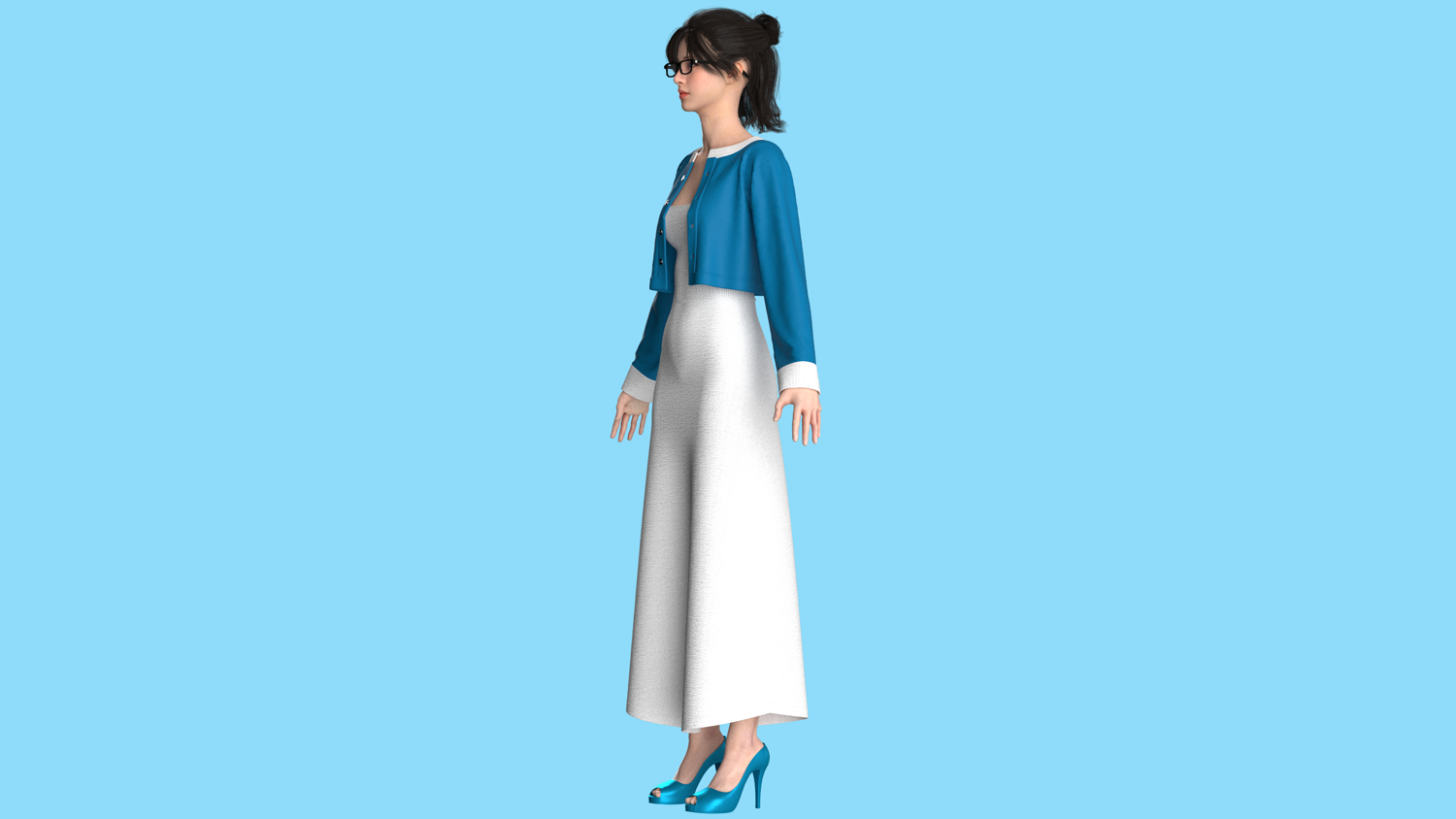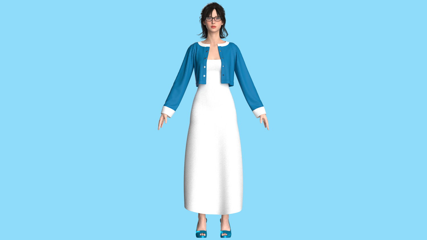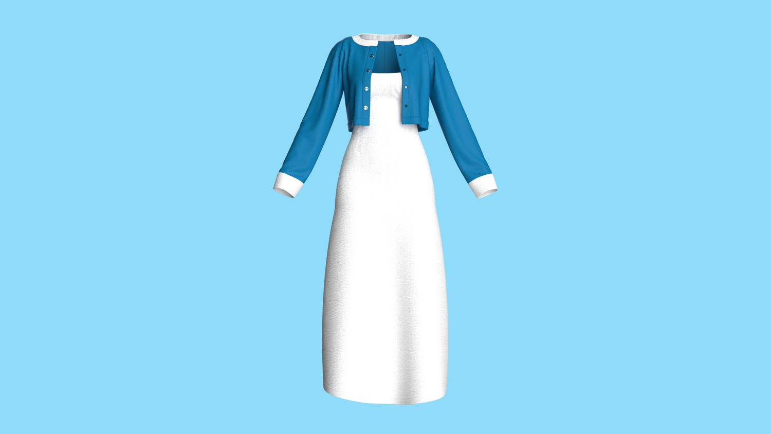 Girls Long Dress With Cardigan | Marvelous / Clo3d / obj / fbx