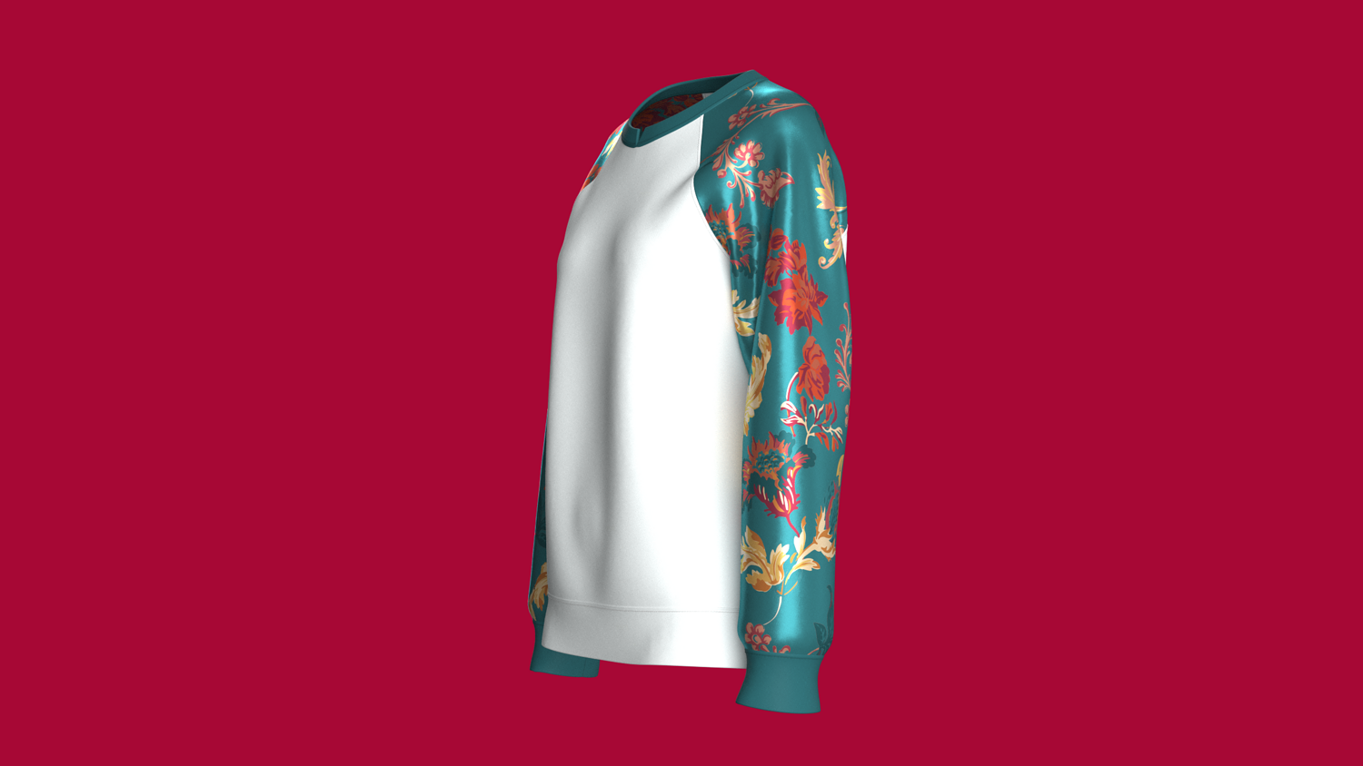 Girls Floral Raglan Sleeve with Notch-Neck Sweatshirt | Marvelous / Clo3d / obj / fbx