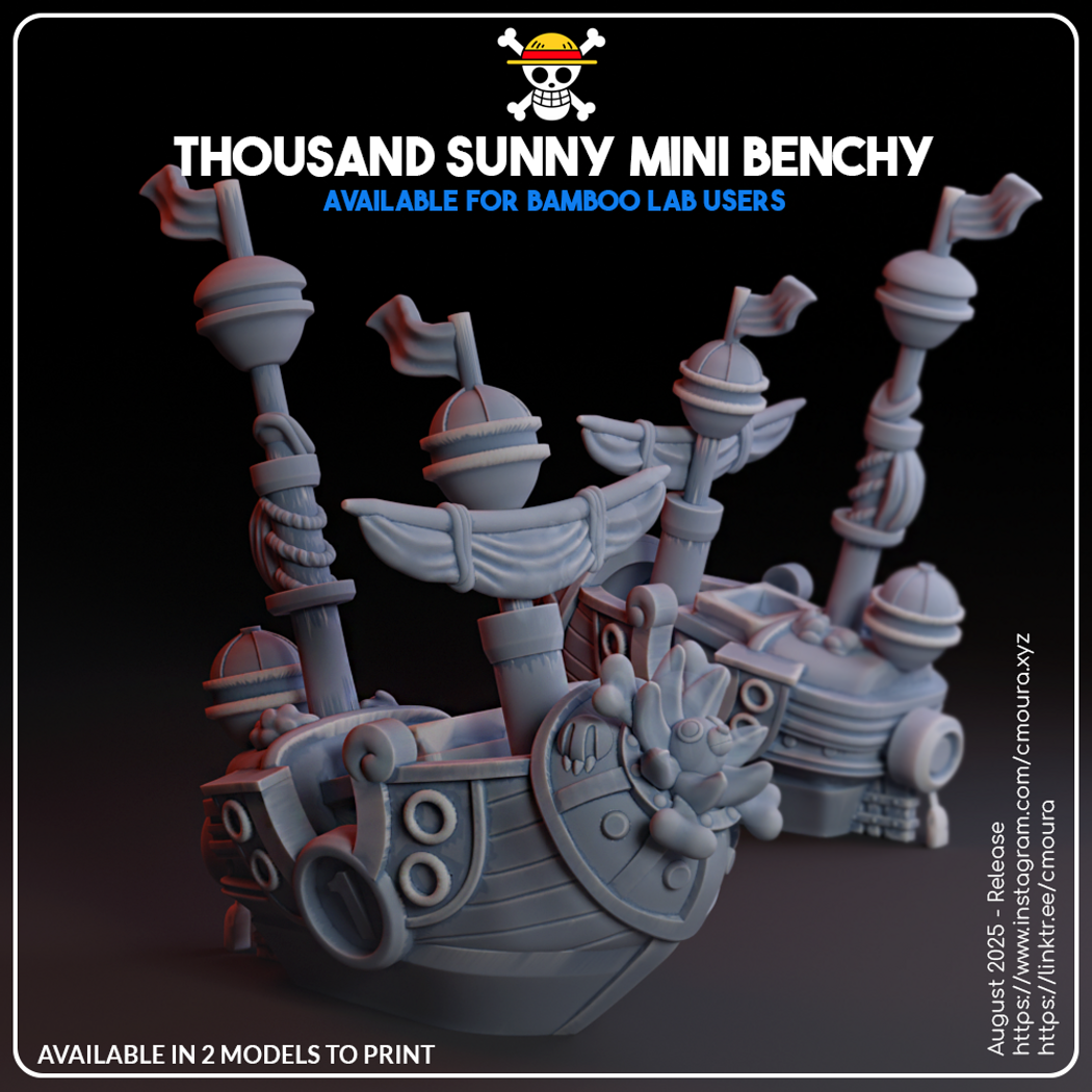 Set sail on your 3D printing adventure with this Thousand Sunny-themed Benchy! 🚢💨 Perfect for fans of One Piece and awesome print tests alike!