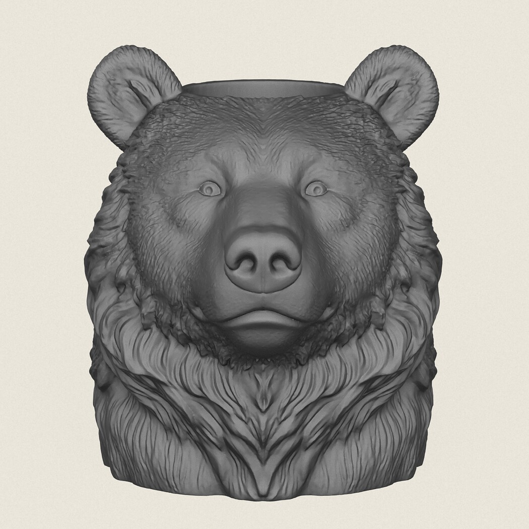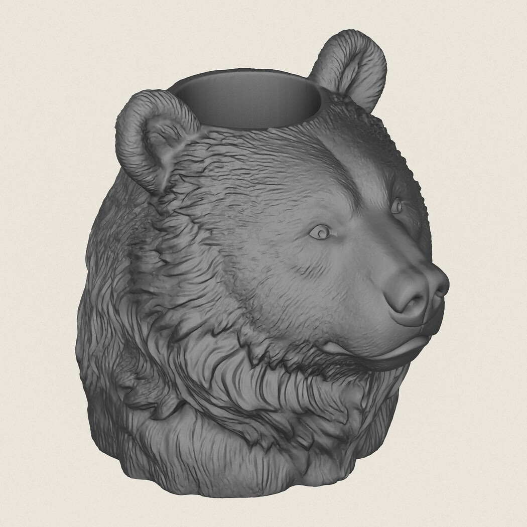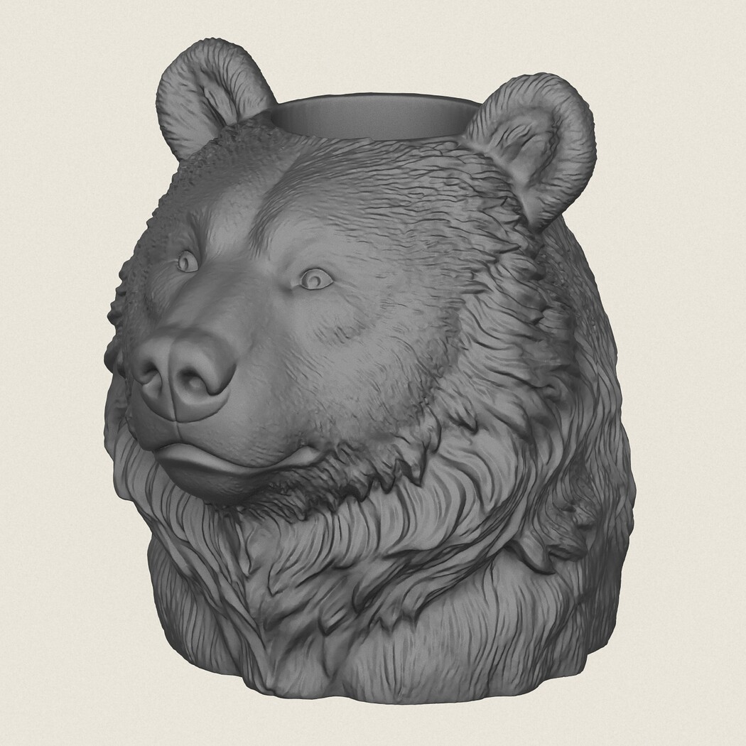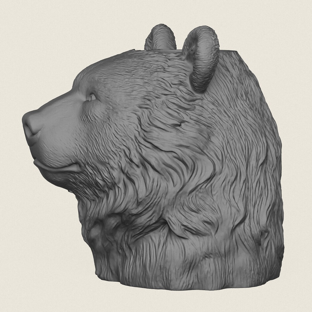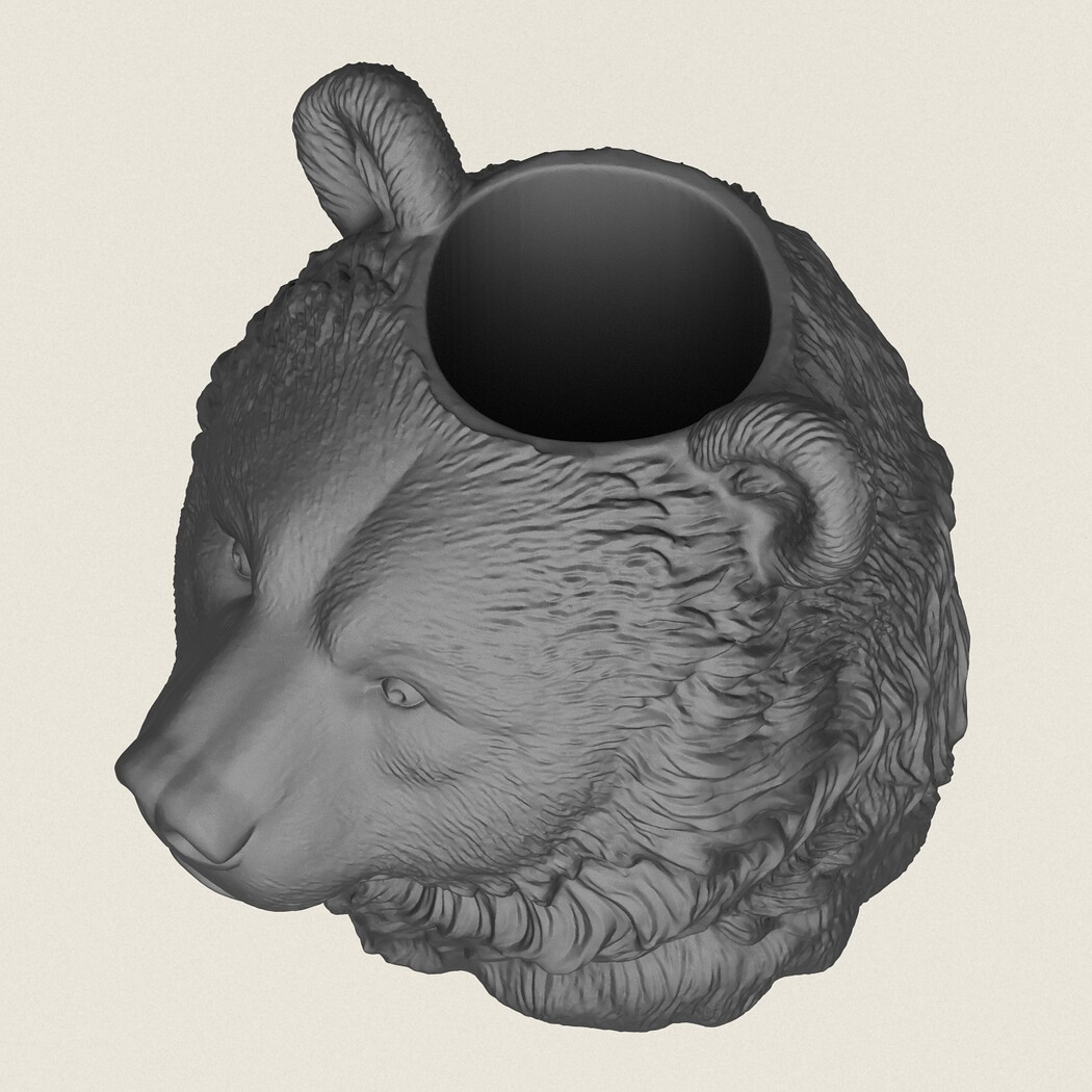Bear Head Vase, Print Ready 3D Model.